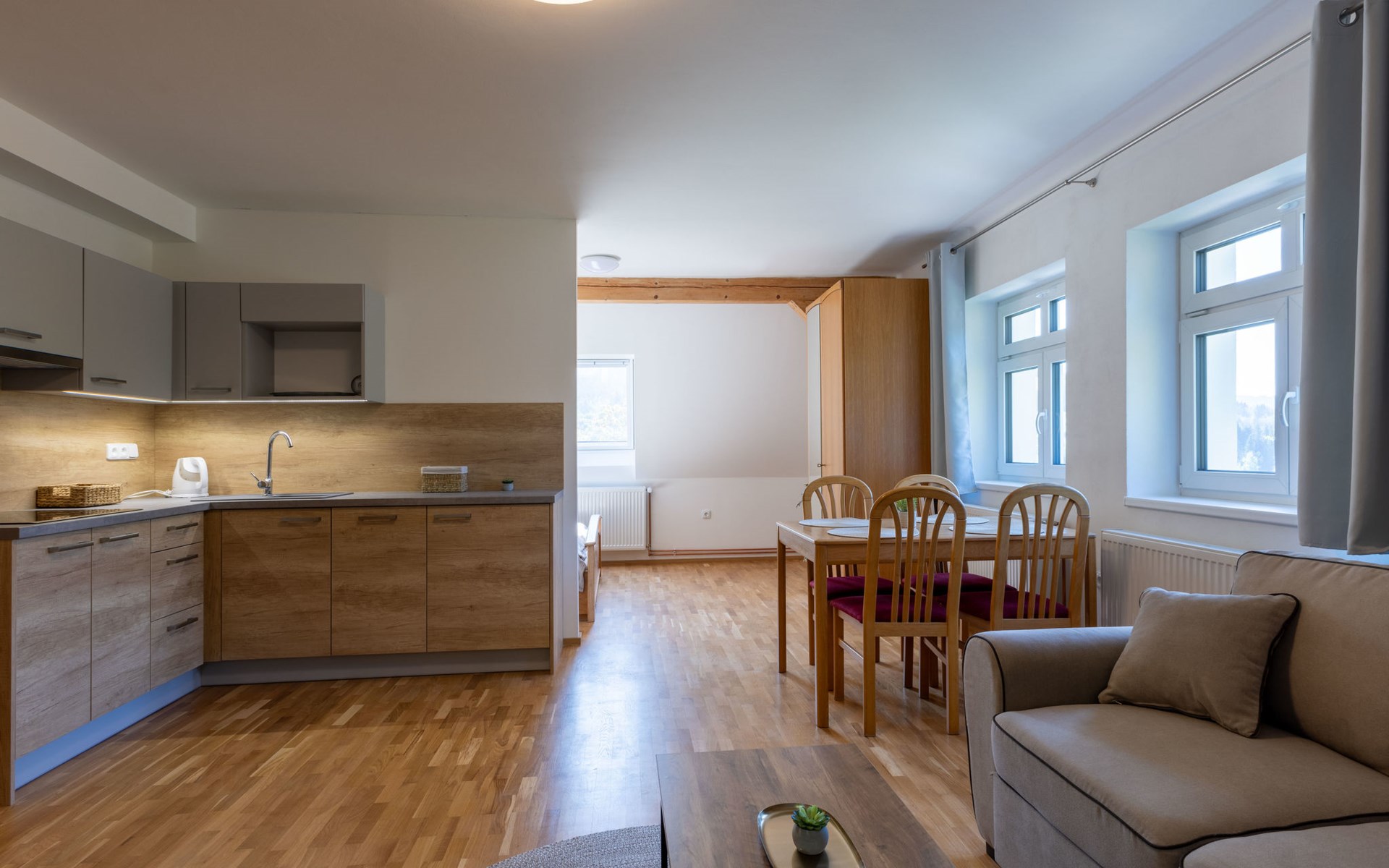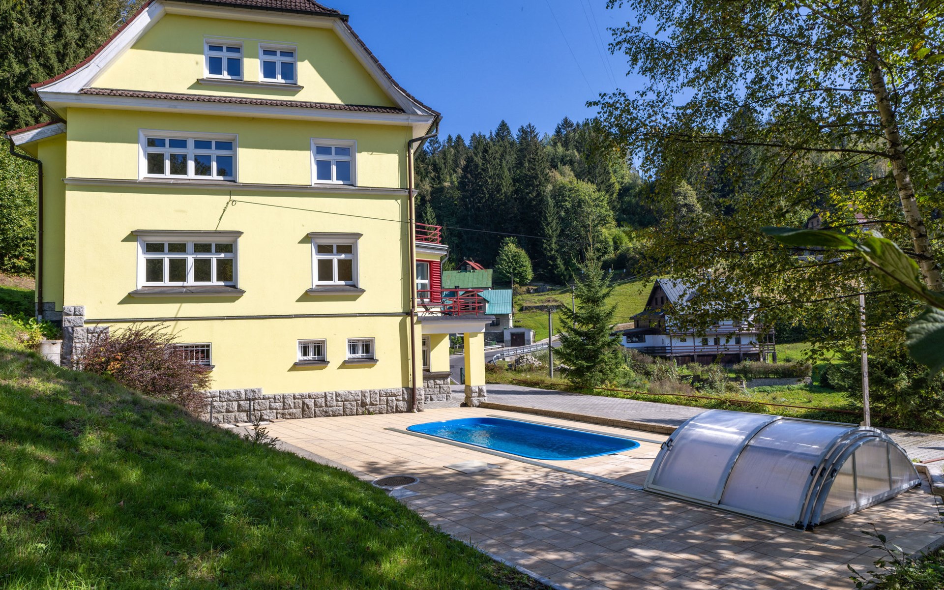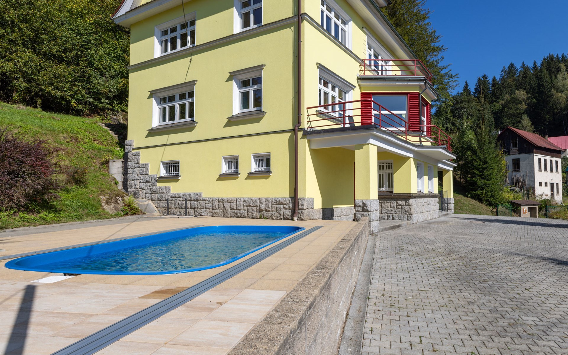 Kindvriendelijk, comfortabel huis "Villa Weber", van 4 verdiepingen, vrijstaand, gerenoveerd in 2024. In het centrum, zonnige, verhoogde ligging, 200 m van het skigebied, te midden van groen. Voor alleengebruik: tuin 1.000 m2 (niet omheind), openluchtzwembad (3 x 6 m, 140 cm diepte, seizoensgebonden beschikbaarheid: 01.Jun. - 30.Sep.). Tafeltennis, terras, tuinmeubelen, barbecue. In het huis: bergruimte voor fietsen, berging voor ski's, centrale verwarming. Parkeerplaats (voor 6 auto's) bij het huis. Levensmiddelenwinkel 400 m, restaurant 200 m, bushalte "Albrechtice v Jiz. Horách, pošta" 300 m, station "Tanvaldský Špičák" 650 m, openluchtzwembad 4 km, overdekt zwembad 10 km. Stoeltjeslift, skipisten, skischool, langlaufloipe 200 m. Attracties in de buurt: bike park, cyklotraily 200 m, rozhledna Světlý vrch,Tanvaldský Špičák 2 km, Mariánská hora 2 km, Jiřetím pod Bukovou Detoa 2 km, vodopády Černá Desná 5 km, protržená přehrada 7 km. Bekende skigebieden kunnen gemakkelijk worden bereikt: Tanvaldský Špičák 200 m, Hrabětice, Bedřichov 10 km, Harrachov 18 km. Wandelgebied Jizerka 12 km, Harrachov 18 km, Dinopark (PL), Gigantel (PL) 30 km.