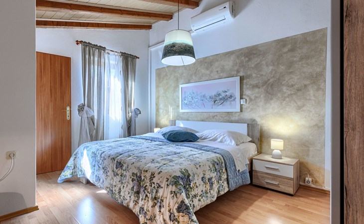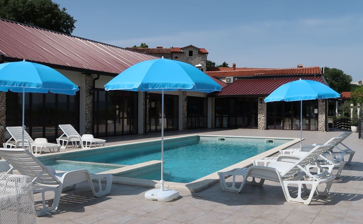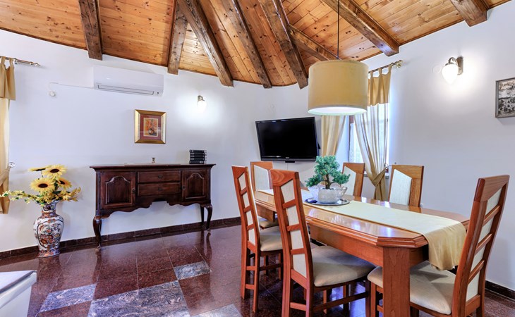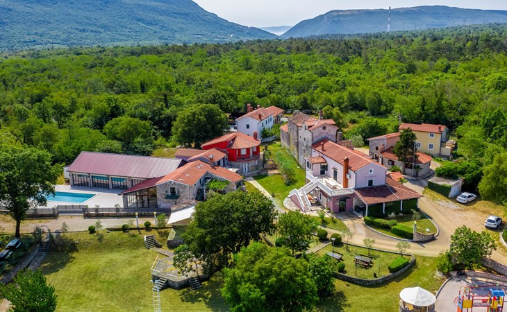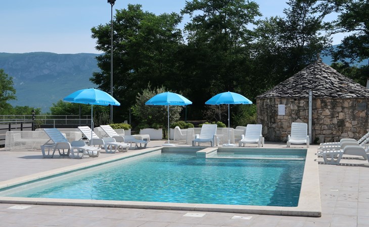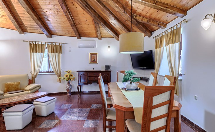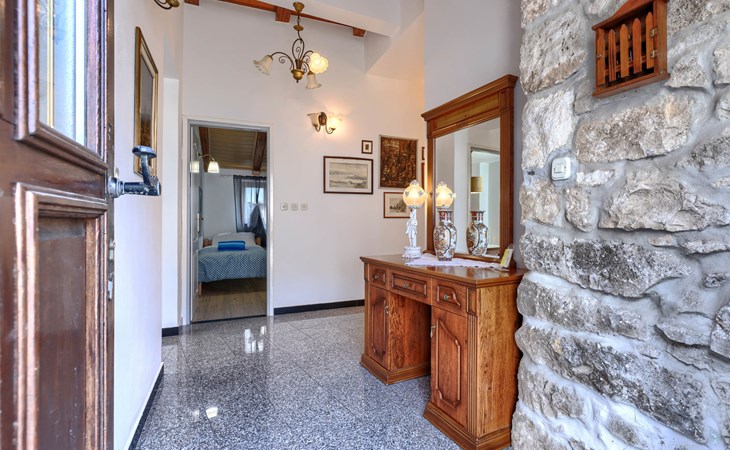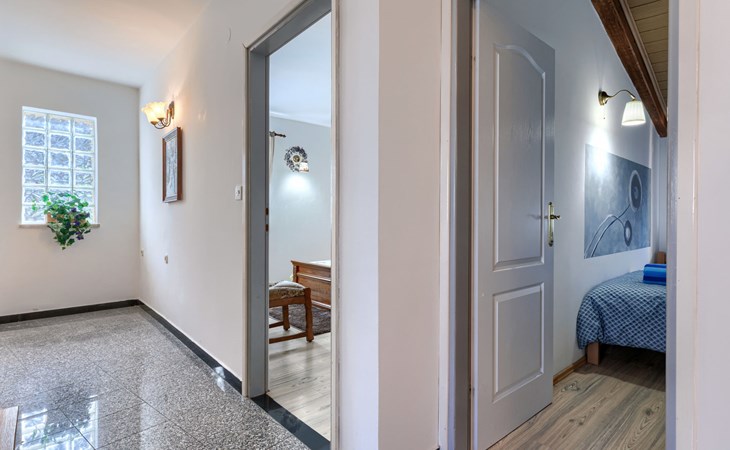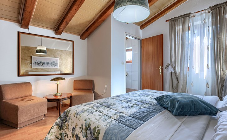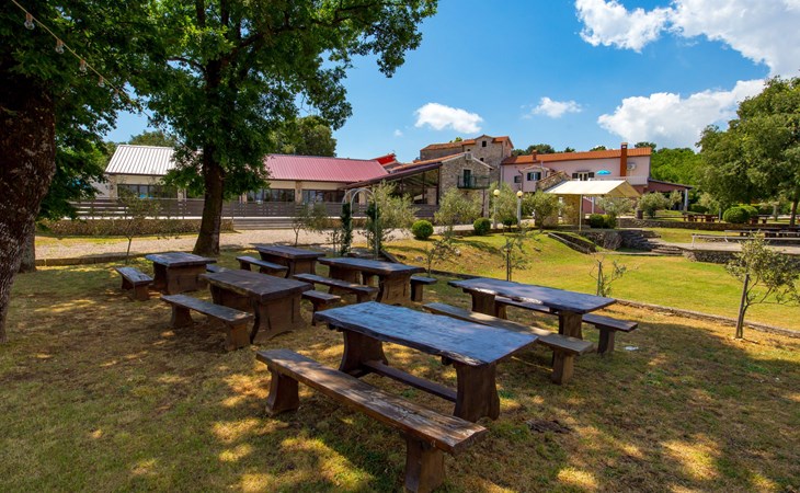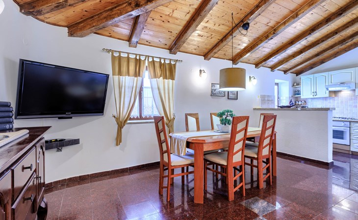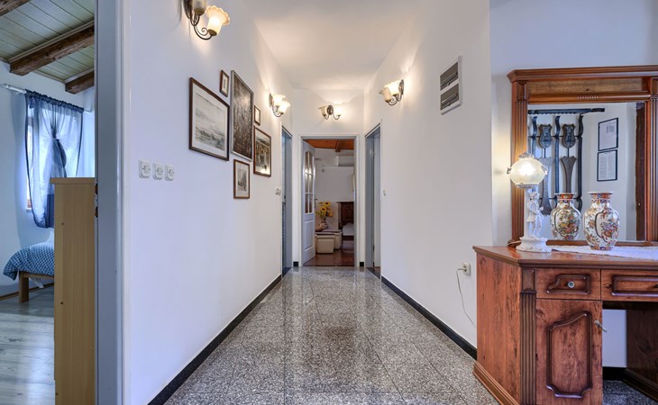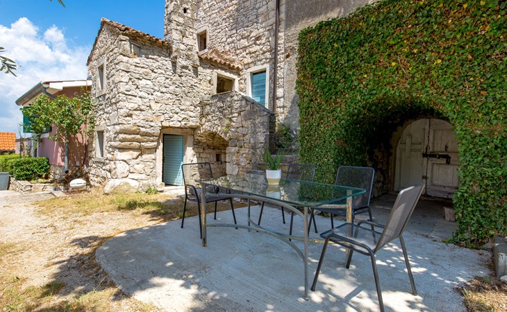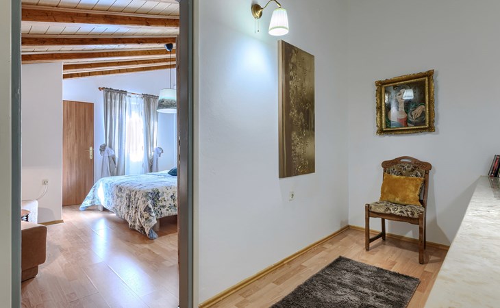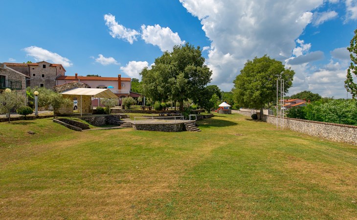 Landhuis, omgeven door bomen en weiden. 8 km van het centrum van Labin, 5 km van zee, aan een doodlopende weg. Voor medegebruik: terrein 6.000 m2 met bomen, weide, openluchtzwembad hoekig (12 x 5 m, 135 cm diepte, seizoensgebonden beschikbaarheid: 15.Mei. - 25.Sep.) met trap. Buitendouche, volleybalveld, prieel, terras, tuinmeubelen, barbecue, kinderspeelplaats (glijbaan, schommel). In het huis: internetaansluiting. Parkeerplaats op het terrein. Winkel 300 m, bushalte 2.9 km, kiezelstrand 5 km, rotsstrand 5 km. De eigenaar woont op hetzelfde terrein.