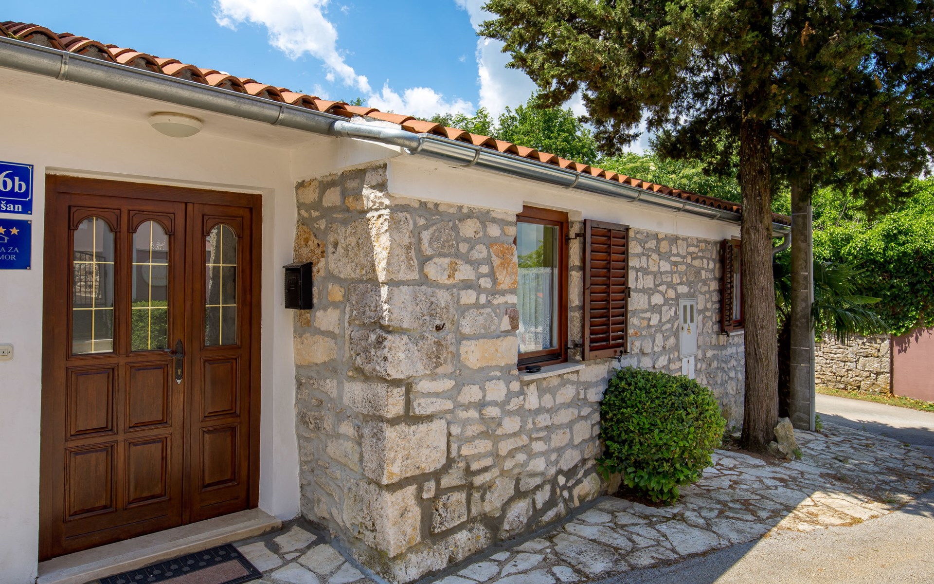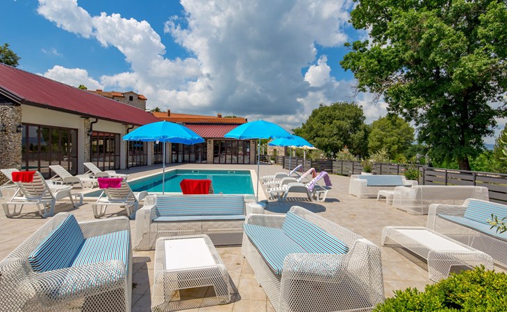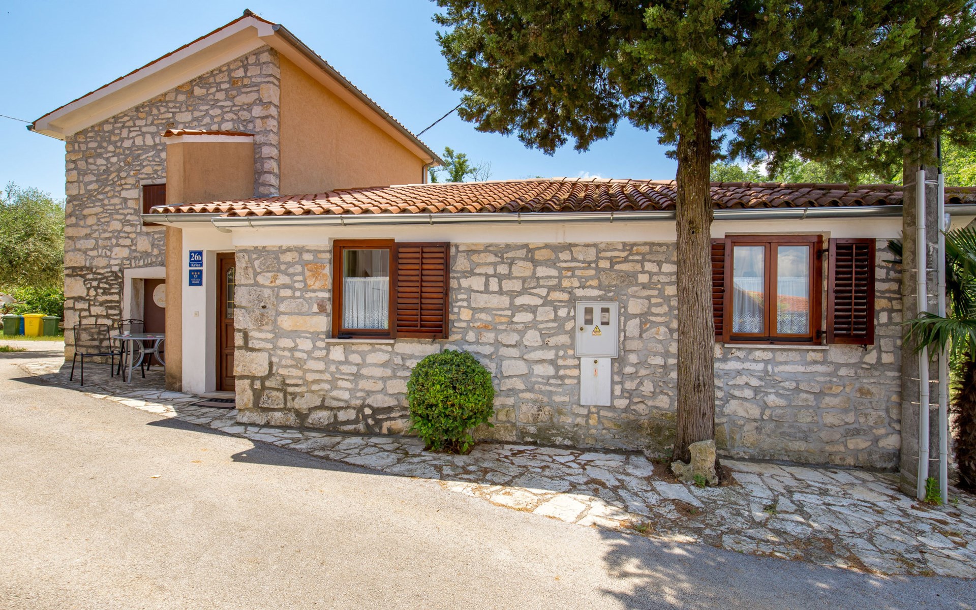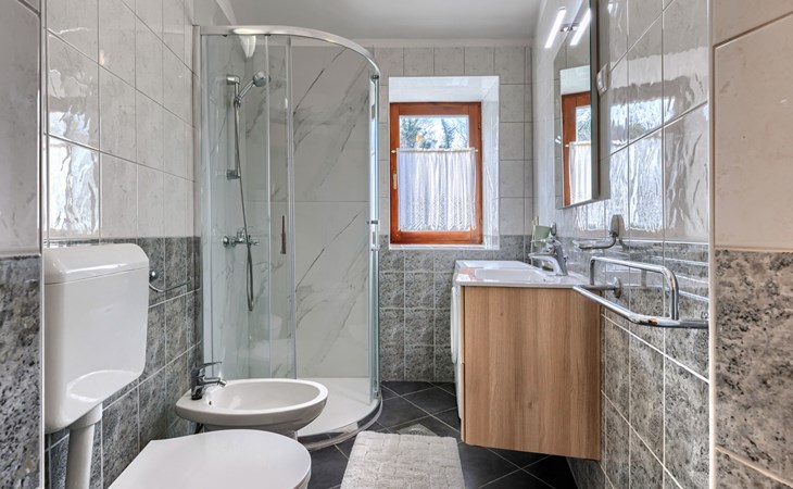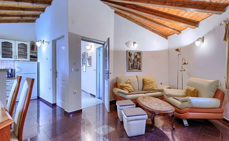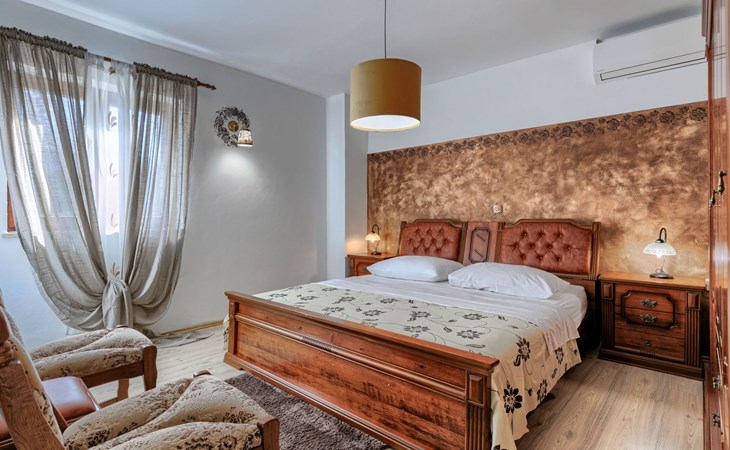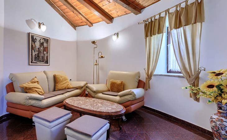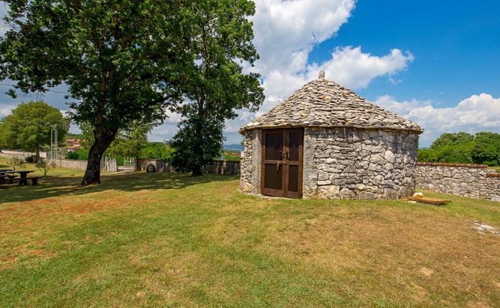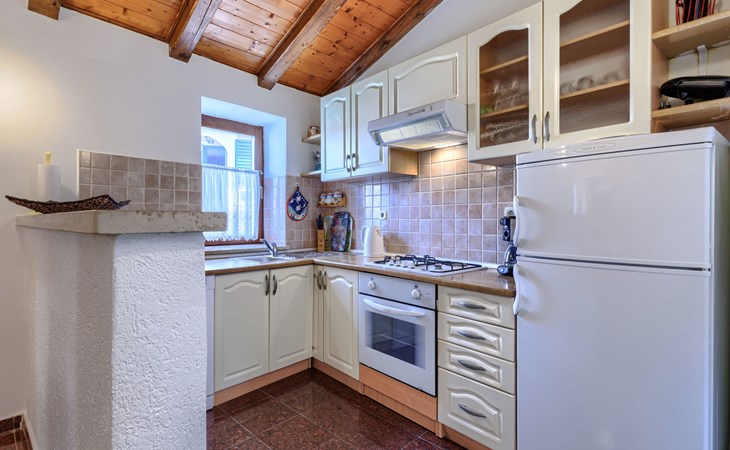Landhuis, omgeven door bomen en weiden. 8 km van het centrum van Labin, 5 km van zee, aan een doodlopende weg. Voor medegebruik: terrein 6.000 m2 met bomen, weide, openluchtzwembad hoekig (12 x 5 m, 135 cm diepte, seizoensgebonden beschikbaarheid: 15.Mei. - 25.Sep.) met trap. Buitendouche, volleybalveld, prieel, terras, tuinmeubelen, barbecue, kinderspeelplaats (glijbaan, schommel). In het huis: internetaansluiting. Parkeerplaats op het terrein. Winkel 300 m, bushalte 2.9 km, kiezelstrand 5 km, rotsstrand 5 km. De eigenaar woont op hetzelfde terrein.