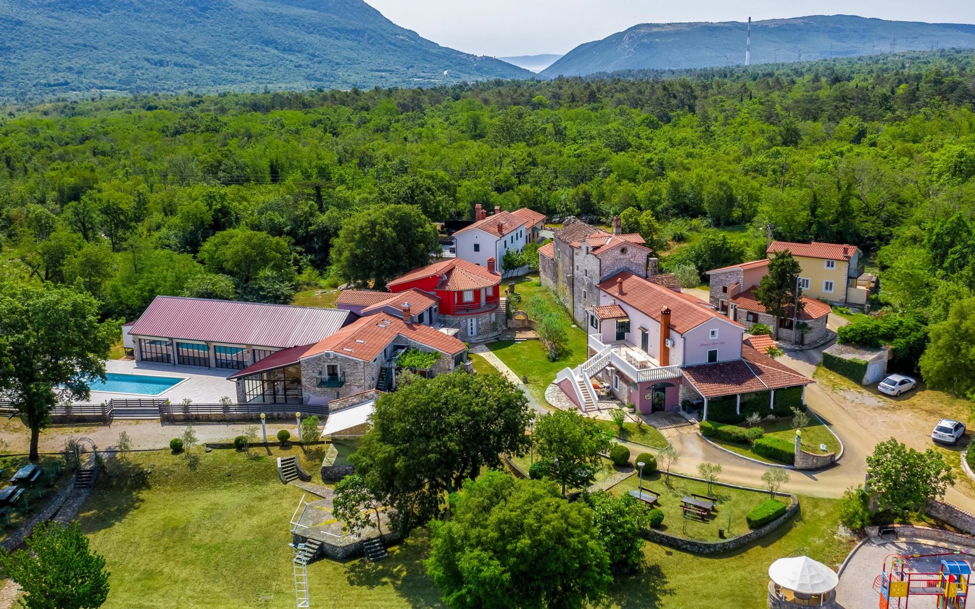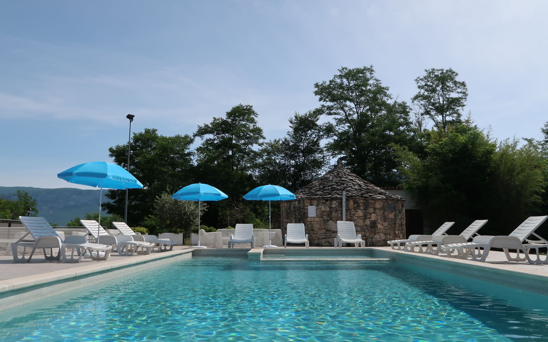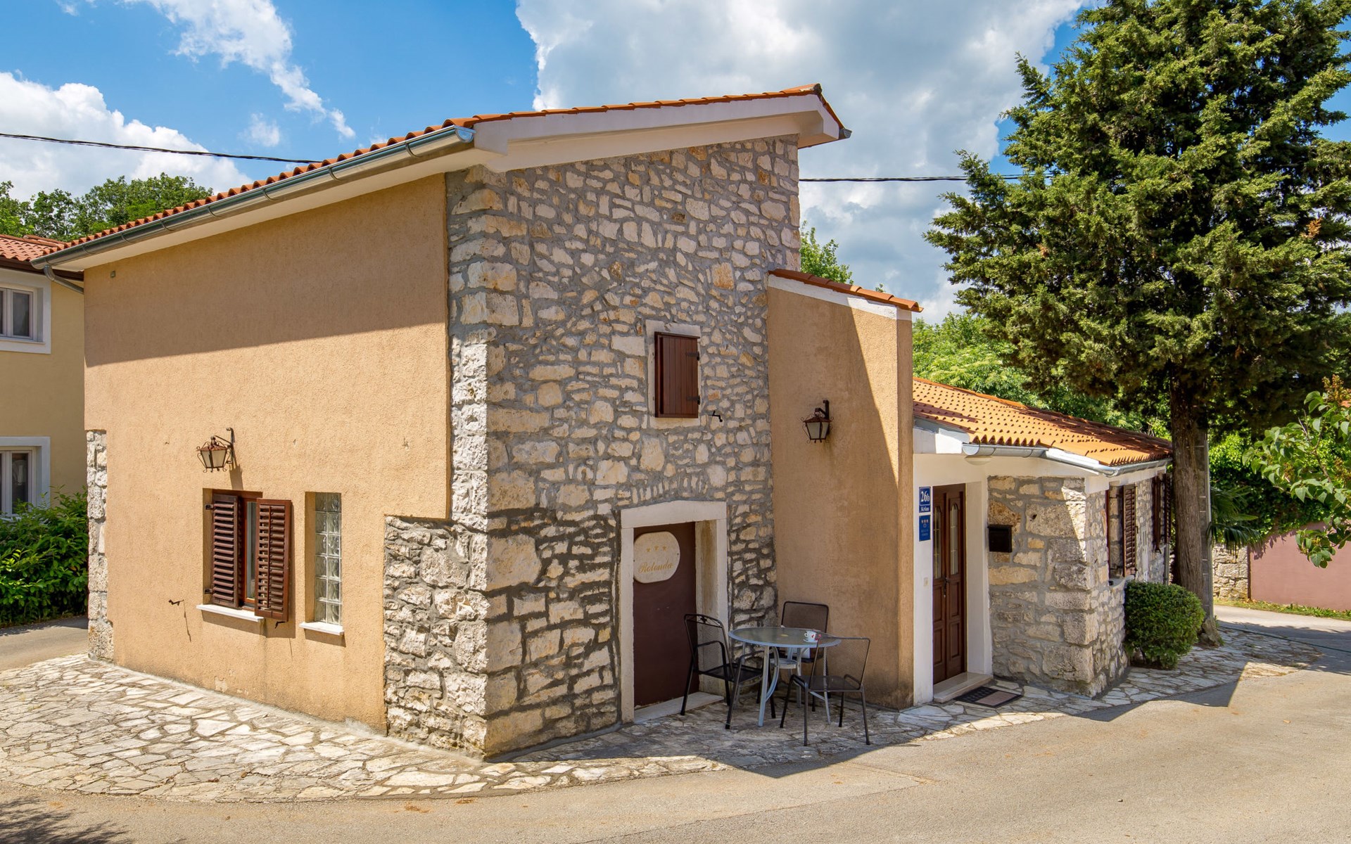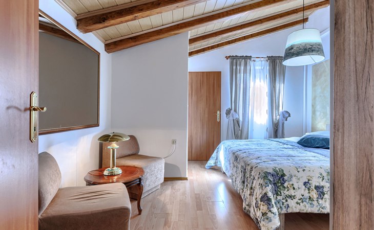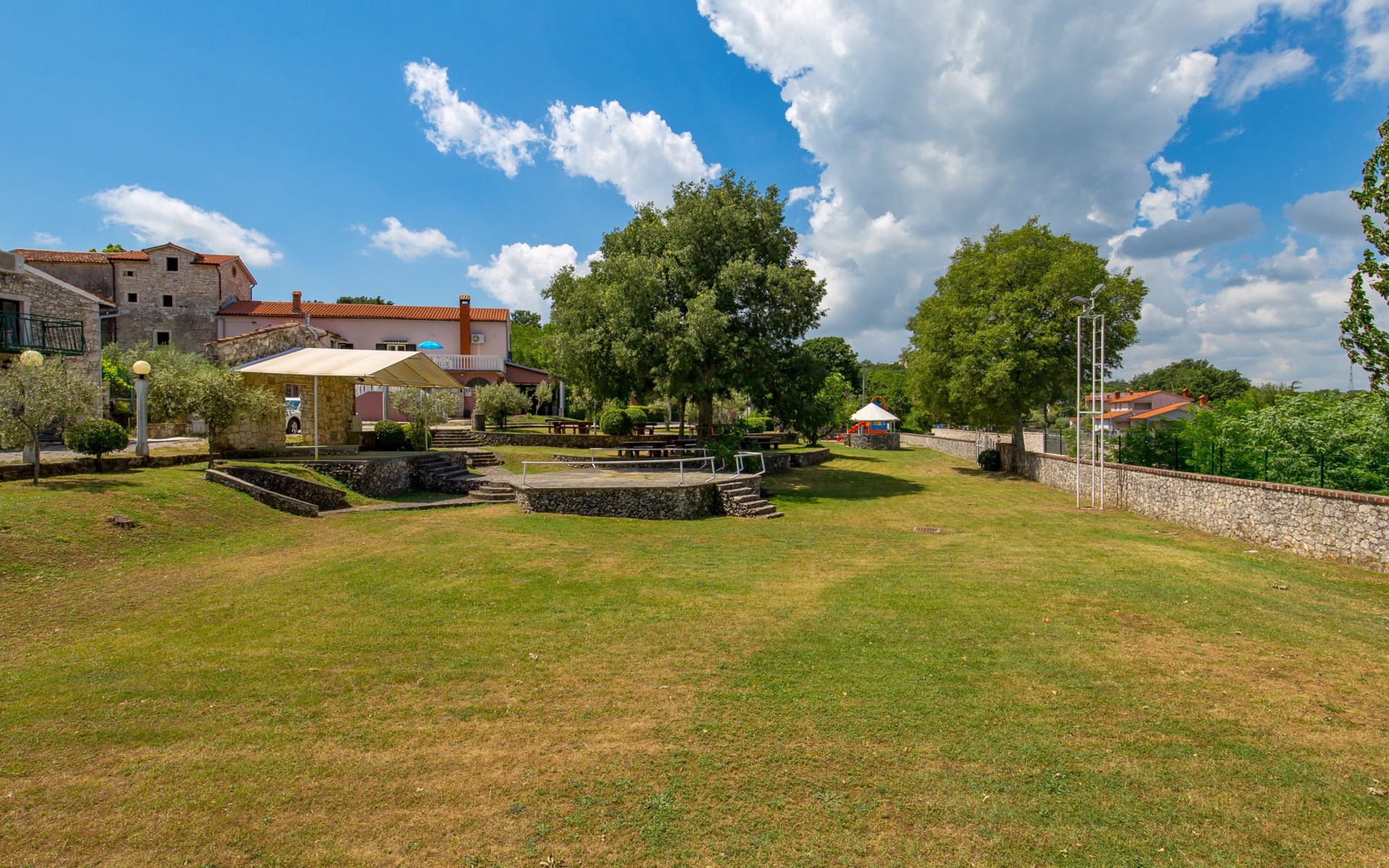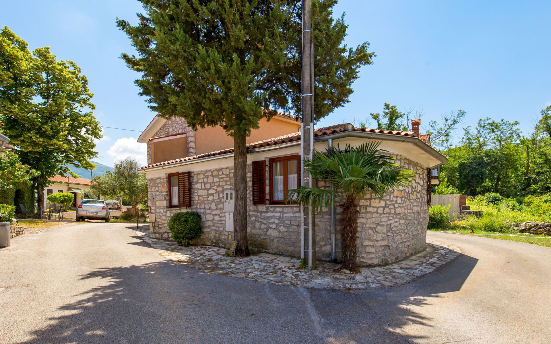 Landhuis, omgeven door bomen en weiden. 8 km van het centrum van Labin, 5 km van zee, aan een doodlopende weg. Voor medegebruik: terrein 6.000 m2 met bomen, weide, openluchtzwembad hoekig (12 x 5 m, 135 cm diepte, seizoensgebonden beschikbaarheid: 15.Mei. - 25.Sep.) met trap. Buitendouche, volleybalveld, prieel, terras, tuinmeubelen, barbecue, kinderspeelplaats (glijbaan, schommel). In het huis: internetaansluiting. Parkeerplaats op het terrein. Winkel 300 m, bushalte 2.9 km, kiezelstrand 5 km, rotsstrand 5 km. De eigenaar woont op hetzelfde terrein.