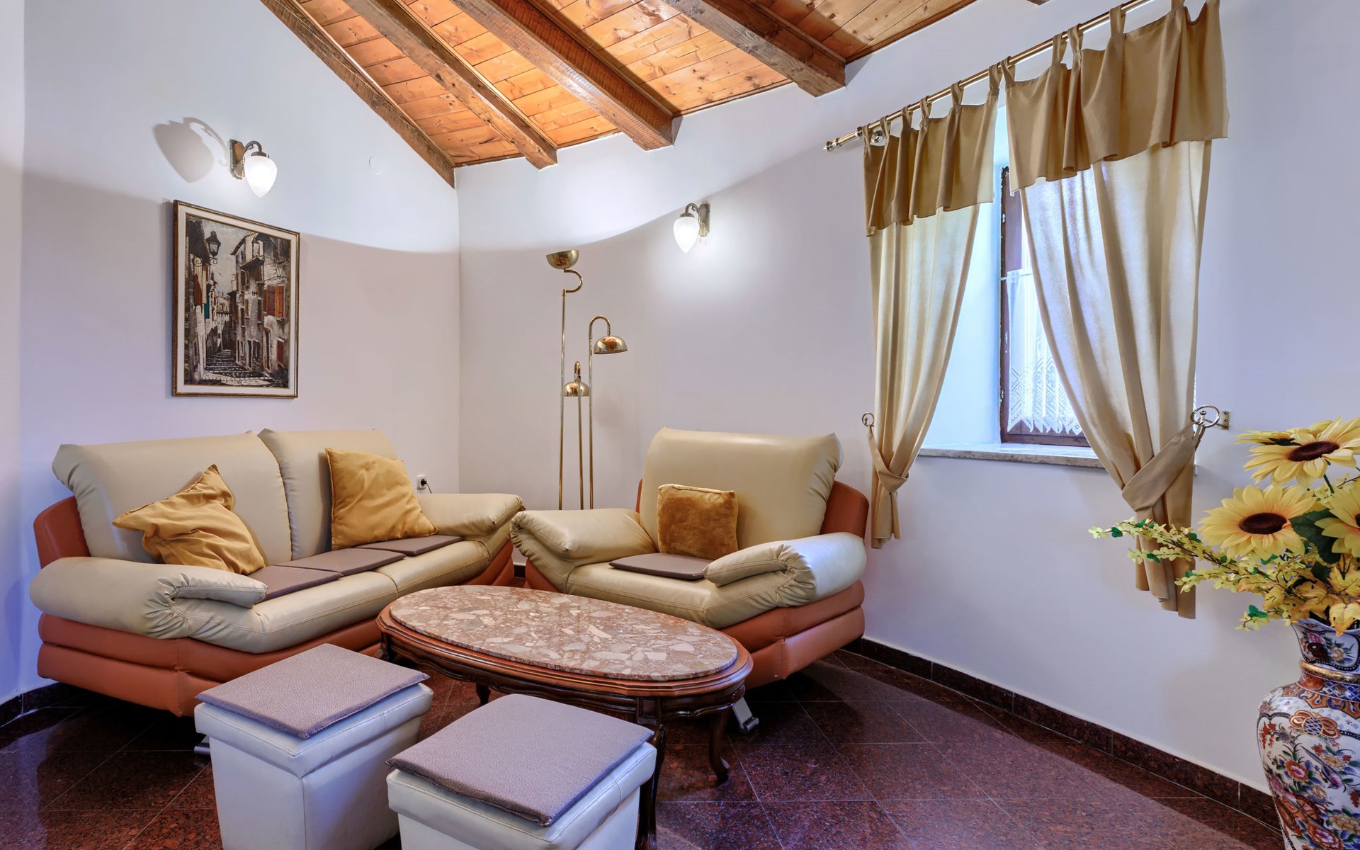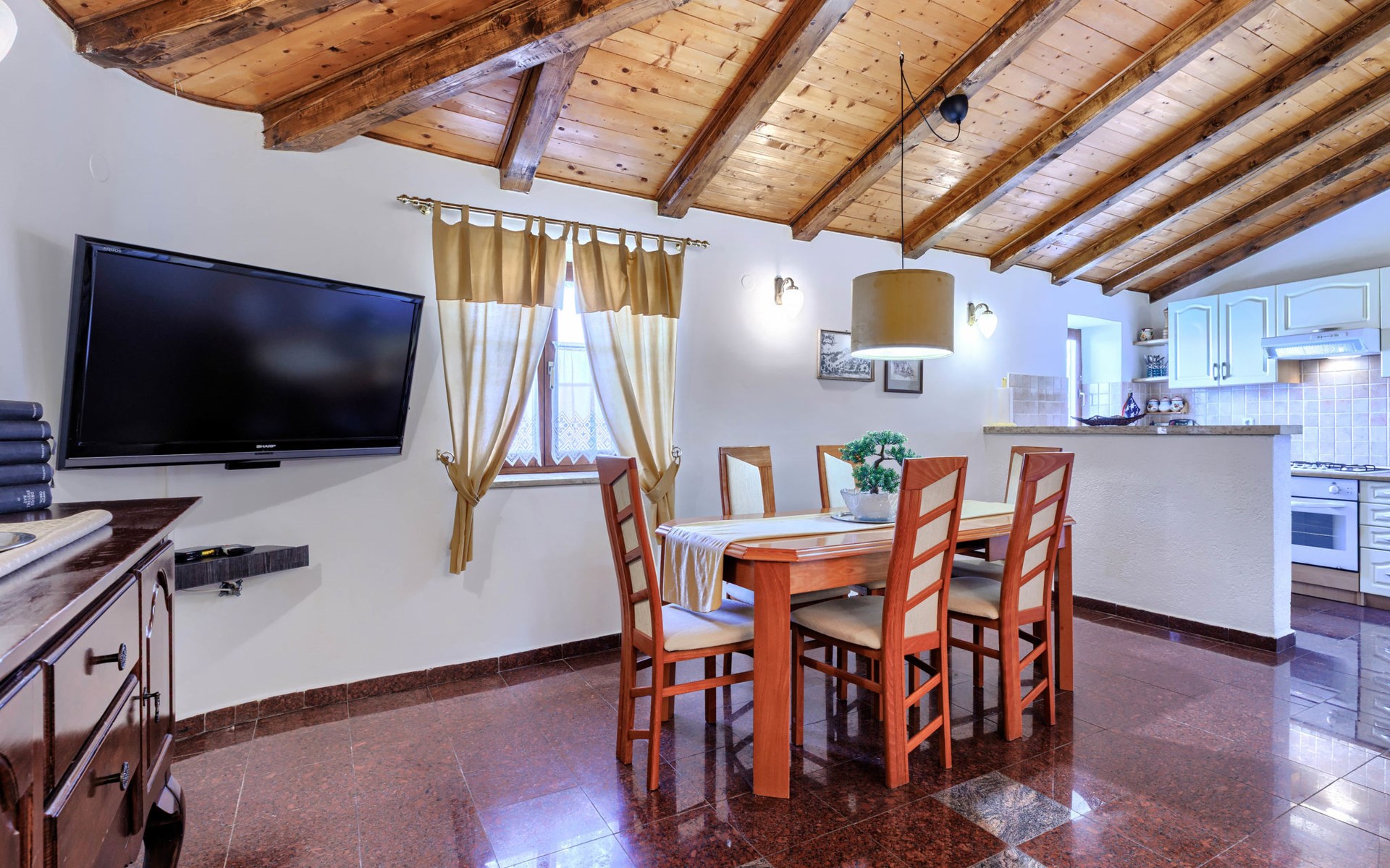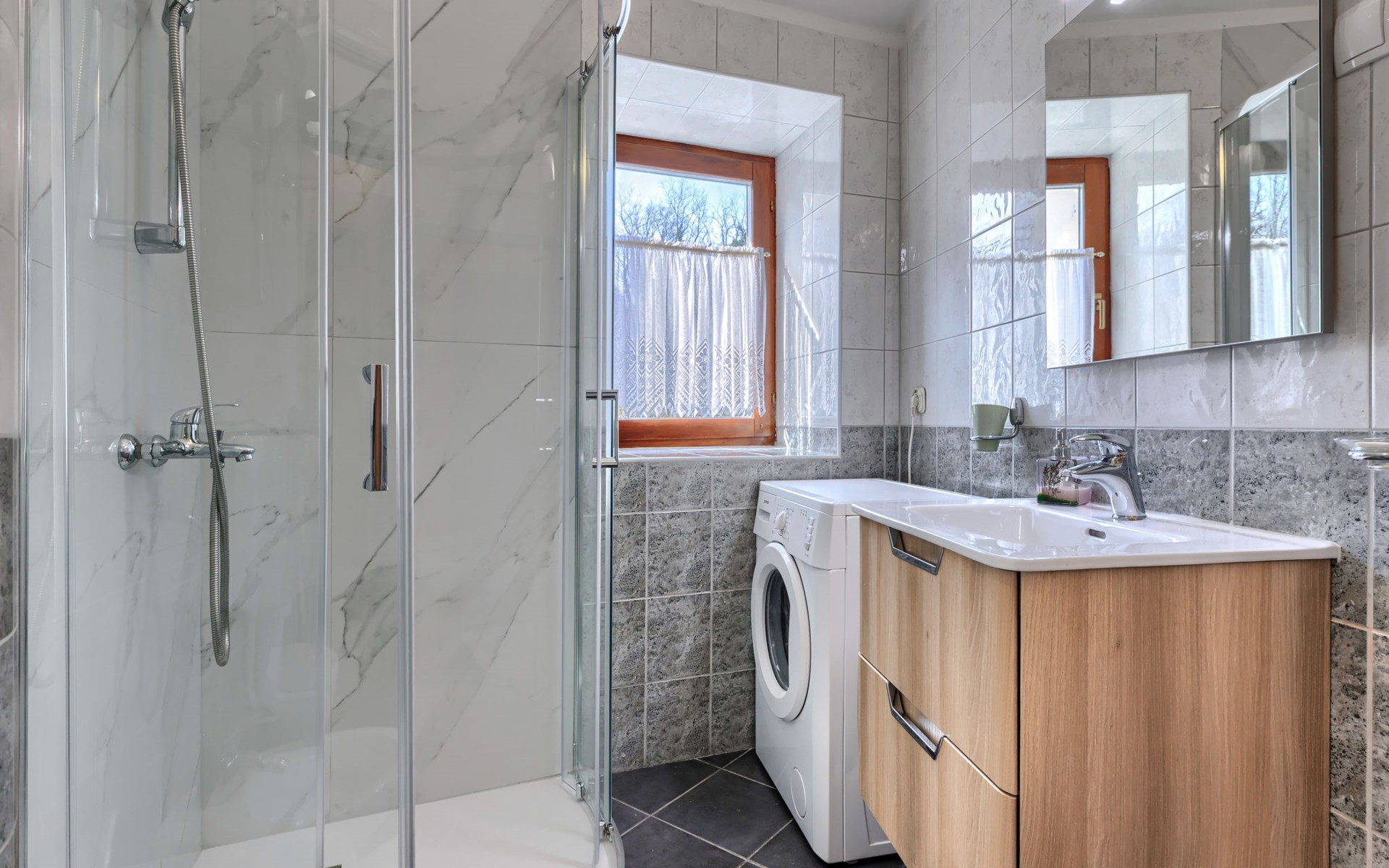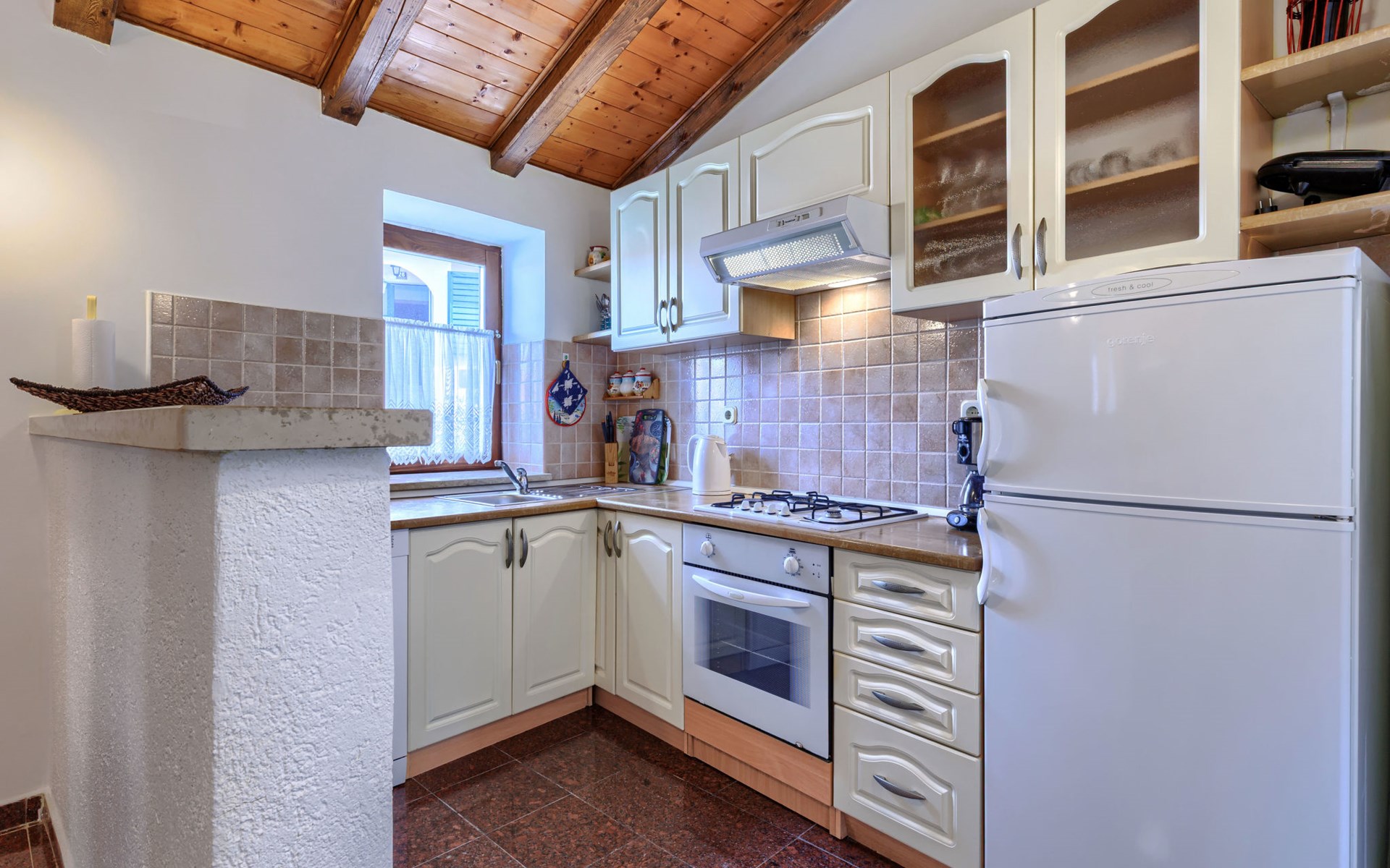 Landhuis, omgeven door bomen en weiden. 8 km van het centrum van Labin, 5 km van zee, aan een doodlopende weg. Voor medegebruik: terrein 6.000 m2 met bomen, weide, openluchtzwembad hoekig (12 x 5 m, 135 cm diepte, seizoensgebonden beschikbaarheid: 15.Mei. - 25.Sep.) met trap. Buitendouche, volleybalveld, prieel, terras, tuinmeubelen, barbecue, kinderspeelplaats (glijbaan, schommel). In het huis: internetaansluiting. Parkeerplaats op het terrein. Winkel 300 m, bushalte 2.9 km, kiezelstrand 5 km, rotsstrand 5 km. De eigenaar woont op hetzelfde terrein.