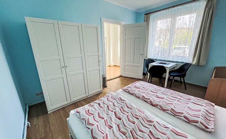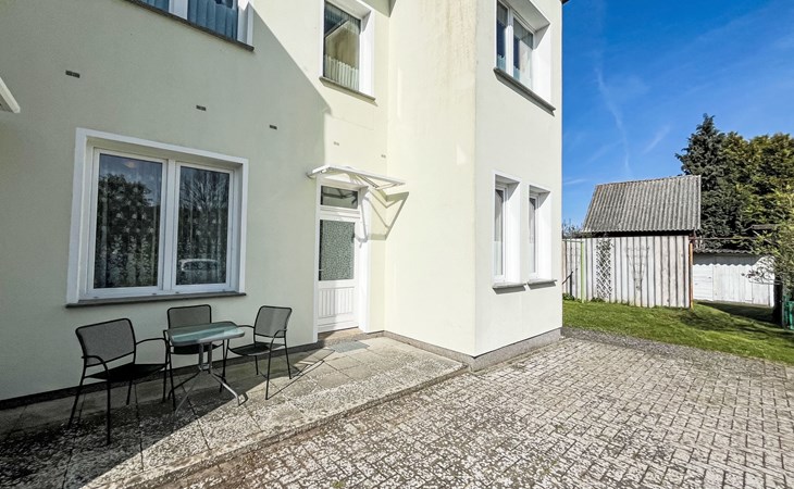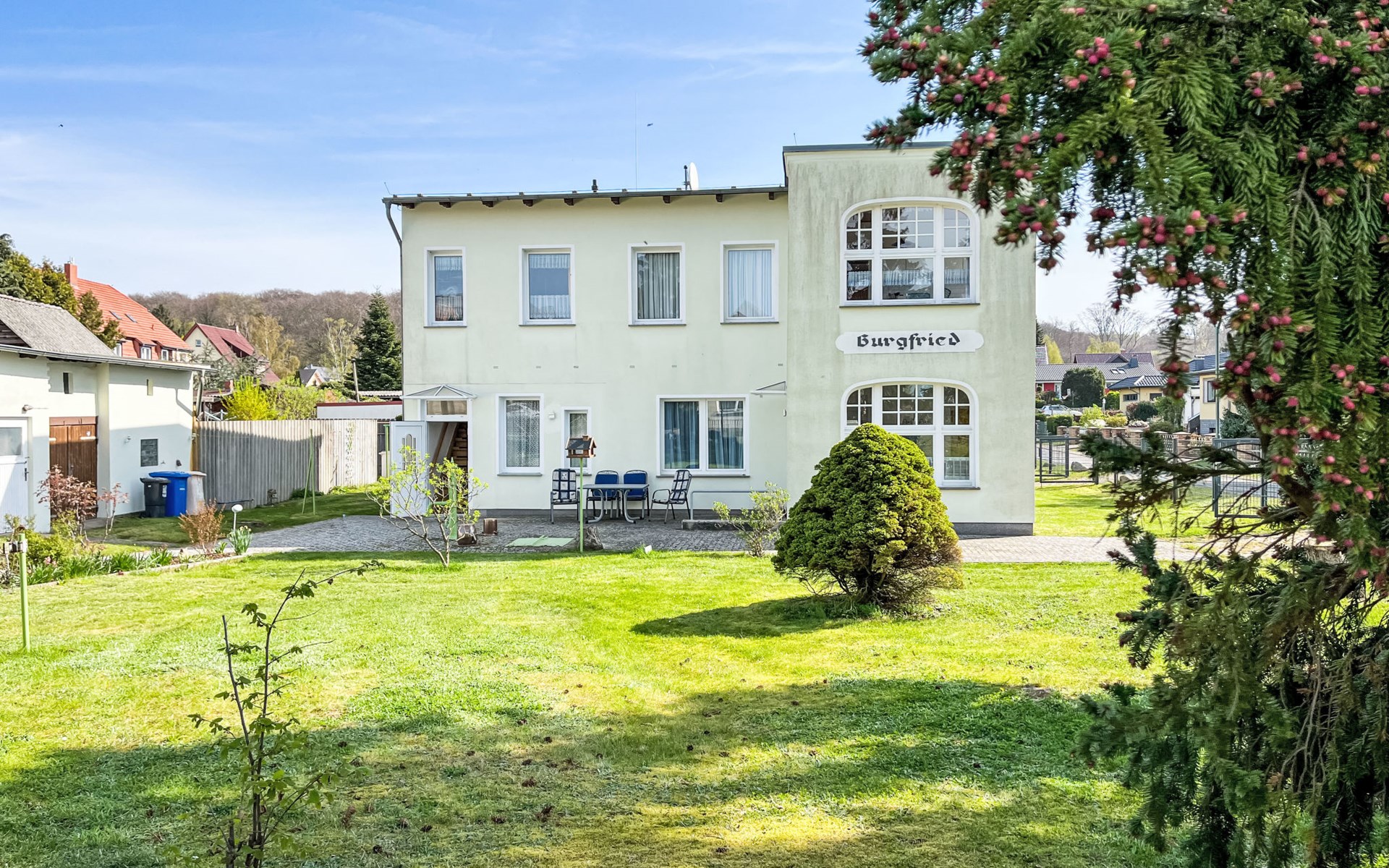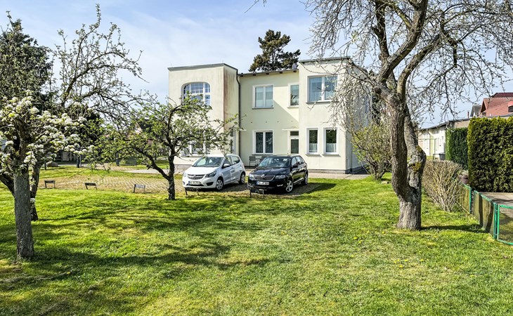 Huis "Burgfried". 5 appartementen in de woning. In de plaats, 300 m van het centrum van Koserow, 900 m van zee, van het strand. Voor medegebruik: terrein (omheind) met weide. In het huis: centrale verwarming. Parkeerplaats op het terrein. Supermarkt 700 m, restaurant 100 m, bakkerij 900 m, café, bushalte 550 m, station 1.1 km, zandstrand 900 m, thermaalbad "Bernsteintherme" 9 km. Golfterrein (18 holes) 18 km, surfschool 9 km, midgetgolf 500 m.