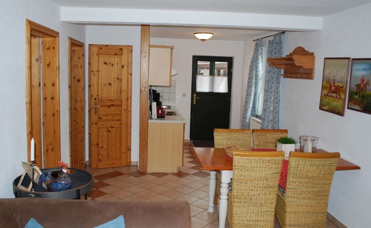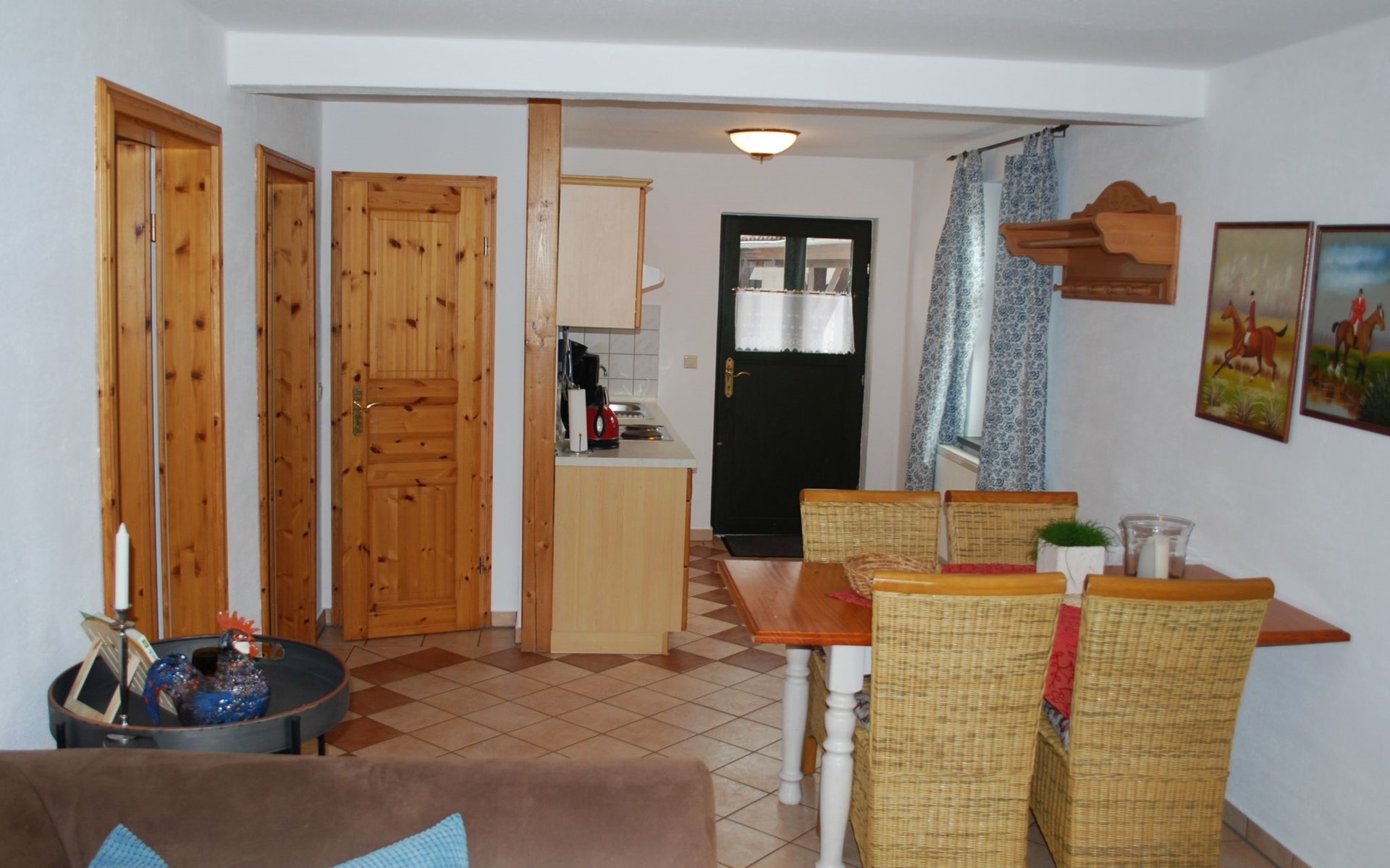 The small holiday resort is located approx. 3 km from Dargun. It is the ideal place for nature lovers. The property is located on the outskirts of the village in a sunny, quiet and elevated position approx. 4 km from the bathing lake.3-person guest flat on the ground floor Bedroom with 1 double bed and 1 single room (extra bed possible), living room with kitchen, TV, bathroom with shower and WC, separate entrance.For shared use: garden, sunbathing lawn, swimming pool (7x3 m, 15.05. to 15.09.), car park at the house, terrace (300sqm), garden furniture, barbecue, children's playground.3-person guest flat on the ground floor bedroom with 1 double bed and 1 single room (extra bed possible), living room with kitchen, TV, bathroom with shower and WC, separate entranceIn the complex: lounge, central heating, washing machine & tumble dryer (extra)Shop 3km, grocery 3km, restaurant 3km, bus stop 200m, railway station "Demmin" 13km, sandy beach 3km, golf course 15km, tennis 15km, riding stable 300m.Well-known lakes and rivers in the area are within easy reach. Klostersee 3km, Kummerower See 8km, Peene 6km. Please note: Car recommended.Further holiday flats can be rented in this house. Riding lessons (individual lessons and lungeing) can be taken in a modern riding centre (member of the FN) 300m away on request and by appointment.