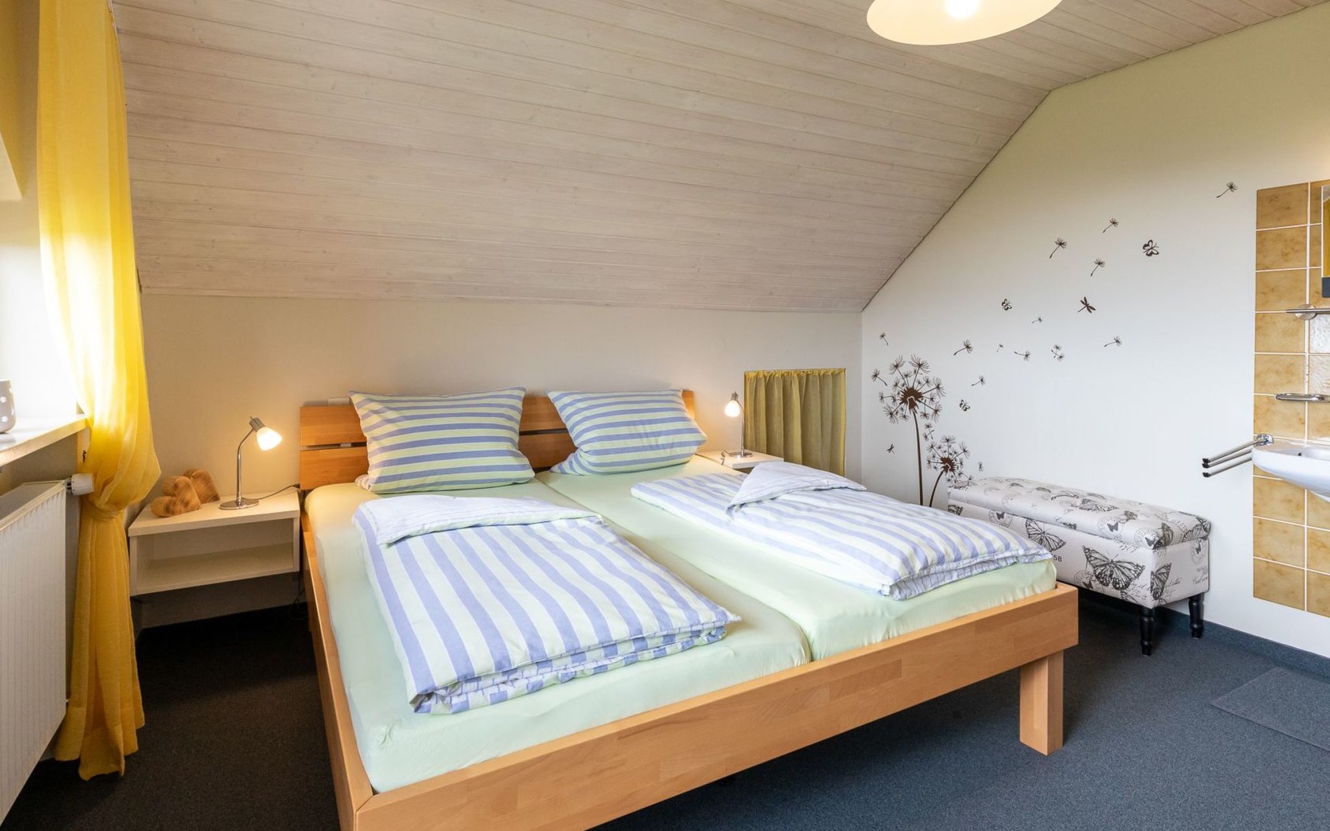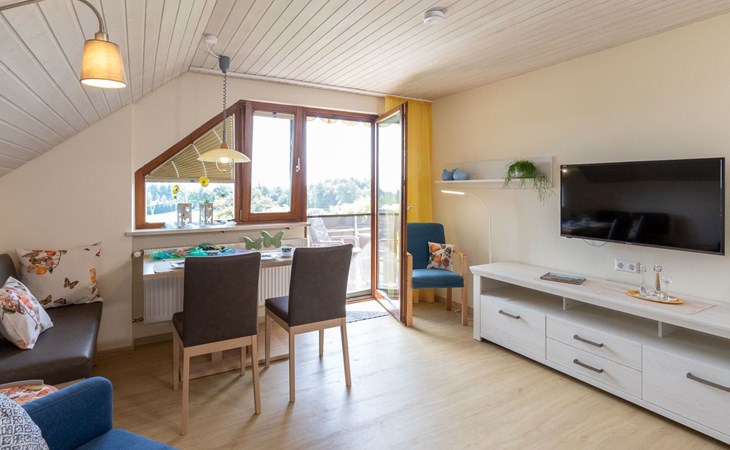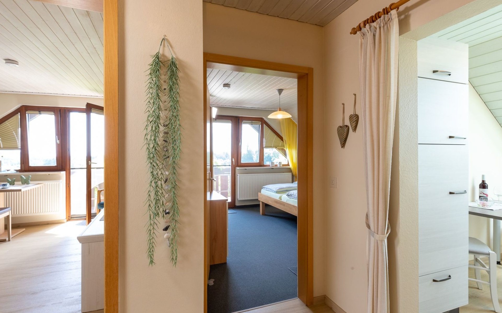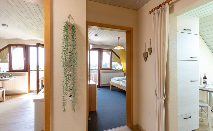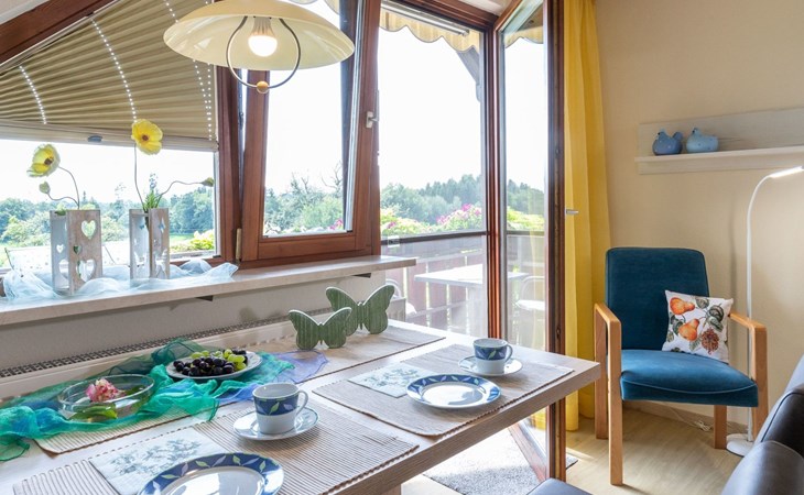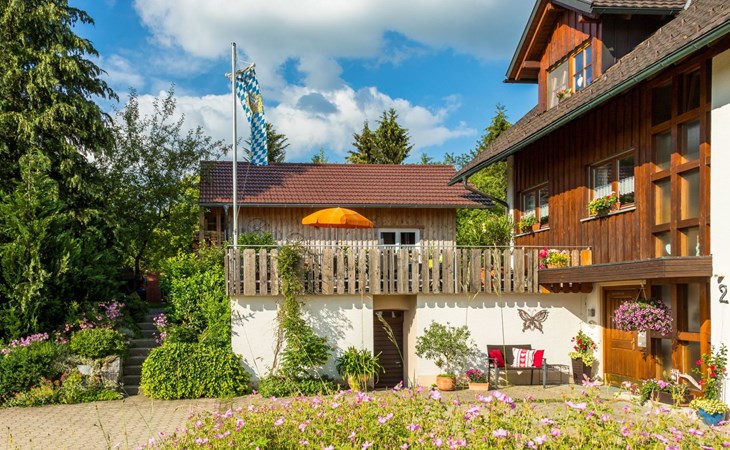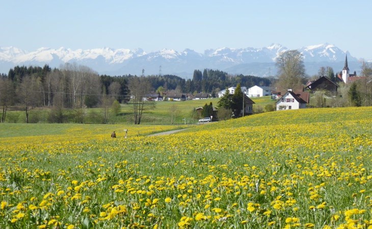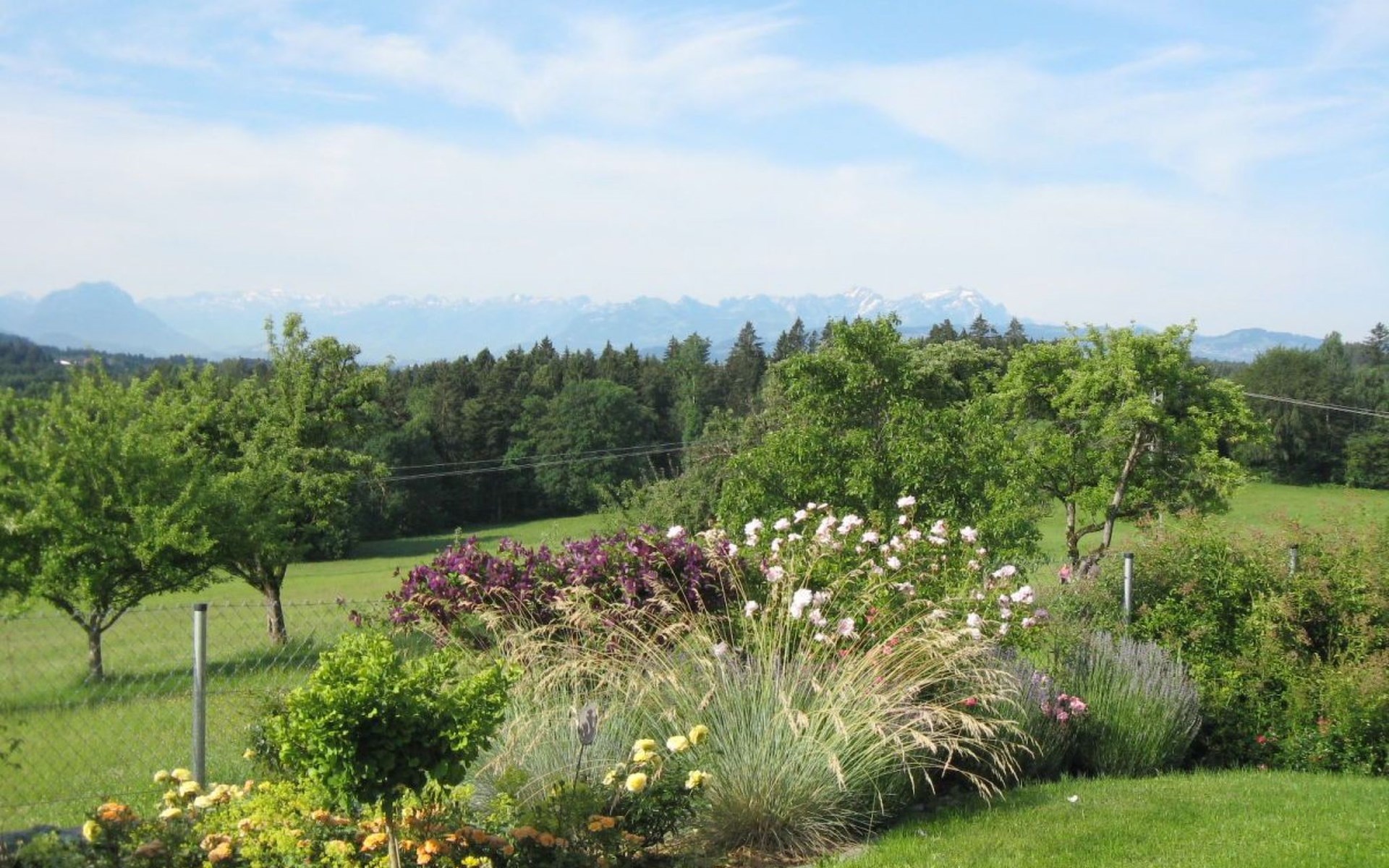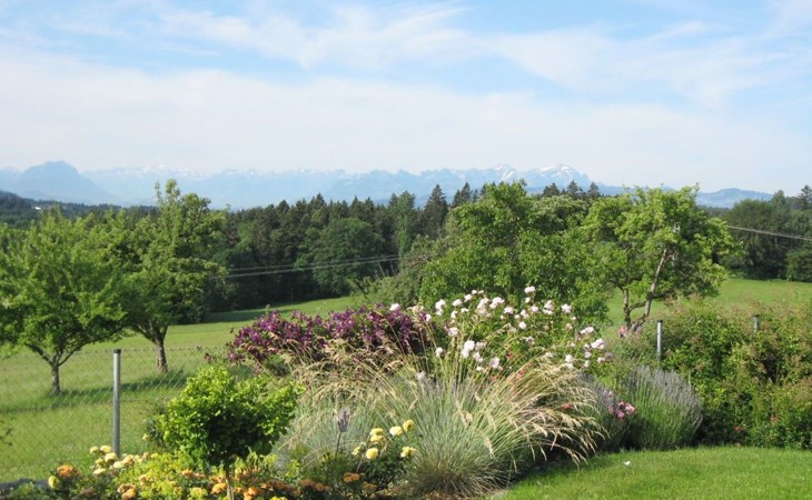 Holidays and relaxation in the middle of nature ... Our quiet house, about 1.5 km from the centre of Hergensweiler, is situated on a hill above the Leiblachtal valley in the middle of a large orchard with a magnificent view of the Austrian and Swiss mountains. idyllically situated in the triangle Austria-Lake Constance-Allgäu. rental from 6 nightsLet your soul dangle in our cosy and tastefully furnished holiday flat. in addition to the bedroom, the sofa in the living area offers two more sleeping possibilities. holiday flat for 2 - 4 persons (43 sqm) - bedroom with double bed (2 m wide)living room with sofa bed for 2 persons (1.80 m wide), satellite TV, radio, CD player, CD player, TV, radio, CD player, TV, radio, CD player, TV. TV, radio, CD player, WLANKitchen with electric cooker/ceramic hob and oven, fridge with freezer compartment, dishwasher, kettle, egg boiler and coffee machine, toasterBathroom with shower, WC, hairdryerBed and table linen, hand, shower and tea towels are providedElectricity and heating are included in the price.15 m² covered south-facing balcony with wonderful mountain views with sun loungers, dining area, awningChildren's play area, sandpit, table tennis, badmintonCharcoal barbecueFree parking at the houseQuiet, idyllic locationLiving room and bedroom with fly screens on the windowsLarge selection of brochures and hiking mapsShopping facilities:In the village of Hergensweiler (bakery, café, supermarket) approx. 2 kmIn Weißensberg 5 kmIn Wangen or Lindau 10 kmHiking (network of hiking trails) and cycling from the house (bike hire 10 km)Water sports and boat hire on Lake Constance, fishing on Lake Constance or at natural pondsBathing in the Stockenweiler Weiher (moor water, 1 km),In Lindau, 15 minutes away by car, there is the Eichwald lido on Lake Constance, surrounded by a magnificent lake and mountain panorama, with its thermal baths also located on the lake. Outdoor swimming pools in Lindau, Wangen, Oberreitnau, Lindenberg and Scheidegg (8-10 km)Relaxation and recreation at any time of yearThe island of Lindau is known for its old town centre, which invites you to stroll through the narrow streets and linger in the beautiful cafés at the harbour entrance.