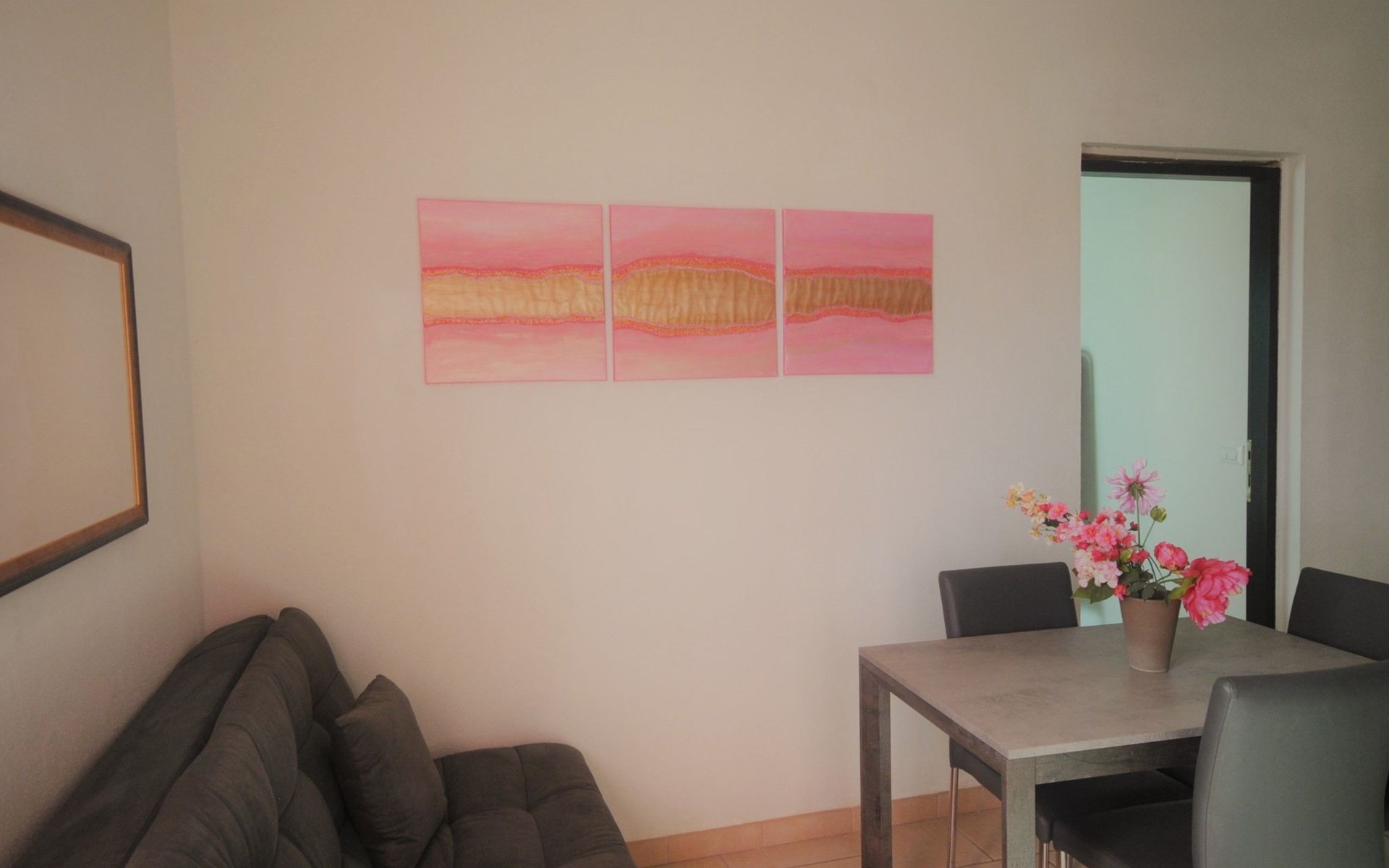 The guest house is an ideal place for those who want to spend a relaxing holiday in a beautiful setting close to the sea and mountains and also want to be close to a typical Mediterranean holiday resort. Orosei is a picturesque coastal village a good hour's drive south of Olbia (ferry and airport). The resort is 1.5 km from the beautiful Gulf of Orosei - the Caribbean of Europe. The 11 km long sandy beach can be reached by car or in a twenty-minute walk along the Via del Mare cycle path and footpath or along the river "Cedrino". Various restaurants, cafés and shops can be reached on foot in one to five minutes. It is possible to get a discount on the ferry fare! We will send you the contact details by e-mail after your booking. Description: One bedroom with double bed, living room/kitchen with single sofa bed, bathroom (shower/WC/bidet), balcony with view of exotic garden.EQUIPMENT: air conditioning/heating in kitchen/living room, modern floor air conditioning/heating with dehumidification system in the bedroom, small table as workplace, mosquito nets in windows and balcony, fully equipped kitchen, fridge, freezer, electric cooker, dishwasher, two washing machines in common room, tastefully furnished and equipped kitchen.rooms (see photos, subject to change) and BBQ.The flat has a veranda with table and three comfortable chairs, which can be placed at the back as deckchairs. The 70m² swimming pool with comfortable sun loungers invites you to linger from June to October.Our flat house consists of 14 flats with fully equipped kitchens (1 to 4 rooms). They are individually and tastefully furnished and also have a garden seating area or balcony with a view of the mountains or the olive grove. Parking spaces are available in the inner courtyard or in the underground car park with lift access, WI-FI and TV (Sat/Astra) are available free of charge. If you wish to travel by car, you can take a ferry from Genoa or Livorno to Olbia. We recommend booking the overnight ferry with a cabin. This way you arrive on the island rested and can enjoy your holiday to the full from the very first day. Or you can fly to Olbia and book a hire car. Our varied sandy beaches, which are never overcrowded even in the high season, are perfect for enjoying a beach holiday to the full with more than enough space. We look forward to seeing you. Best wishes and have a good trip, the Winkler familySurrounded by dream beaches, gorges and mountains The Gulf of Orosei with its nature reserves "Su Barone" and "Bidderosa" is one of the most varied holiday areas in Sardinia. It offers not only a variety of sandy beaches and dreamy bays, but also charming mountain areas with picturesque villages and imposing gorges. The beaches are among the most beautiful and cleanest in Europe and evoke real Caribbean feelings. A boat trip with a hired rubber boat or small ship, past breathtaking grottos and bays and the deep blue to emerald green water to Cala Goloritze, is a truly unforgettable experience! Other leisure activities include diving, canoeing, trekking, fishing, archaeological tours, horse riding, cycling tours in the unspoilt countryside, climbing, quad biking, expeditions into the wild interior, wine tasting, and it is also an ideal starting point for motorbike tours. IT09106384000E2057