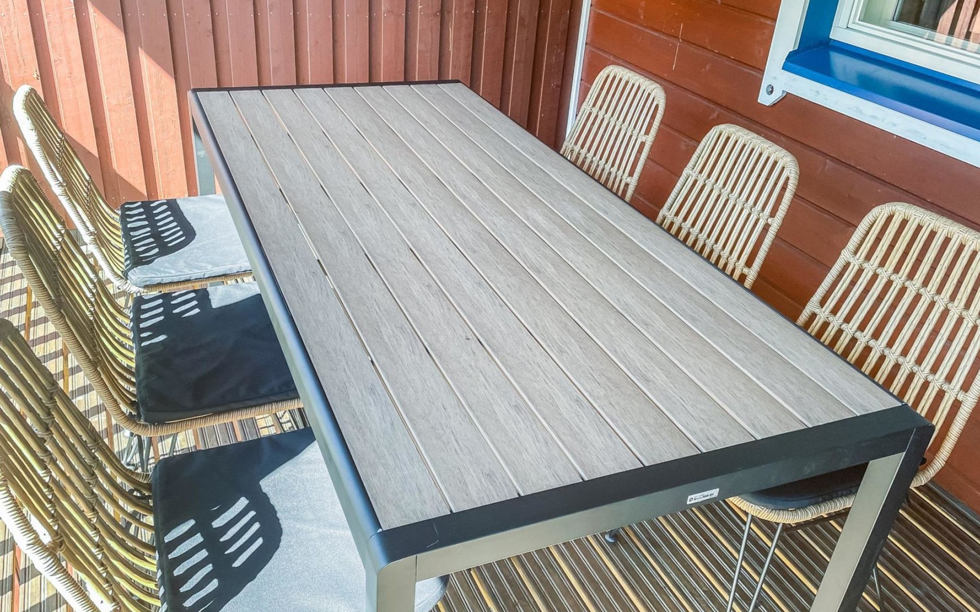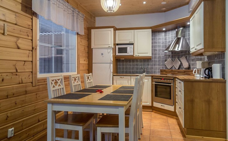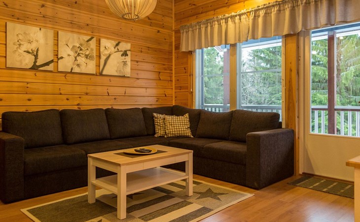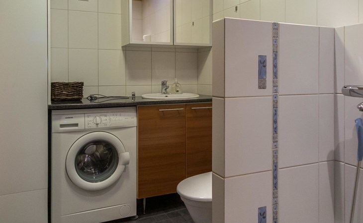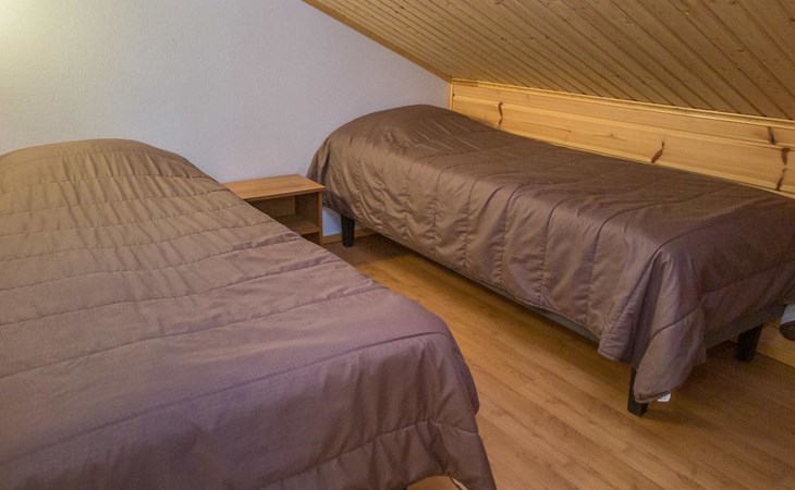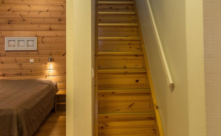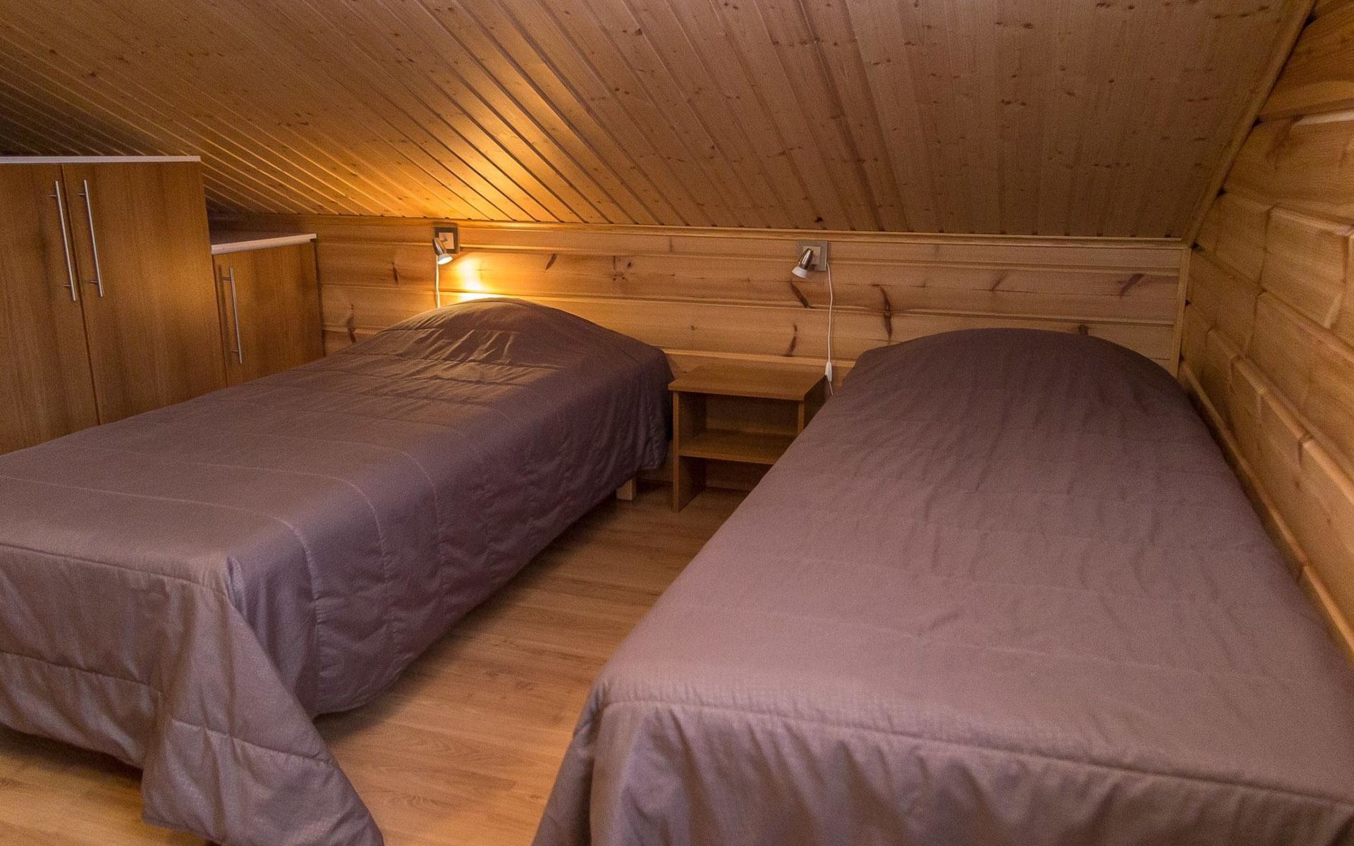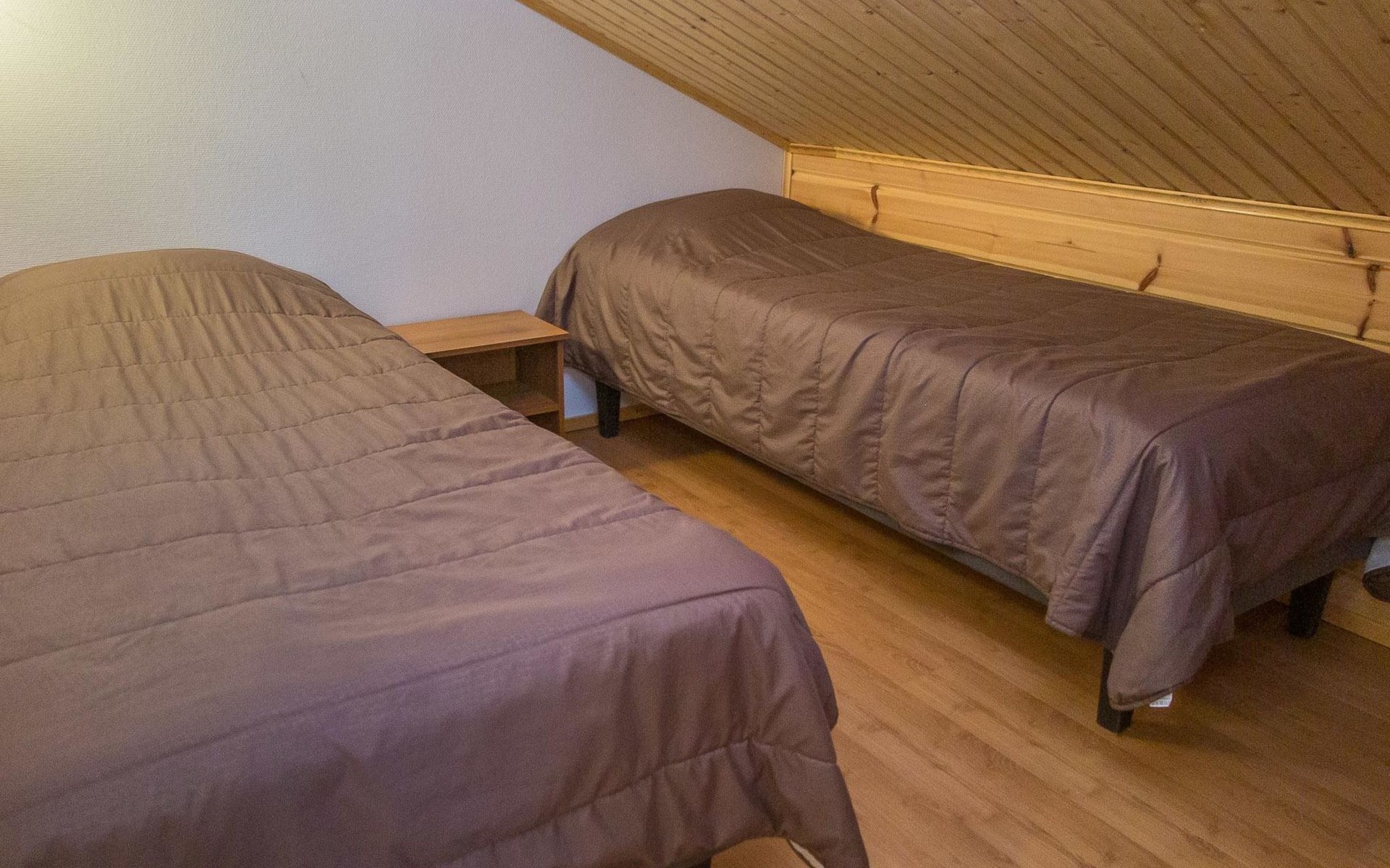 Apartment´s downstairs kitchen- living room, bedroom 2 beds, washroom with WC, sauna (electric stove), terrace. Upstairs bedroom 2 beds, sleeping loft 4 beds, WC. Stairs to the upper floor are quite steep and narrow. Child safety gates upstairs and downstairs.