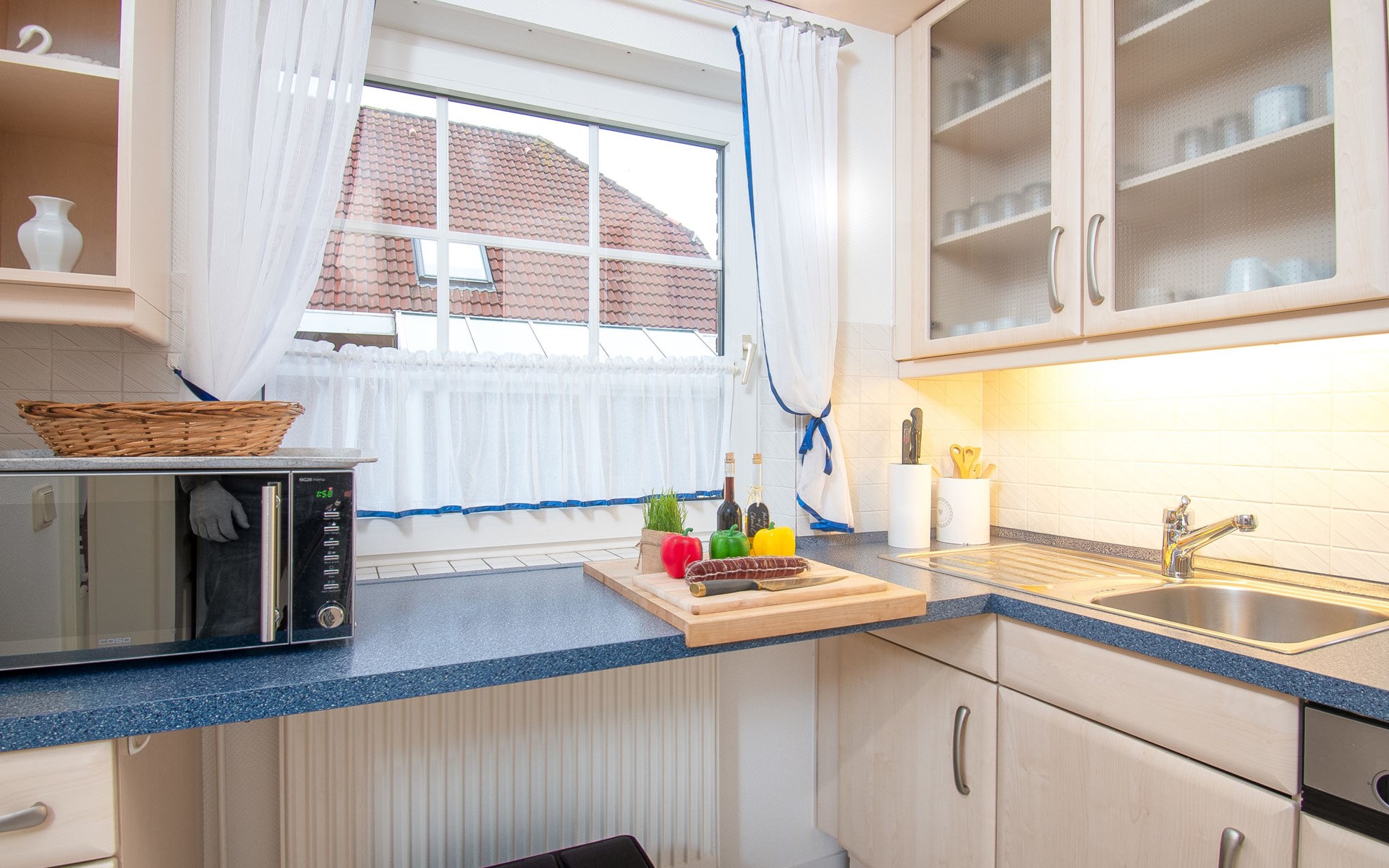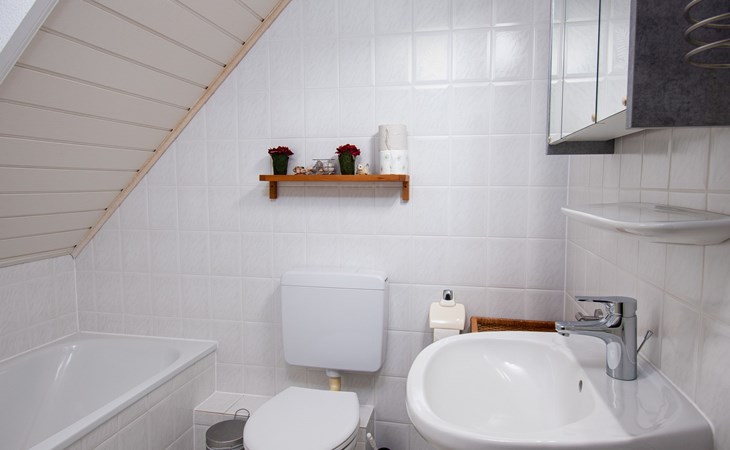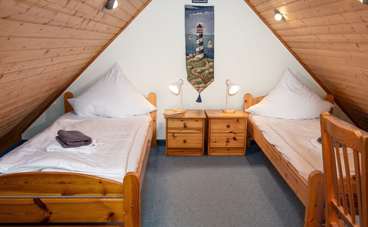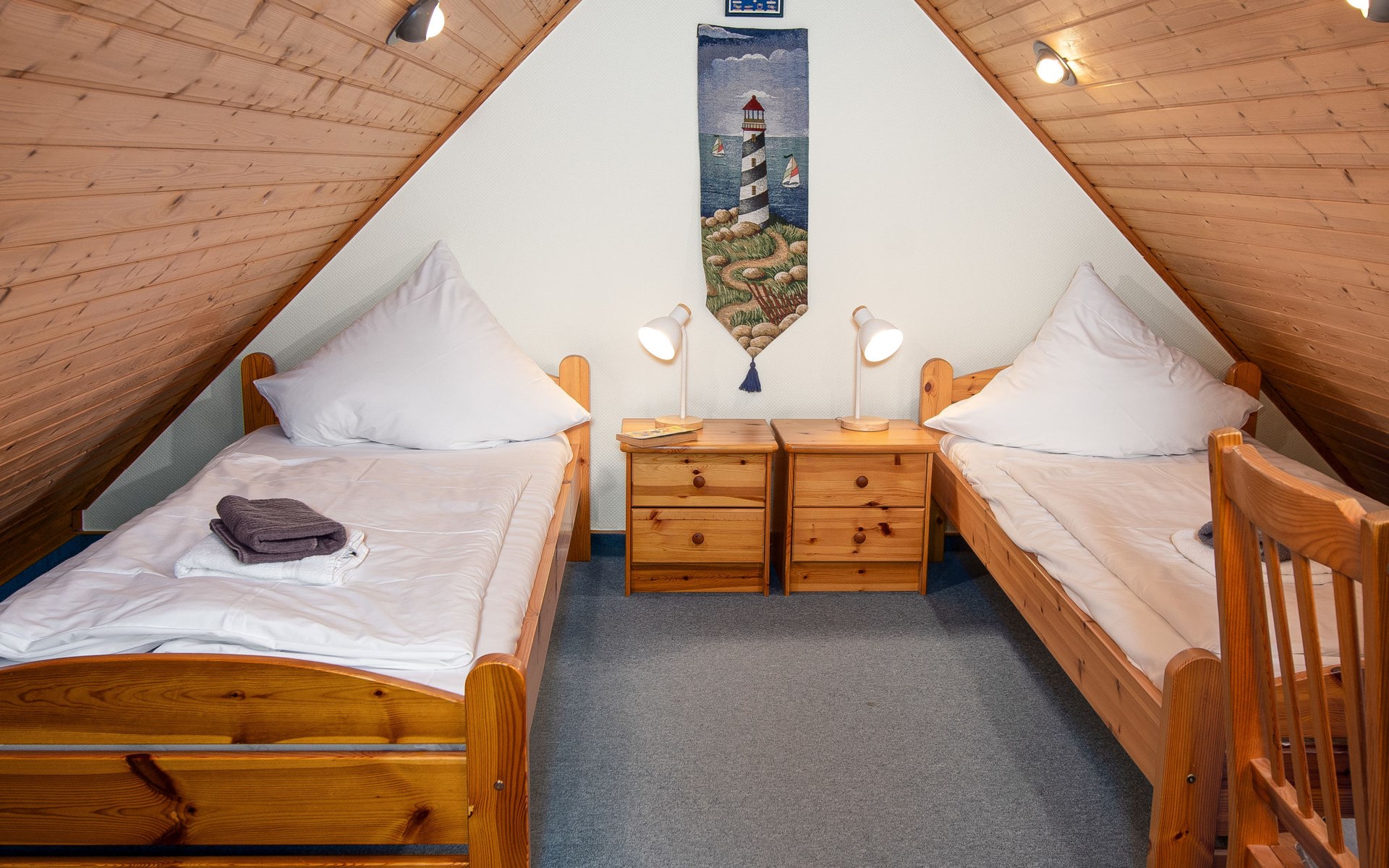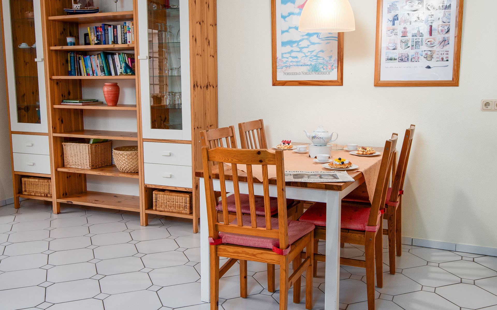 Rijtjeshuis. Aan de rand van de plaats, 1.5 km van zee, 1.5 km van het strand. In het huis: bergruimte voor fietsen, centrale verwarming. Parkeerplaats bij het huis. Supermarkt, bakkerij, café 800 m, bushalte 550 m, station 2.1 km, veerboot "Norddeich" 2.1 km, zandstrand 1.5 km, openluchtzwembad 12 km, overdekt zwembad 750 m. Golfterrein (18 holes) 7.6 km, midgetgolf 750 m.