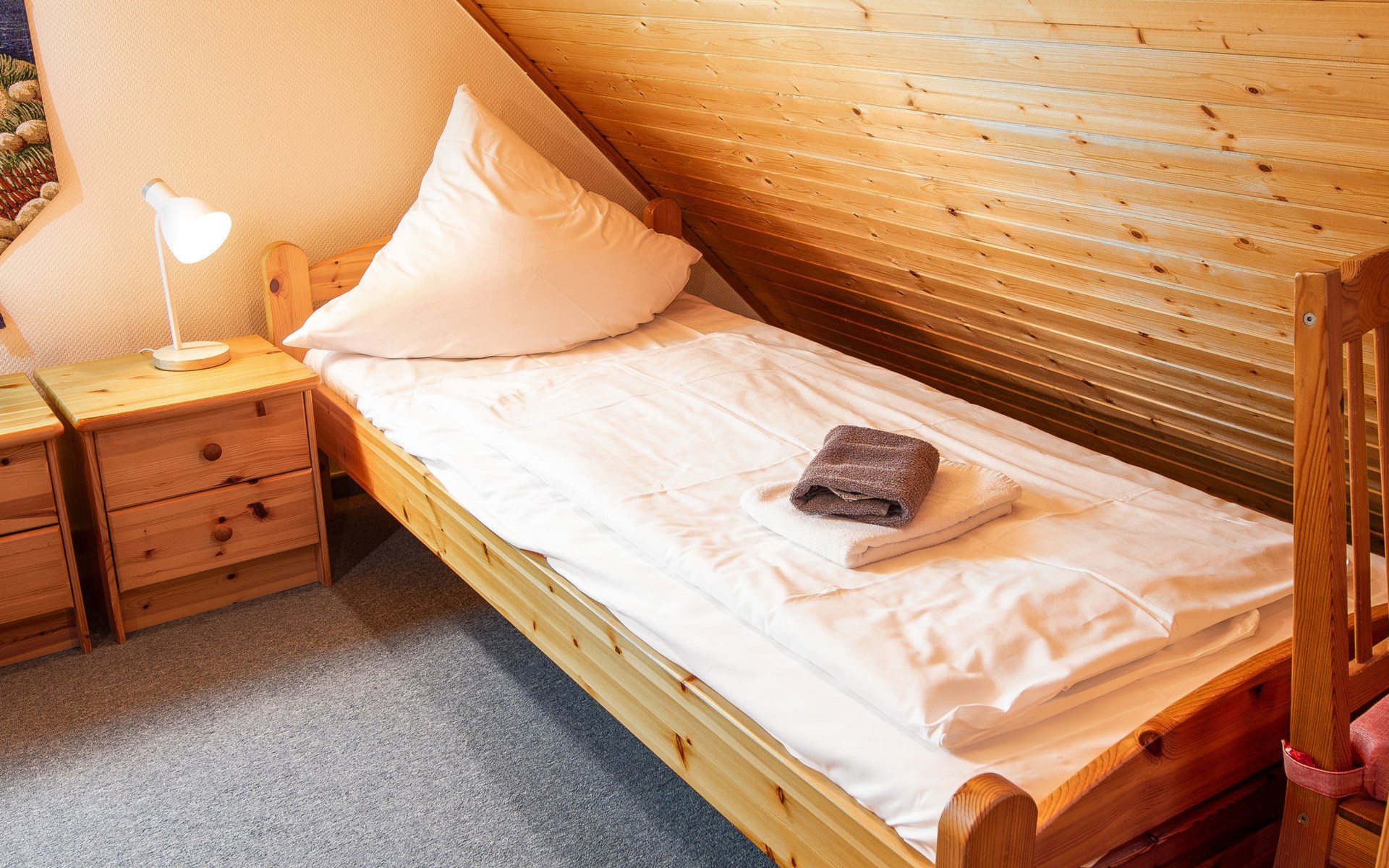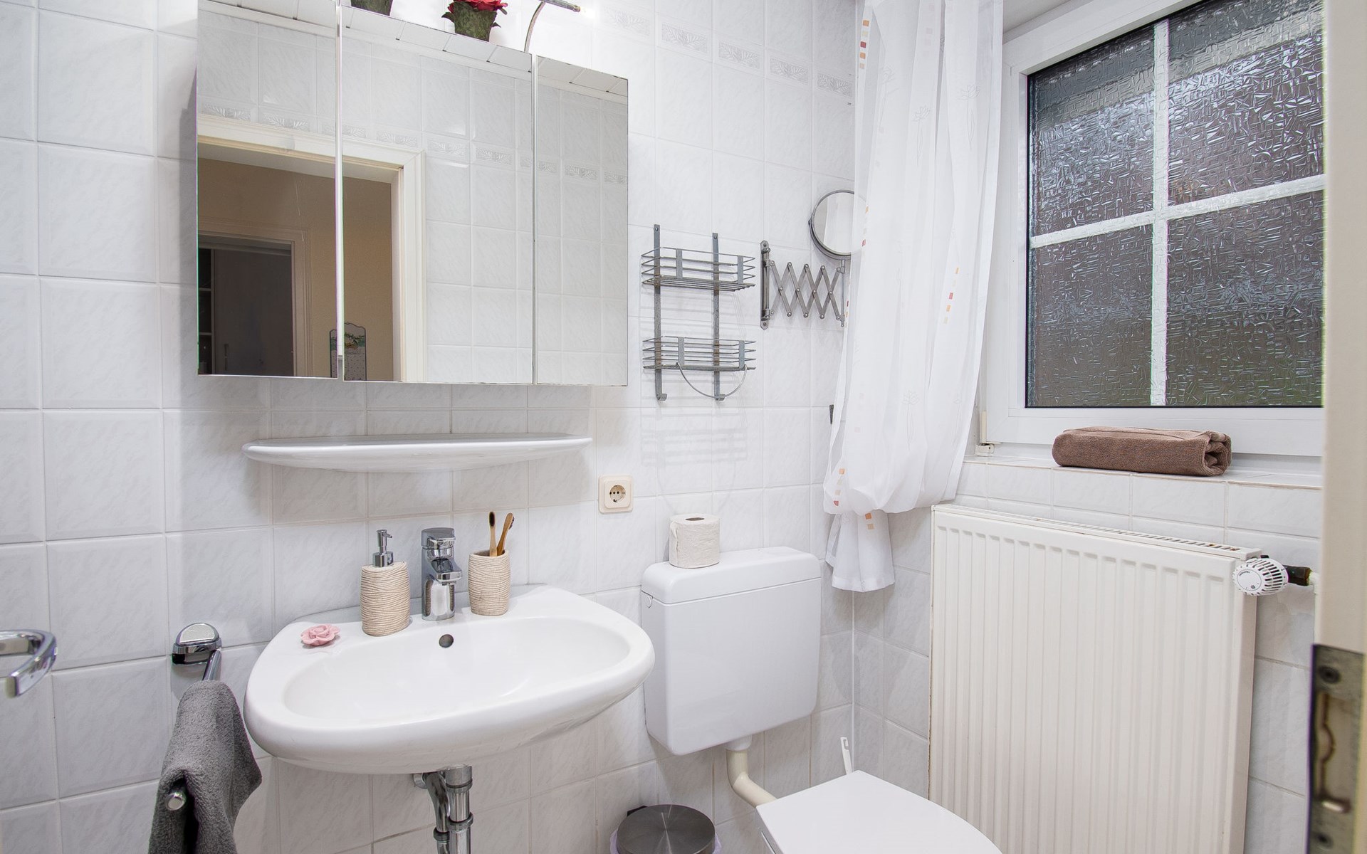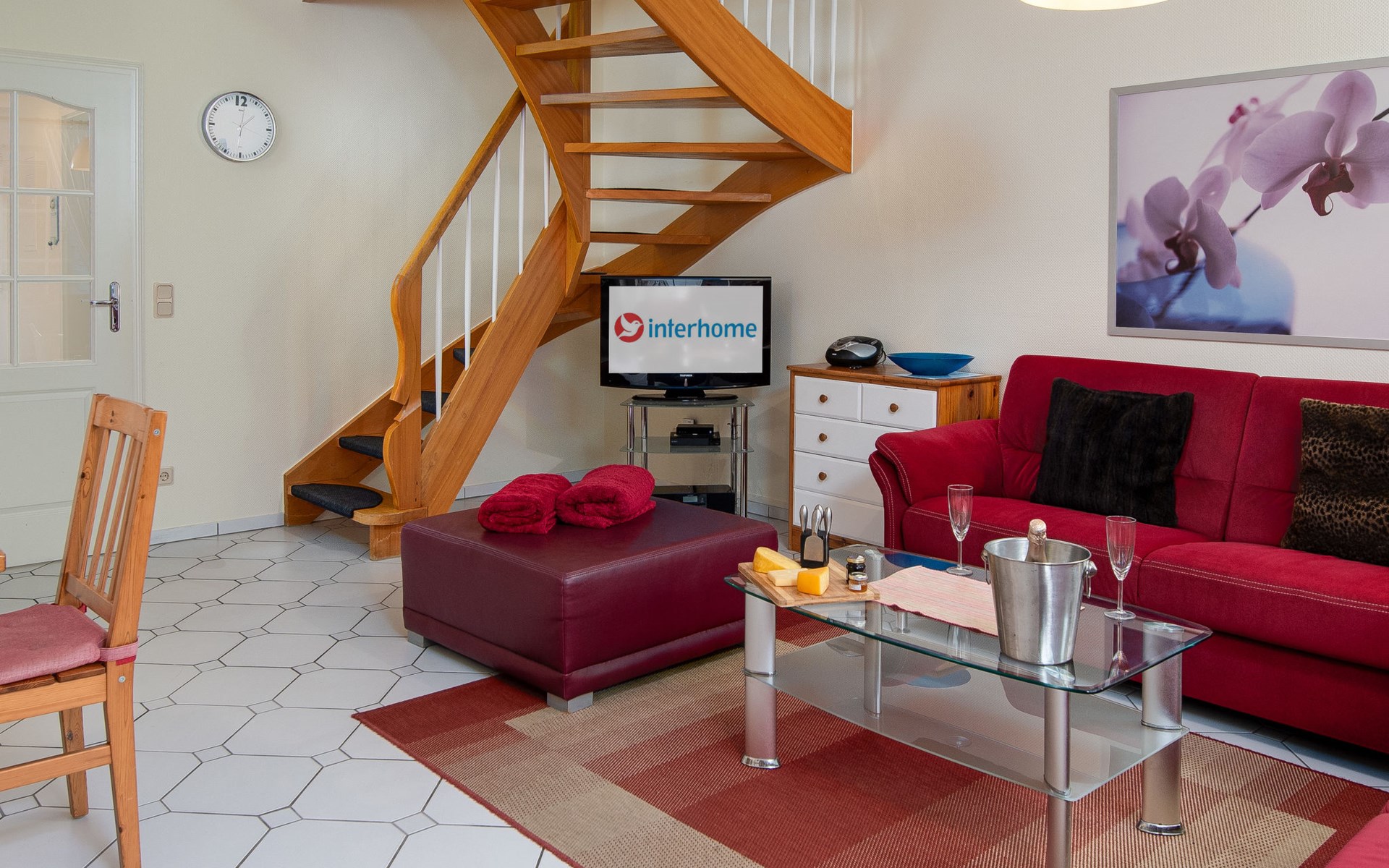 Rijtjeshuis. Aan de rand van de plaats, 1.5 km van zee, 1.5 km van het strand. In het huis: bergruimte voor fietsen, centrale verwarming. Parkeerplaats bij het huis. Supermarkt, bakkerij, café 800 m, bushalte 550 m, station 2.1 km, veerboot "Norddeich" 2.1 km, zandstrand 1.5 km, openluchtzwembad 12 km, overdekt zwembad 750 m. Golfterrein (18 holes) 7.6 km, midgetgolf 750 m.