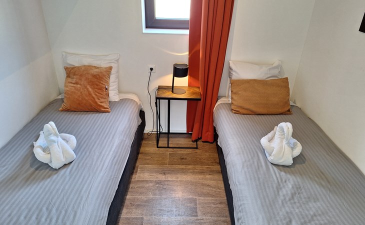 De Cube la Mer 4 is een vrijstaande woning die onder architectuur is gebouwd. Het chalet is slim ingedeeld en heeft dankzij de hoge ramen veel lichtinval. Dit robuuste en gelijkvloerse chalet biedt ruimte aan 4 personen. In het woongedeelte vind je een zithoek met televisie en de keuken is onder andere voorzien van een vaatwasser, combimagnetron, waterkoker en een Senseo. De Cube la Mer 4 heeft in totaal 2 slaapkamers, elk met twee eenpersoonsbedden. Ook is er een badkamer met douche en toilet. Op het zonneterras is een tuinset aanwezig. Verder kun je 1 auto bij deze woning parkeren en er is gratis WiFi aanwezig.