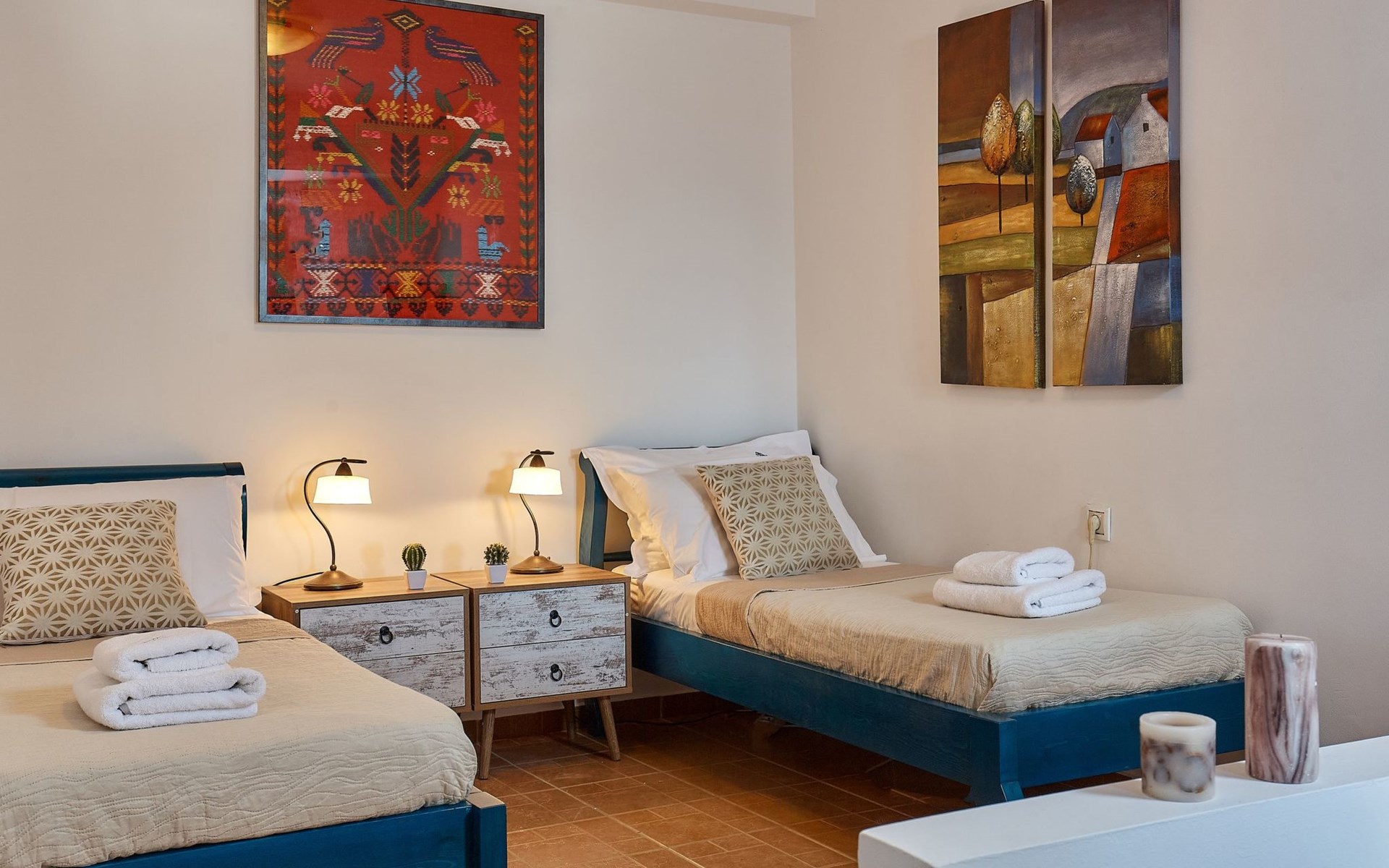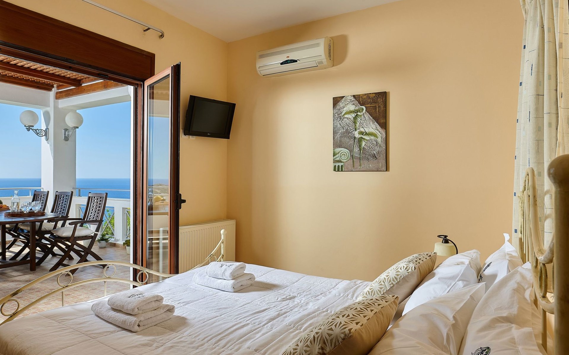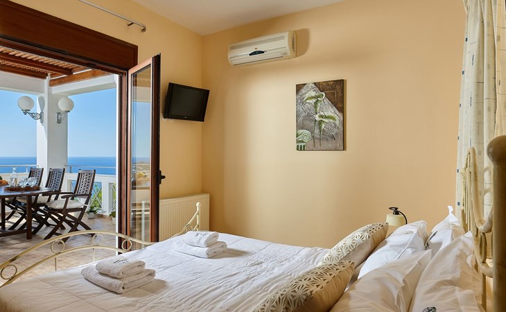 A great way to start your day is our wholesome breakfast. It is served in a specially designed place where you can eat looking at the green mountainous forests from the one side and the endless sea from the other. Our breakfast is prepared every morning from our chef, offering a variety of tastes and based on local fresh products, such as olive oil, eggs, honey, fruits, etc. It is highly praised by our visitors so far. We offer a daily simple cleaning of your villa and a general, more detailed one every two or three days so that you can enjoy your stay carefree. 1041K91002923001