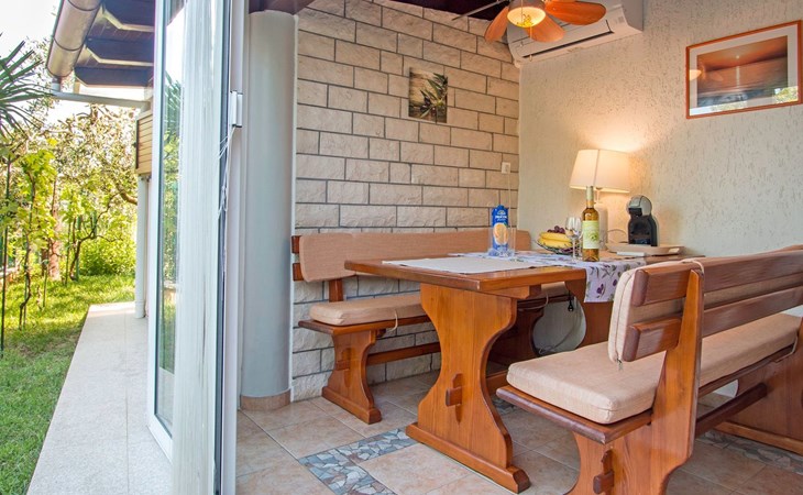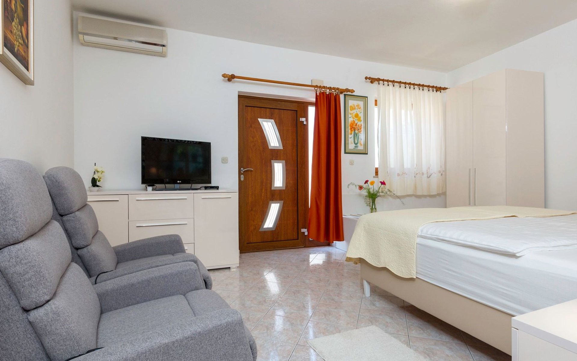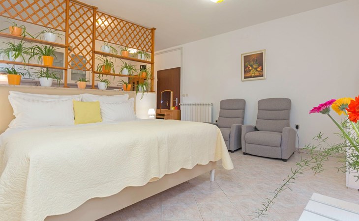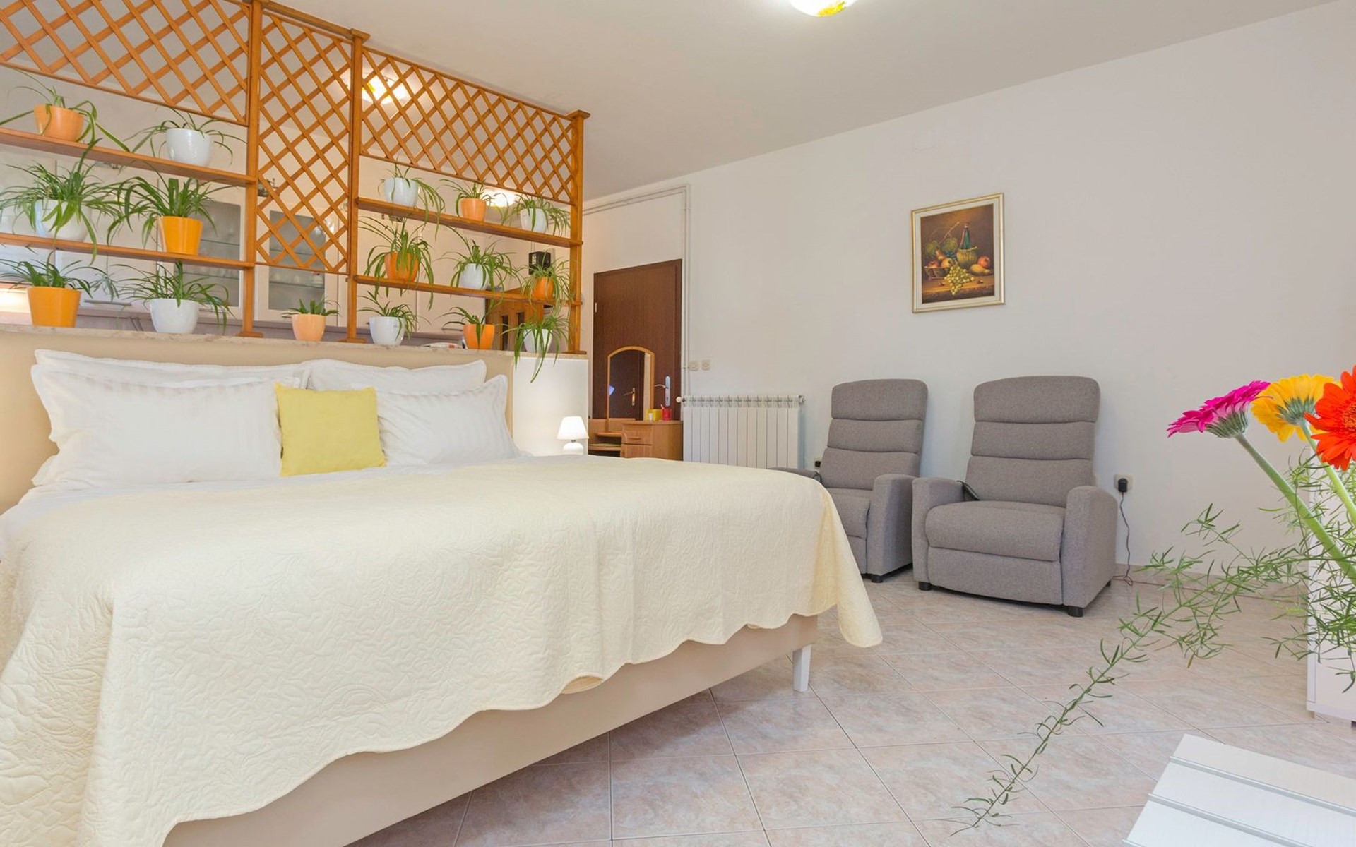 Discover the charming Studio Oliva flat, a jewel with four-star comfort on 48 m², which offers you free private parking, Wi-Fi, two air conditioning units, two massage chairs, a minibar and barbecue facilities. Enjoy refreshing drinks and selected house wines on arrival and feel immediately welcome. Your hospitable host, a German teacher, speaks fluent Croatian, German and Italian and will be at your disposal at any time during your stay, both in person and via mobile phone.Inside, you will find a cosy bedroom with a double bed measuring 200 x 180, equipped with a flat-screen satellite TV and a safe, including a carbon dioxide indicator for your safety. The kitchen leaves nothing to be desired and is fully equipped with a dishwasher, microwave, a filter coffee machine and a Dolce Gusto coffee machine including capsules, a kettle and much more. The bathroom is equipped with toilet, washbasin, shower gel, shampoo, soap, hairdryer and towels, and there is an additional toilet with washing machine. A conservatory with cosy seating provides access to the garden.The outside area invites you to relax under olive trees on comfortable garden furniture. Here you can unwind and immerse yourself in the idyllic atmosphere while enjoying the benefits of the barbecue area.Situated in the immediate vicinity of supermarkets, restaurants, bakeries, cafés and banking and postal services, the Studio Oliva flat offers an excellent starting point for your explorations. Just a few minutes' walk away you will find public transport that will take you directly to the heart of Pula, a 3000-year-old city full of historical, cultural and gastronomic discoveries. Sights such as the amphitheatre, the Arch of Sergi, Kastel Fortress and Kamenjak Nature Park are within easy reach and definitely worth a visit.Make Apartment Studio Oliva the starting point for your adventures in Istria. Enjoy the luxury and comfort of our exclusive offer, the proximity to cultural treasures and the unique hospitality that will make your stay unforgettable. Welcome to your home away from home! CLASSE: UP/I-335-03/24-01/1326