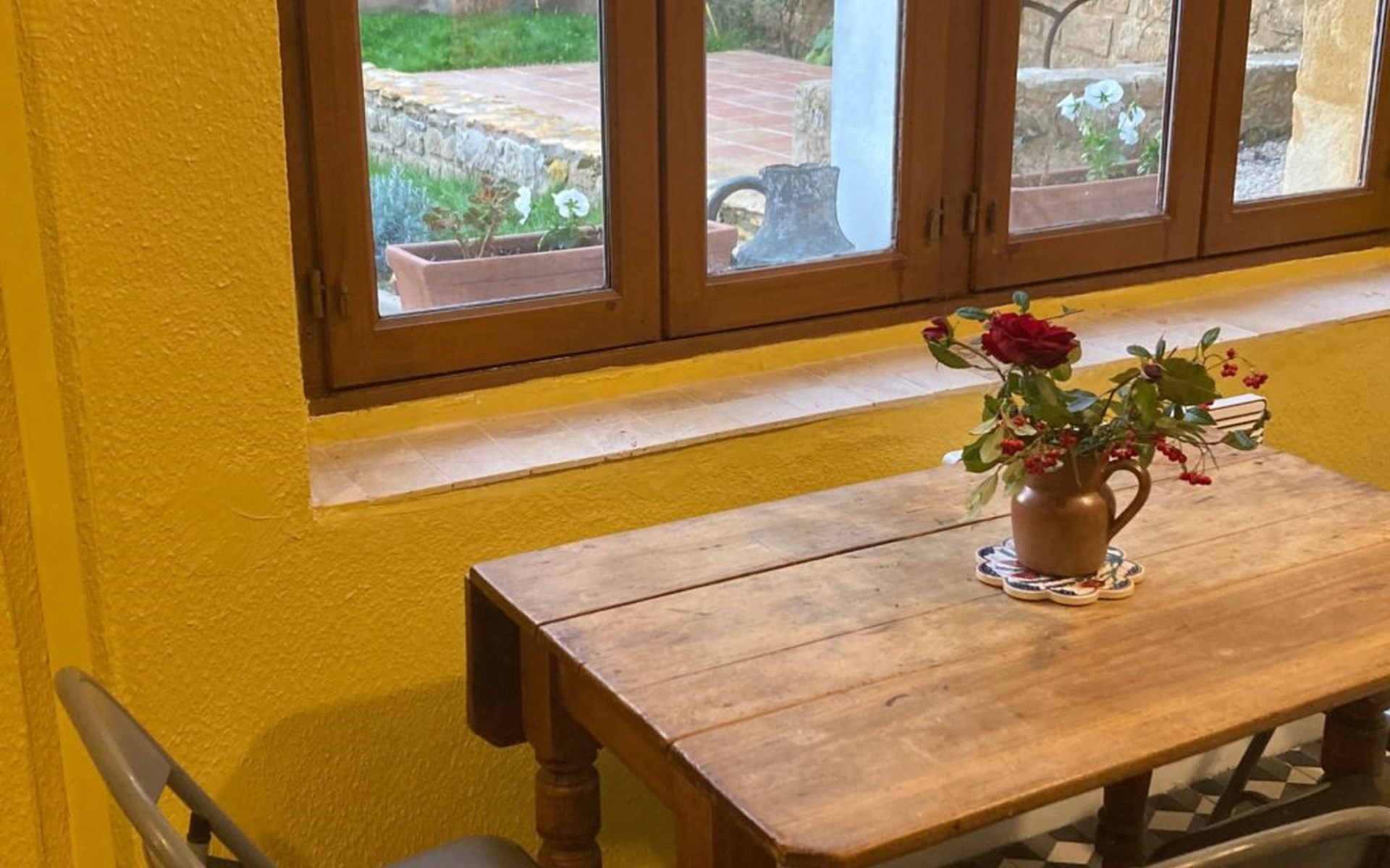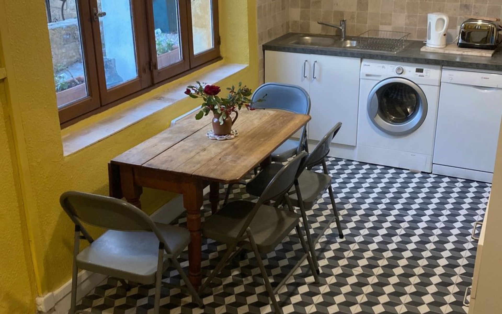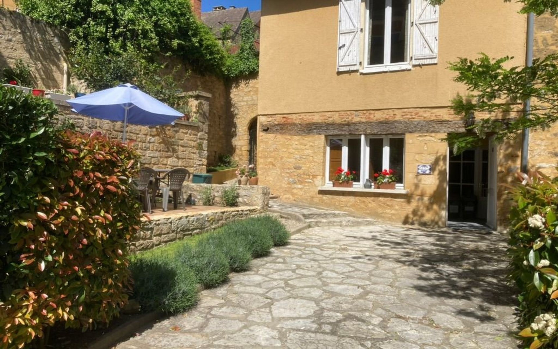 Our beautifully restored house (some parts dating from the 12th century) is in the heart of historic Gourdon with its medieval streets and houses. Gourdon is situated in the Lot, a 15 minute drive from the border with the Dordogne. The town is easily accessible by car (a 12 mile drive from the A20) or by train from Paris. The station is a 15 minute walk from the house. The nearest airports are at Brive, Bergerac, Limoges and Toulouse. We can advise re car rental if required.Restaurants, bars and shops are a five minute walk away.Languages spoken: English, FrenchThe House is in Rue du Cardinal Farinié on the side of the hill which dominates the town and which is crowned by the 14th century church of St Pierre. Our house, Valentines, is surrounded by medieval buildings with their pointed arches and towers, creamy stone facades and red tiled roofs.We have off street parking (first come first served!) in the front drive and a lockable front gate. Public parking is nearby.In renovating the house we have taken care to preserve original features and its historic character whilst also providing modern comforts. The furnishings and paintings also reflect this blend of antique and modern. There is satellite TV and wi-fi in the Gite. The modern kitchen looks out onto the garden and terrace.The front garden at Valentines with its flower beds, lawn and ancient acacia tree, has a terrace for outdoor dining for the exclusive use of guests.Parts of the house date from the 12th century and are built of honeyed local stone. The Gite has tiled floors with rugs, wall hangings and paintings.Gourdon is stone’s throw from the major tourist attractions of the Lot and the Dordogne. Lake and Dordogne river swimming are nearby. Here are some highlights and some lesser known places worth a visit:Gouffre de PadiracOne of the most famous underground cavern sites in France. You take 2 lifts to descend the vertiginous ‘well’, the impressive chasm you will have seen from surface. Towards the end of the 19th century violent flooding of the underground river opened up a passage from the bottom of the ‘well’ to the spectacular underground galleries. So far 22km of tunnels and galleries have been discovered. When you reach the underground river you take a flat bottiomed boat with a ‘gondolier’/guide. You then walk on past many wonders to end up at the Salle du Grand Dome, the largest and most beautiful of the Padirac caverns.Rocamadour One of the most extraordinary sites in France, this sanctuary and famous place of pilgrimage clings to the rock face 150m above the Alzou Canyon. Henry Plantagenet, King of England from 1154 until 1189, was one of the first pilgrims to come to Rocamadour in search of a miraculous cure.Sarlat la Canéda Sarlat is a pretty and well preserved historic town with narrow medieval streets and handsome Gothic and Renaissance houses, mainly rebuilt when Charles Vll bestowed privileges upon Sarlat to thank its population for their resistance against the English.Les Arques In 1934 the sculptor Ossip Zadkine and his artist wife Valentine Prax fell in love with this charming village and bought a house there. There is now a wonderful museum, Musée Zadkine (bronzes, tapestries, wood sculptures, lithographs) to visit. In the Romanesque church there is an enormous Zadkine crucifix and a stunning pieta. Les Arques has a very good restaurant, La Récréation and a more modest tea room.GourdonAnd quite apart from all there is to see and explore in the area is the historic hill town of Gourdon itself with its medieval streets, twisting narrow lanes, splendid Renaissance stone houses and fortified gateway at one end of the rue du Majou. At the top of the hill, where the castle once stood, there is a superb view stretching for miles. FRA2023OCC