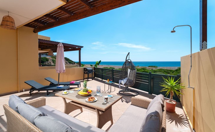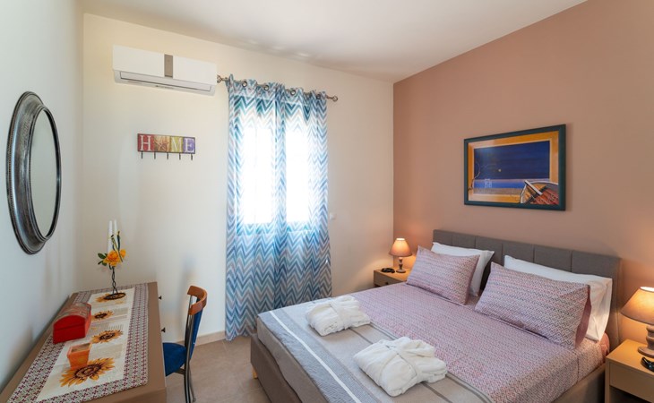 Discover the serene beauty of Lachania, Dodekanes, with a stay at one of the charming Mare Blu maisonettes, Mare Blu 1 or Mare Blu 2, perfectly designed for groups or families of four looking to escape the hustle and bustle of daily life. Nestled near the soothing ocean waves, these welcoming abodes blend convenience with relaxation, offering a home away from home where every need is catered to amidst the backdrop of captivating natural surroundings.Inside these cozy maisonettes, guests are offered a host of amenities aimed at ensuring a comfortable and hassle-free stay. Both Mare Blu 1 and Mare Blu 2 feature two well-appointed bedrooms - one with a double bed on the first floor and another with twin beds on the ground level, each paired with its own bathroom, promising privacy and ease for all residents. The ground floor houses a compact yet functional kitchen, alongside a living space where guests can unwind. Both levels are equipped with air conditioning to keep indoors pleasant throughout your stay. Not to be overlooked is the inclusion of practicalities such as a washing machine for exclusive use and a variety of coffee preparation options, including a capsule coffee machine, to satisfy those morning beverage cravings.Step outside to discover the outdoor haven that compliments each maisonette. The ground-floor terrace offers a tranquil spot for relaxation, accessorized with sunbeds, a swing chair, and a cozy outdoor sofa positioned under a pergola - creating the perfect setting for guests to marvel at the sea view. The presence of a private garden adds to the allure, providing a verdant space for sole use where one can bask in the bliss of nature's tranquility. Each maisonette also boasts a balcony on the first floor, offering an intimate space to witness the breathtaking sunrise. The added convenience of a parking space and the charm of small rocky gardens at the house's entry embody a welcoming atmosphere for all guests, including those with large dogs.The location of Mare Blu maisonettes offers an irresistible blend of seclusion and convenience, with the sea's calming embrace merely 70 meters away, inviting you to immerse in scenic beauty and tranquility. For those seeking to explore beyond the serene shores, the nearest town center lies just 4000 meters from your doorstep, promising encounters with local culture, dining, and shopping experiences that capture the essence of Lachania, Dodekanes.In choosing Mare Blu 1 or Mare Blu 2 for your next holiday, you opt for an experience that combines the comfort of home with the enchanting allure of the Dodekanese seaside. Whether seeking a peaceful retreat by the sea, craving intimate sunrise viewings, or desiring a base to explore the vibrant local area, these maisonettes offer a uniquely inviting getaway. Embrace the joy of shared moments and the tranquility of private spaces, all set against the picturesque backdrop of Lachania's coast, and make your next escape one to remember. 1368518