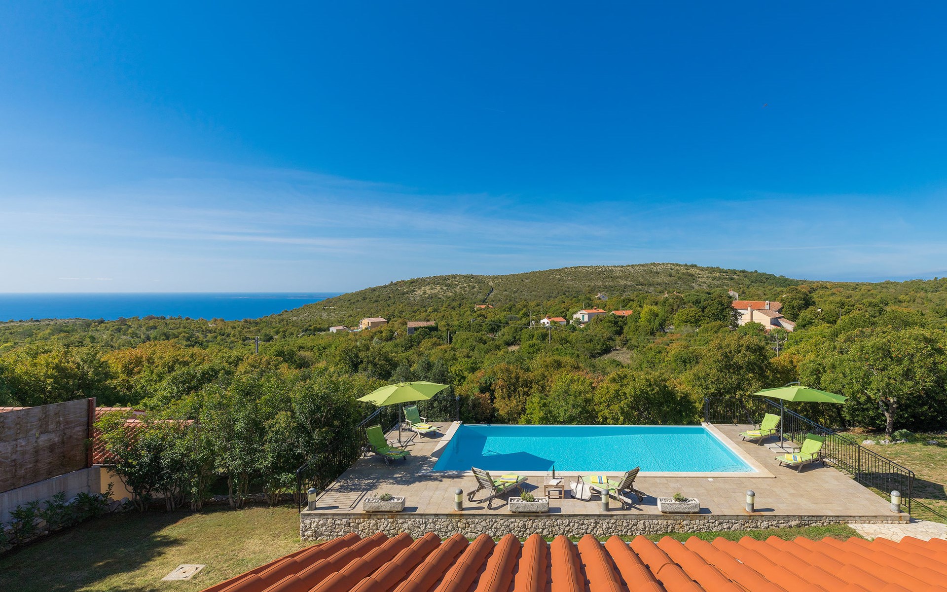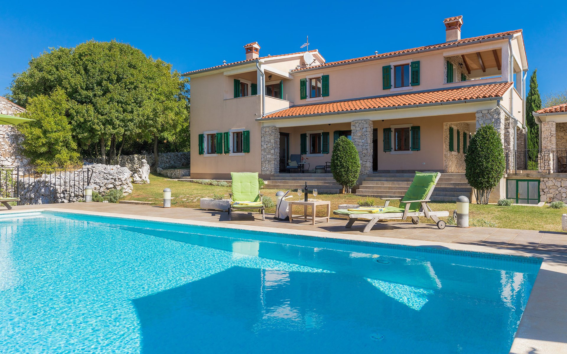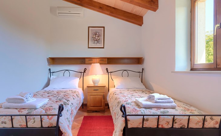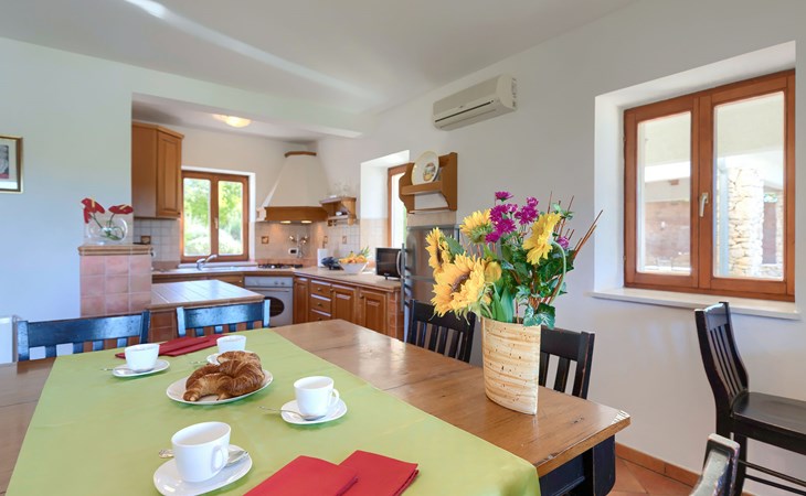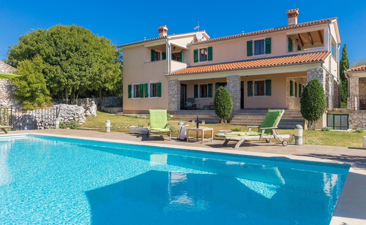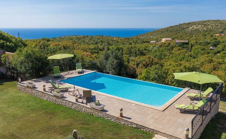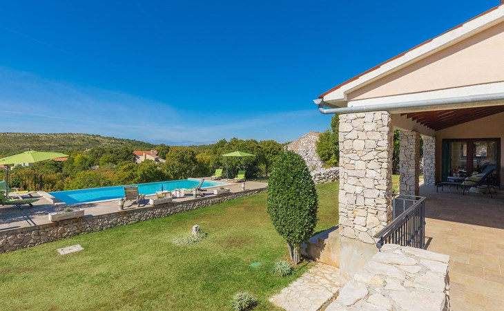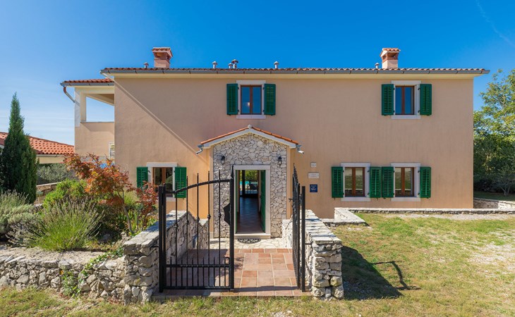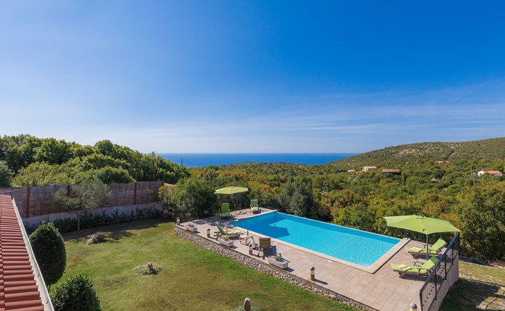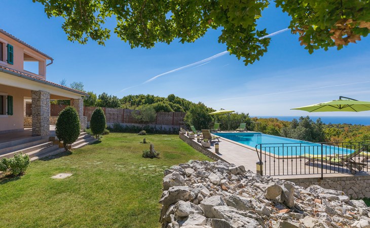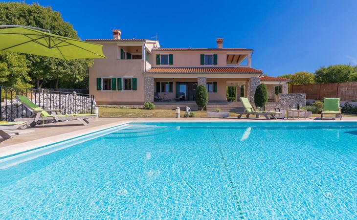Skitača 20 km van Rabac: Mooi, comfortabele villa "Albina", van 2 verdiepingen, omgeven door bomen. In het gehucht Skitača, 15 km van het centrum van Labin, rustige, zonnige, verhoogde ligging, 5 km van zee, 5 km van het strand, te midden van groen. Voor alleengebruik: verzorgde tuin 400 m2 met gazon, openluchtzwembad hoekig (10 x 5 m, 90 - 145 cm diepte, seizoensgebonden beschikbaarheid: 04.Mei. - 14.Sep.) met trap. Terras, tuinmeubelen, barbecue. In het huis: internetaansluiting, air-conditioning, wasmachine. Toegangsweg (100 m onverharde weg). Parkeerplaats bij het huis op het terrein. Winkel 5 km, restaurant 5 km, bushalte 19.5 km, kiezelstrand 5 km, rotsstrand 5 km.