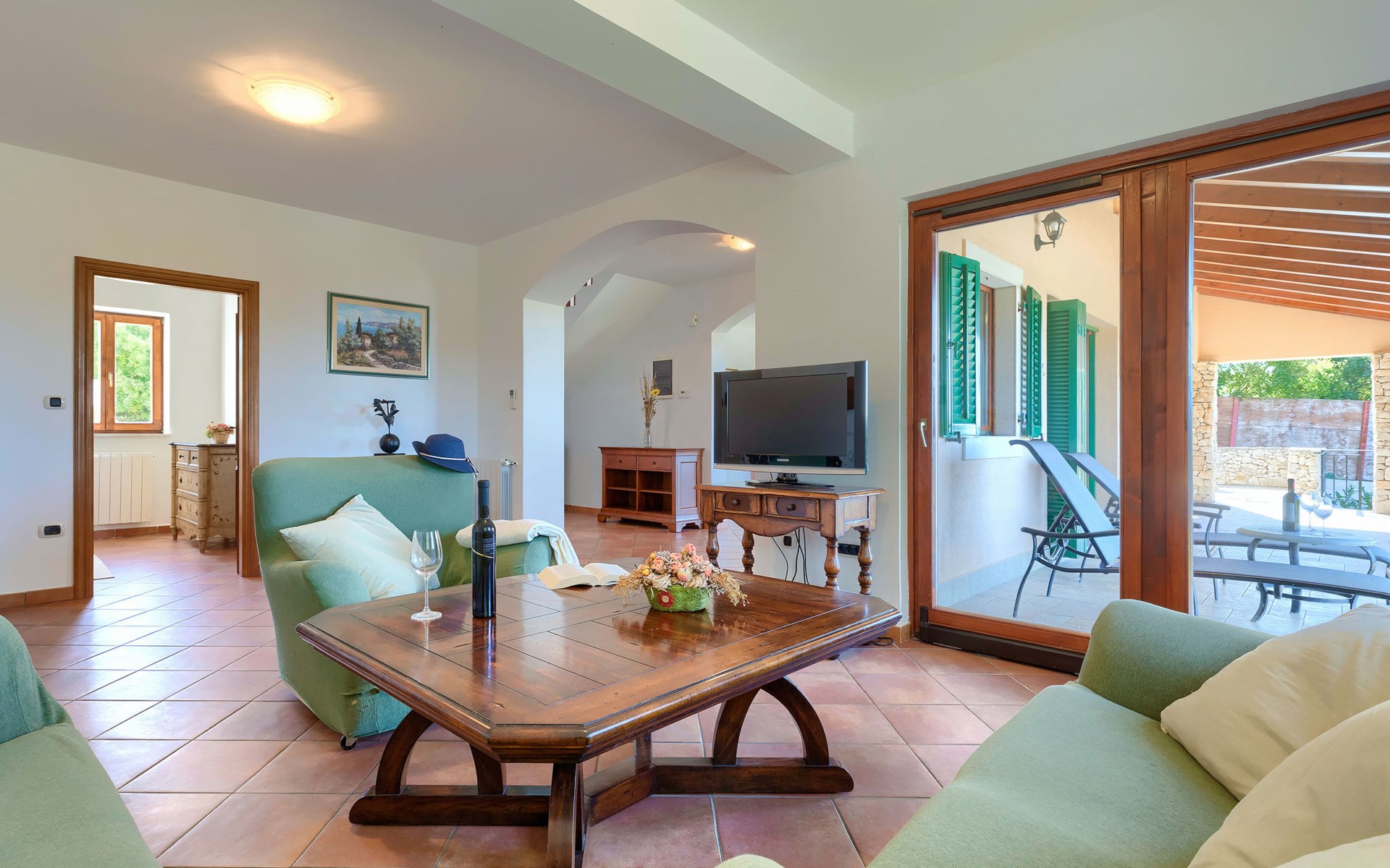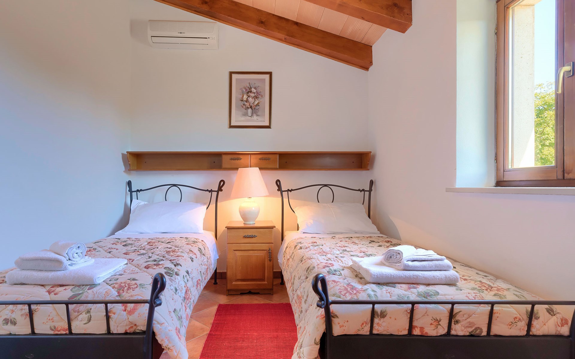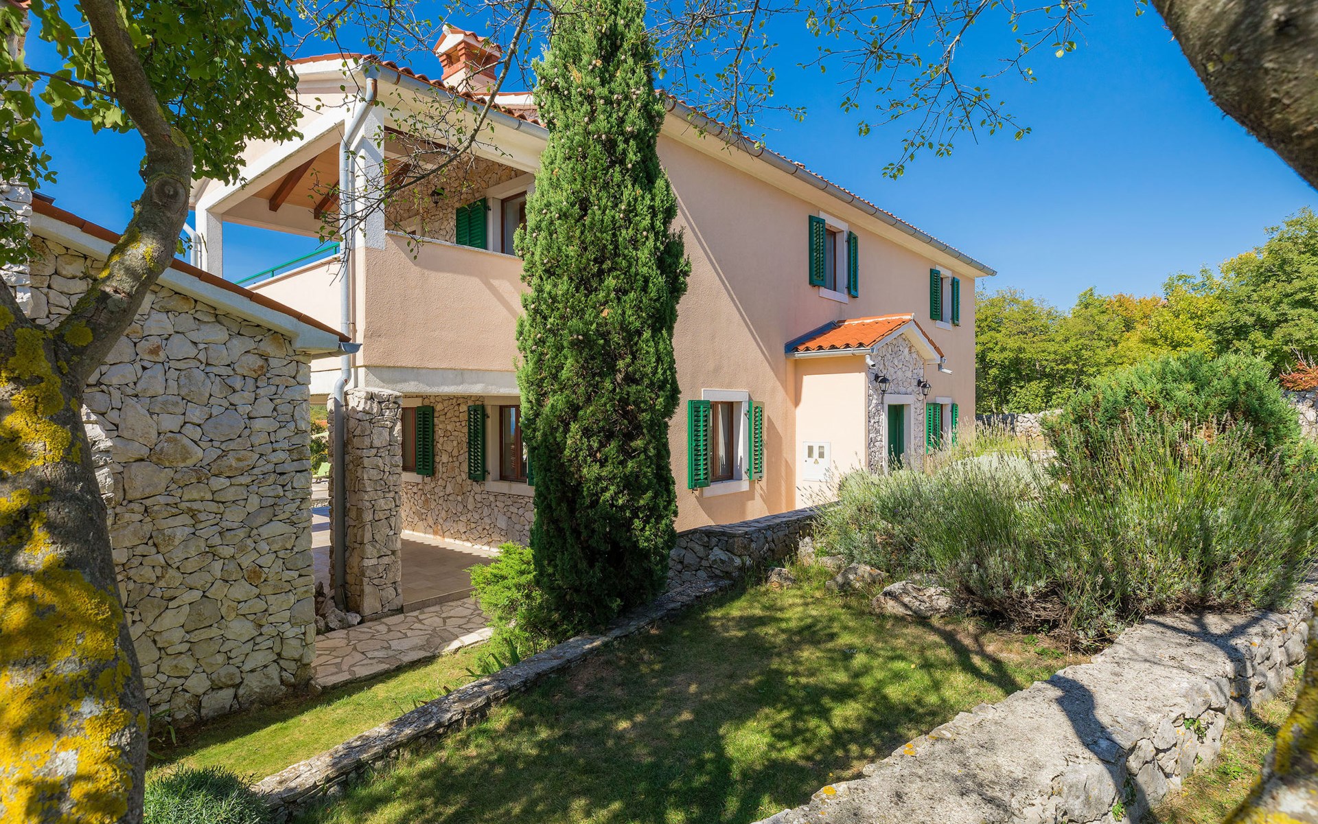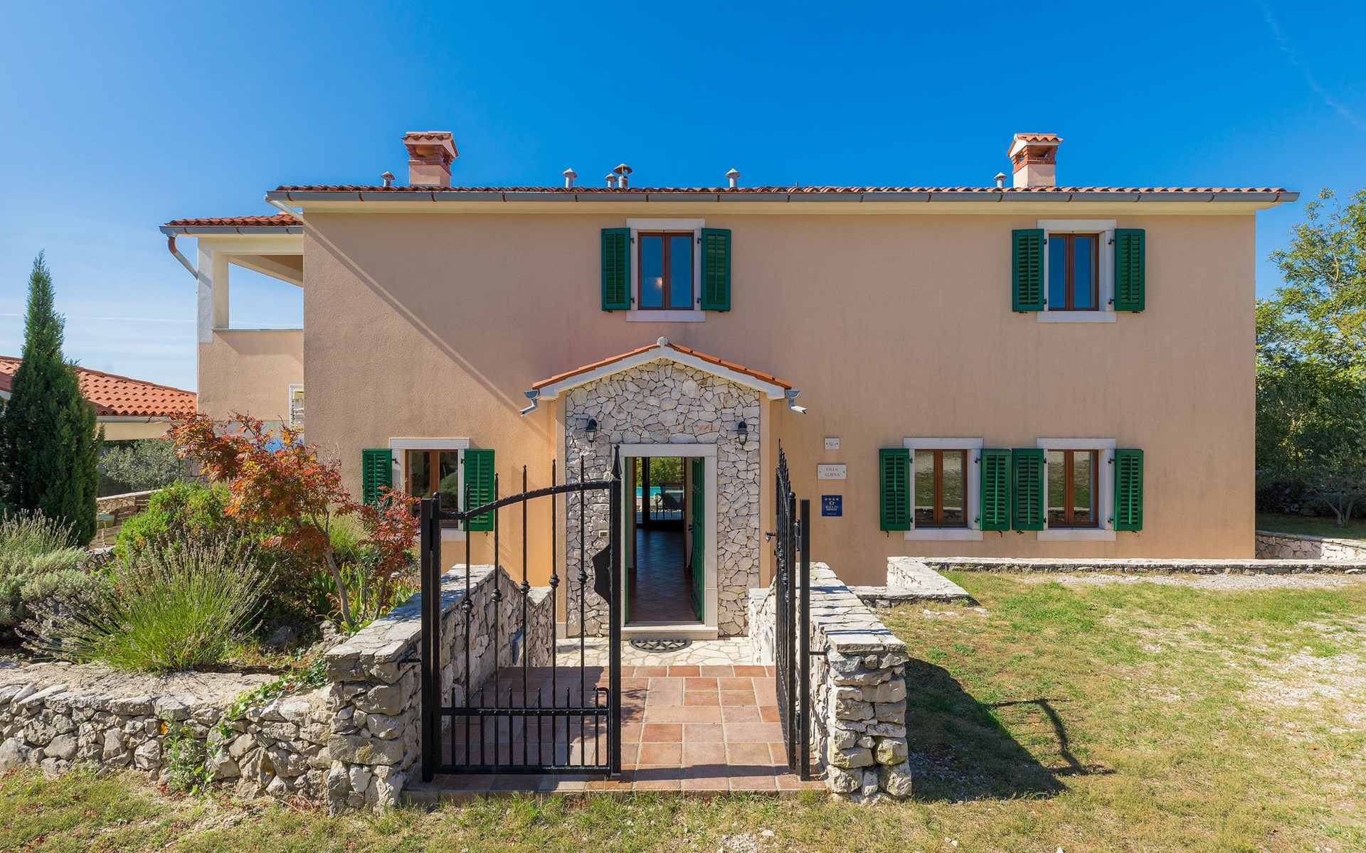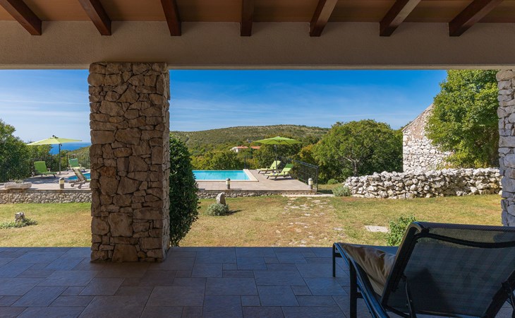 Skitača 20 km van Rabac: Mooi, comfortabele villa "Albina", van 2 verdiepingen, omgeven door bomen. In het gehucht Skitača, 15 km van het centrum van Labin, rustige, zonnige, verhoogde ligging, 5 km van zee, 5 km van het strand, te midden van groen. Voor alleengebruik: verzorgde tuin 400 m2 met gazon, openluchtzwembad hoekig (10 x 5 m, 90 - 145 cm diepte, seizoensgebonden beschikbaarheid: 04.Mei. - 14.Sep.) met trap. Terras, tuinmeubelen, barbecue. In het huis: internetaansluiting, air-conditioning, wasmachine. Toegangsweg (100 m onverharde weg). Parkeerplaats bij het huis op het terrein. Winkel 5 km, restaurant 5 km, bushalte 19.5 km, kiezelstrand 5 km, rotsstrand 5 km.