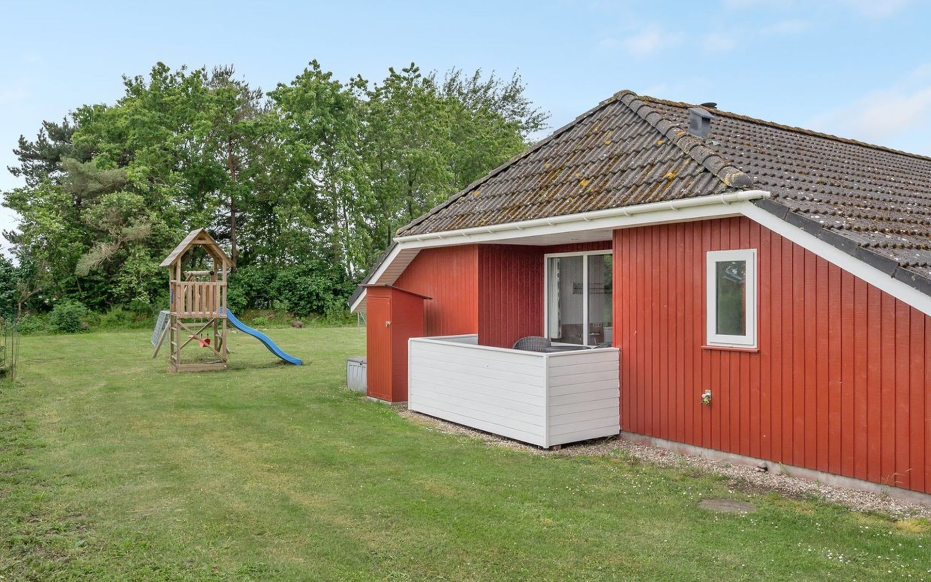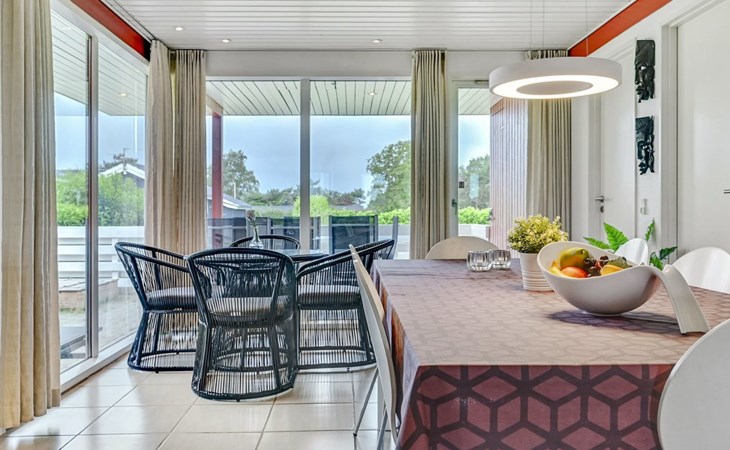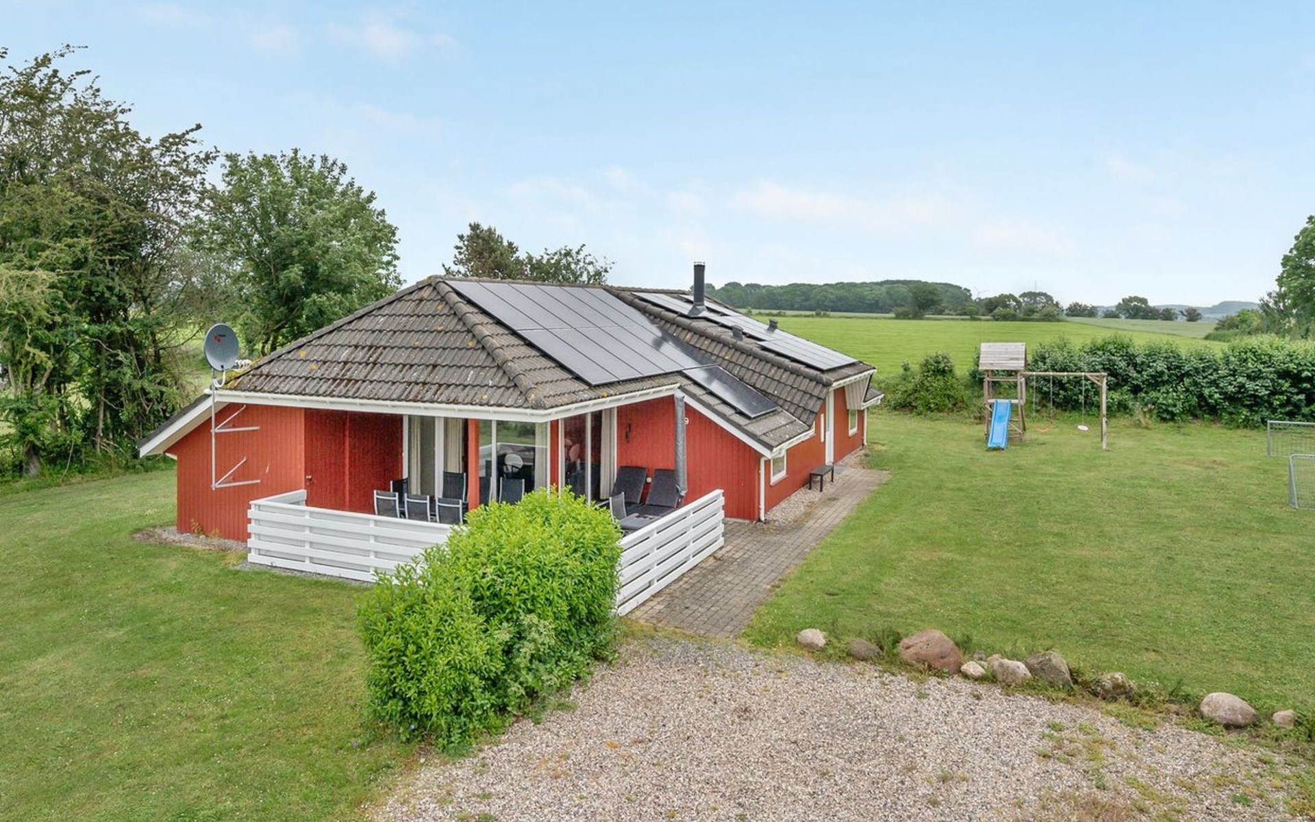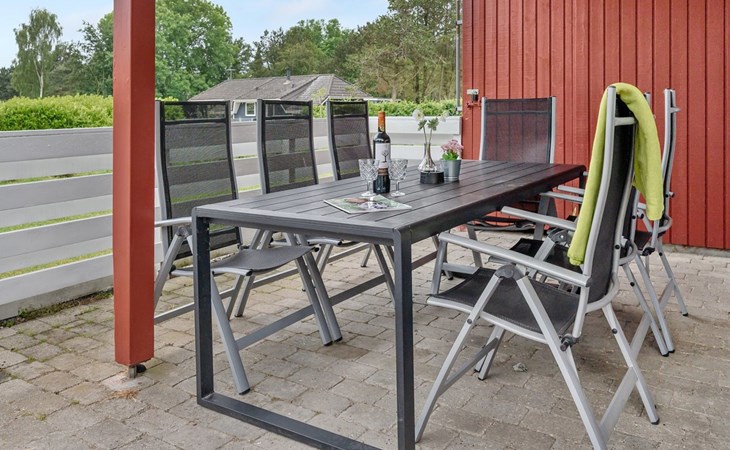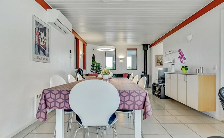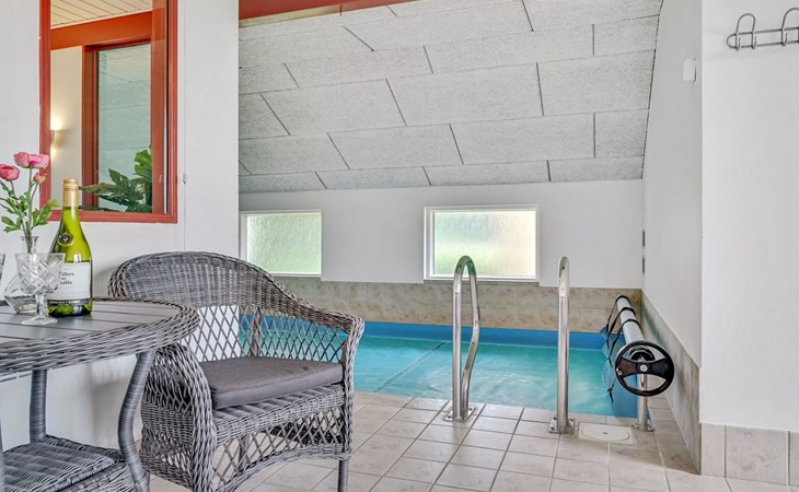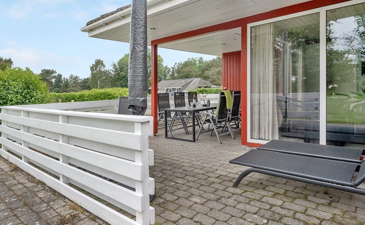 Eengezinswoning, bouwjaar 1998. 1.1 km van zee. Voor alleengebruik: terrein 1.397 m2, verzorgde tuin, overdekt zwembad (2 x 6 m, 15 m2, 140 - 140 cm diepte). Terras (29 m2), barbecue, kinderspeelplaats (glijbaan, schommel). In het huis: sauna, tafelvoetbal, wasmachine. Parkeerplaats bij het huis. Levensmiddelenwinkel 1.9 km. Golfterrein 6.5 km. De eigenaar accepteert geen jeugdgroepen.