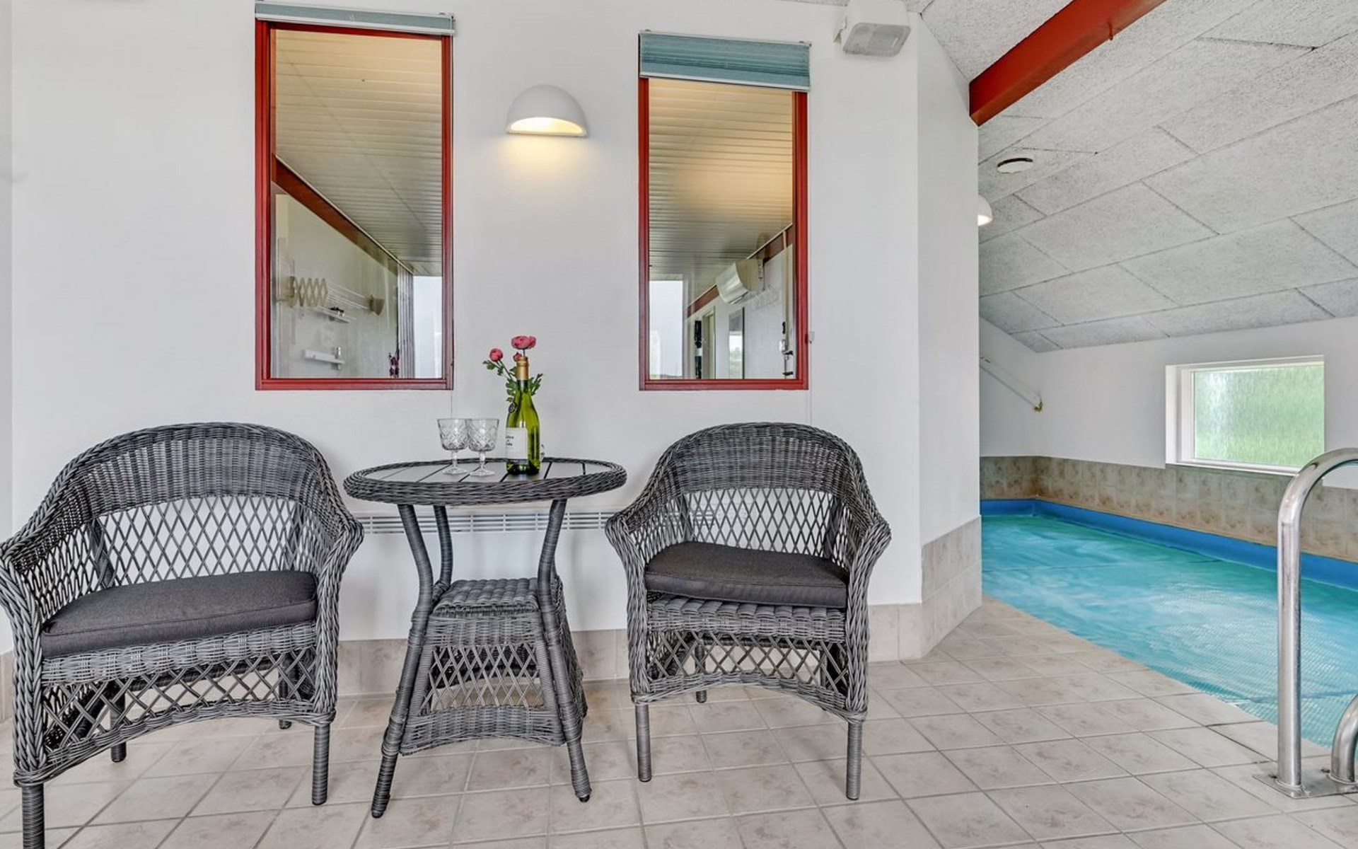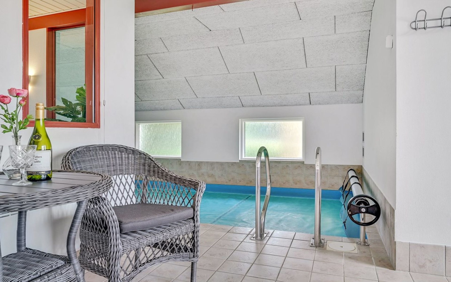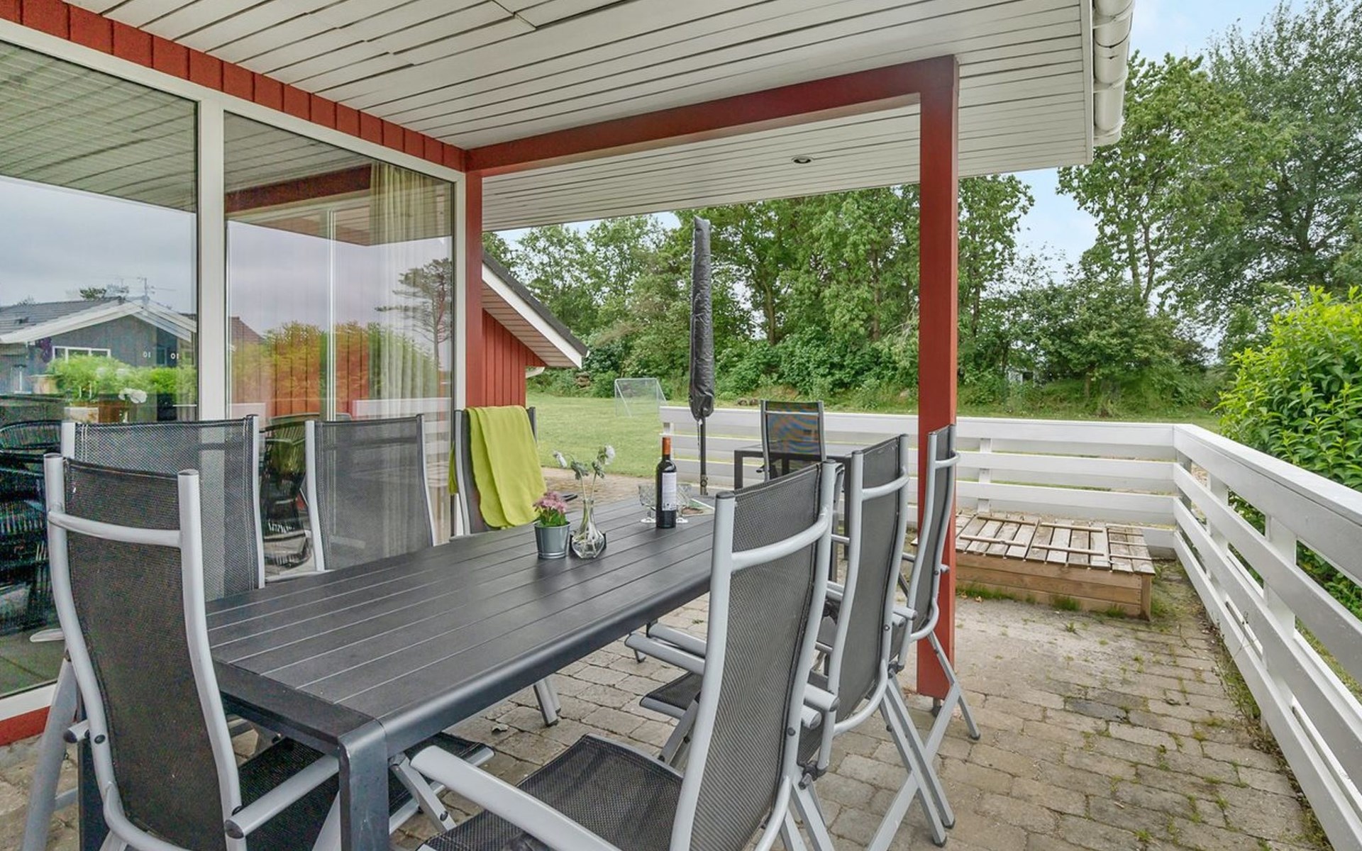 Eengezinswoning, bouwjaar 1998. 1.1 km van zee. Voor alleengebruik: terrein 1.397 m2, verzorgde tuin, overdekt zwembad (2 x 6 m, 15 m2, 140 - 140 cm diepte). Terras (29 m2), barbecue, kinderspeelplaats (glijbaan, schommel). In het huis: sauna, tafelvoetbal, wasmachine. Parkeerplaats bij het huis. Levensmiddelenwinkel 1.9 km. Golfterrein 6.5 km. De eigenaar accepteert geen jeugdgroepen.