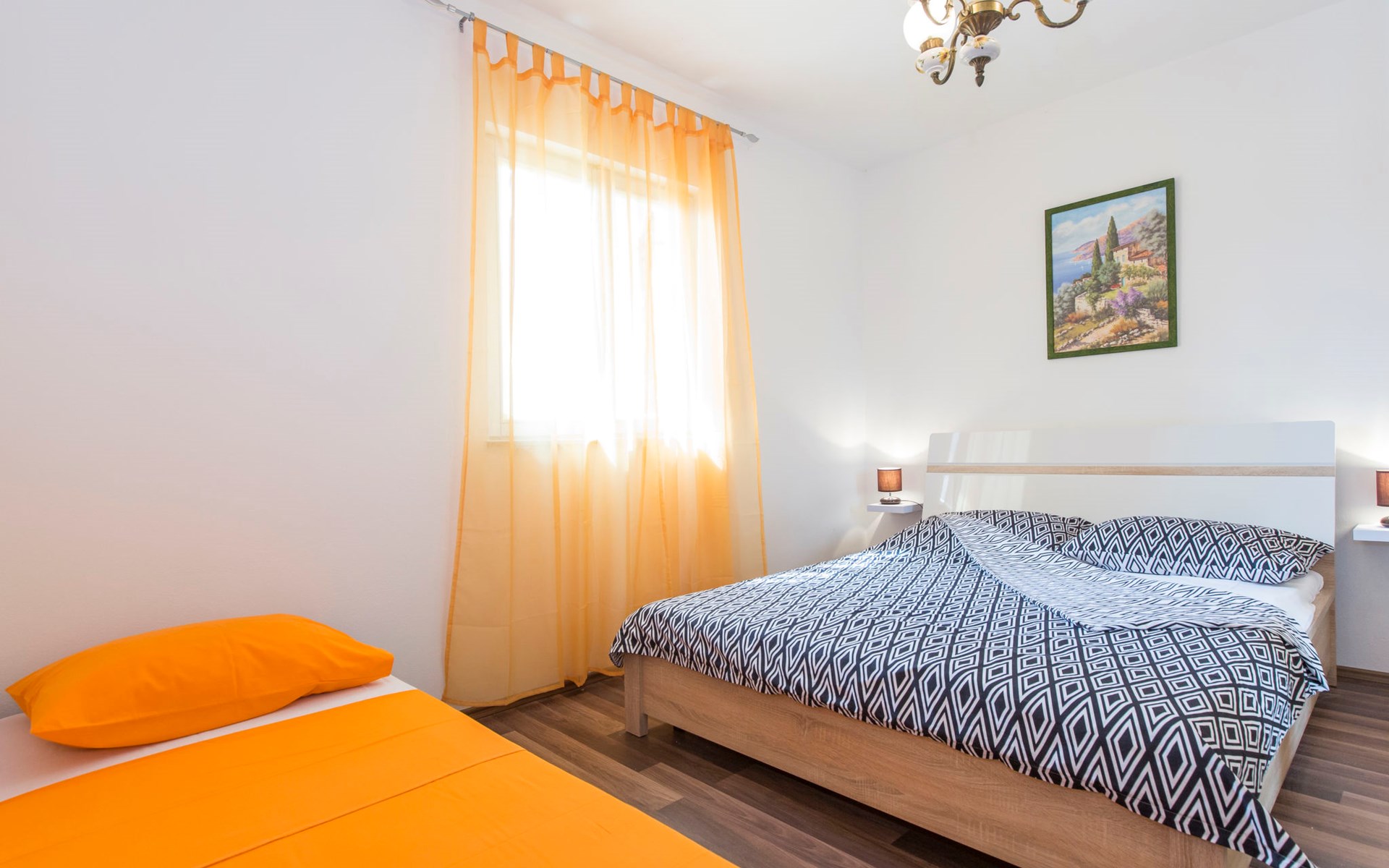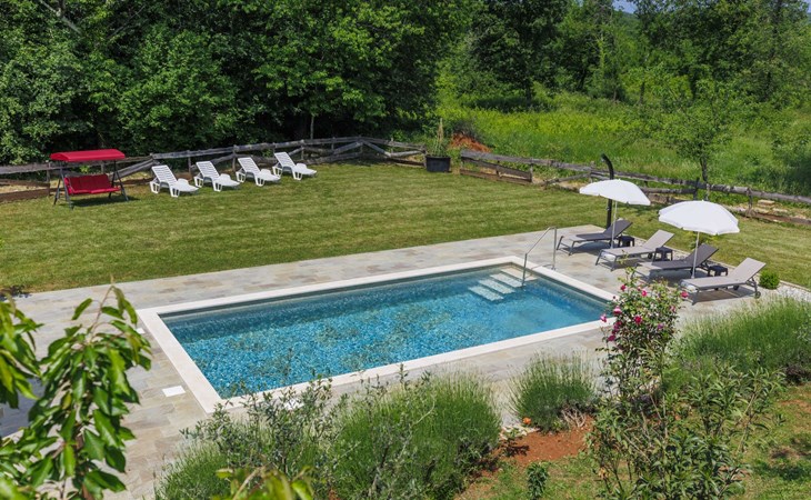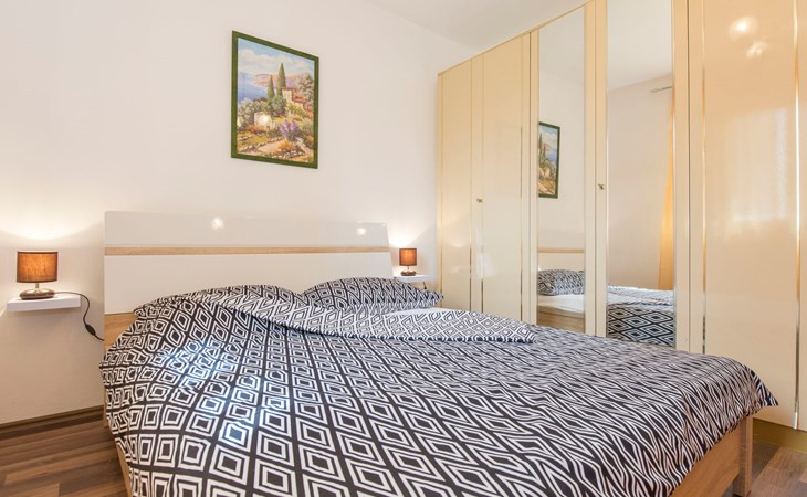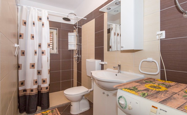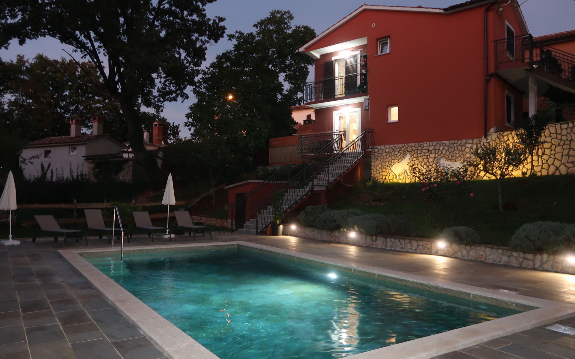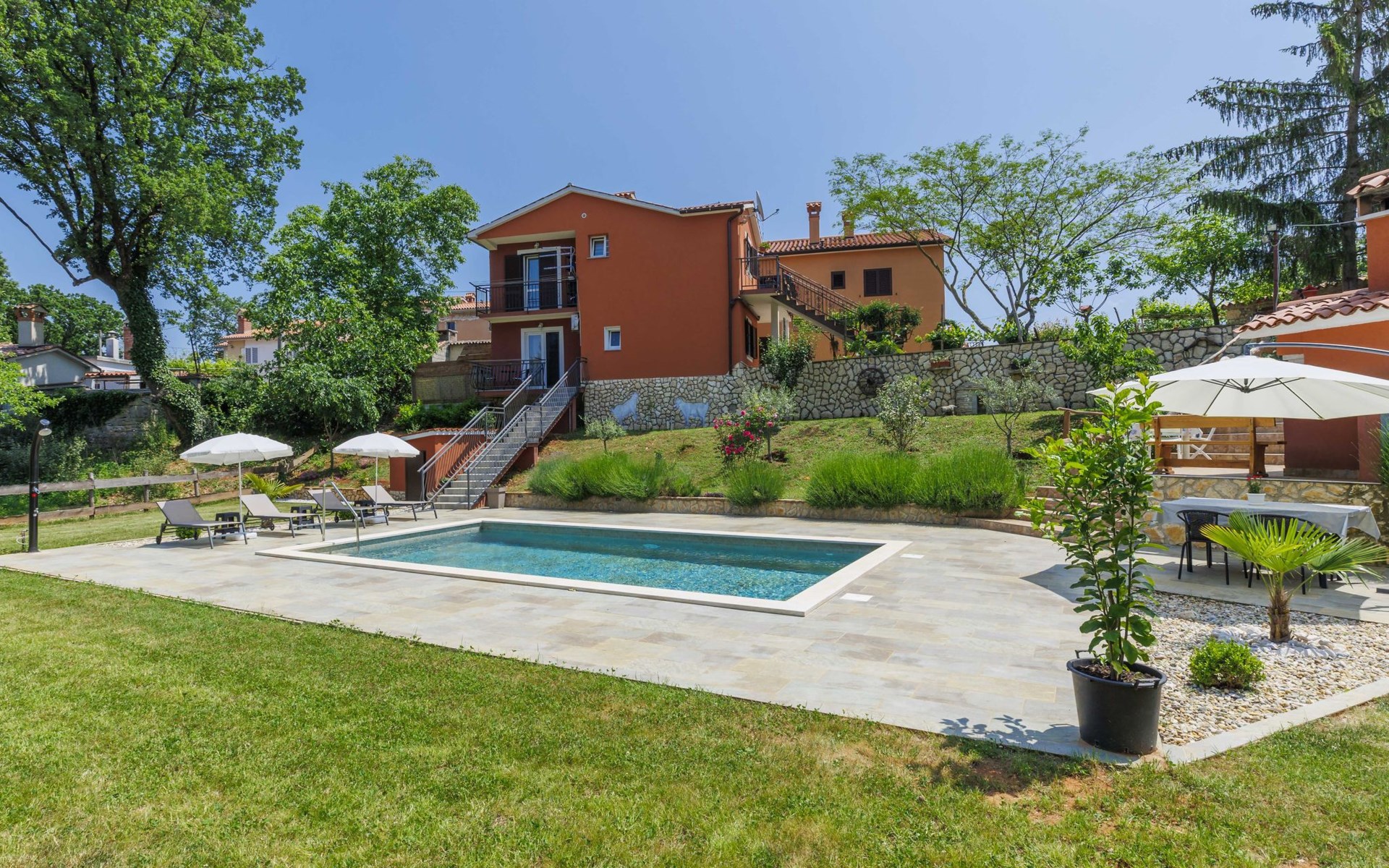 Huis met 3 woningen "Korina". In het gehucht Sveti Bartul, 4 km van het centrum van Labin, 9 km van zee. Voor alleengebruik: terrein 800 m2 met planten en bomen, openluchtzwembad hoekig (4 x 8 m, 135 cm diepte, seizoensgebonden beschikbaarheid: 04.Jun. - 08.Okt.) met trap. Buitendouche, terras, tuinmeubelen, barbecue (glijbaan, schommel), onderhoud zwembad door de eigenaar/tuinman. In het huis: internetaansluiting, trampoline. Parkeerplaats bij het huis op het terrein. Winkel 2.5 km, supermarkt 4 km, restaurant 4 km, bushalte 4 km, kiezelstrand 9 km. Vliegveld 45 km van het huis.
