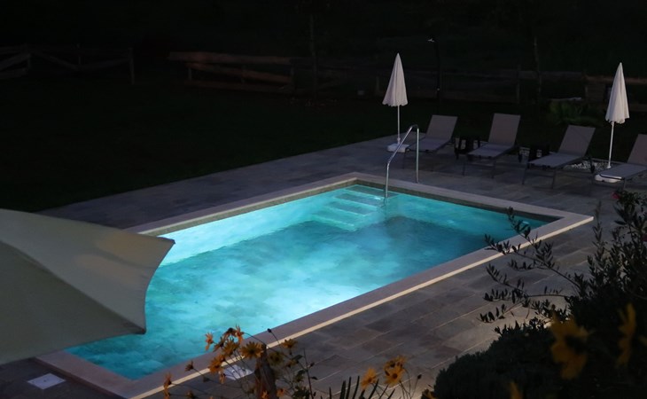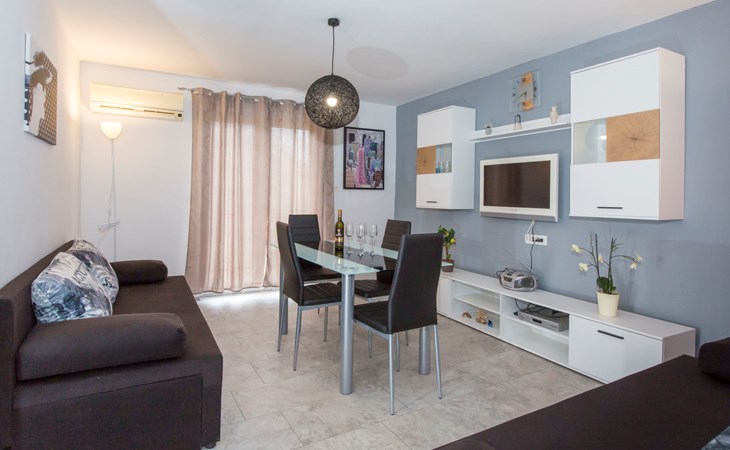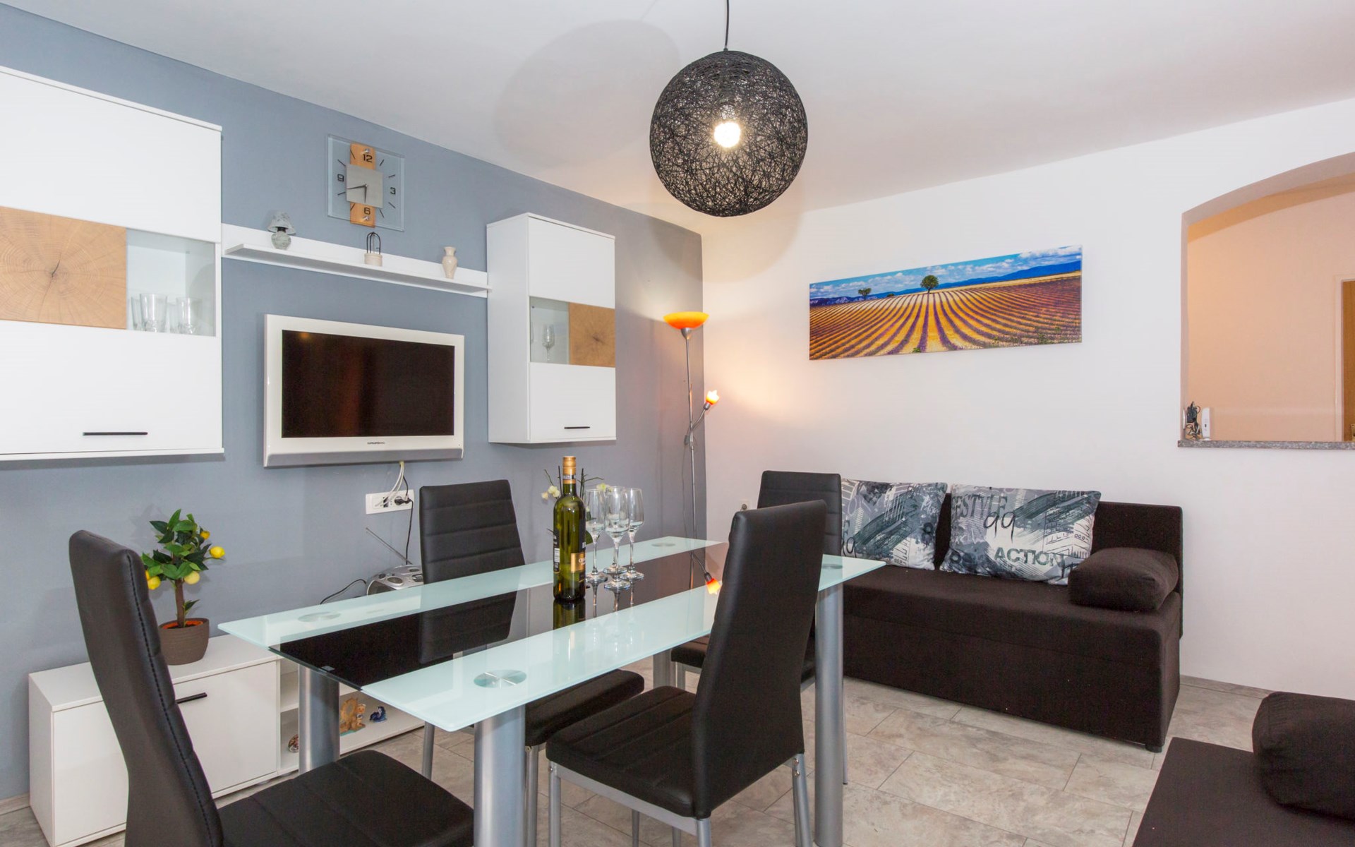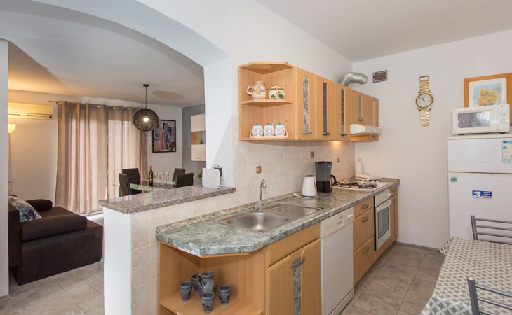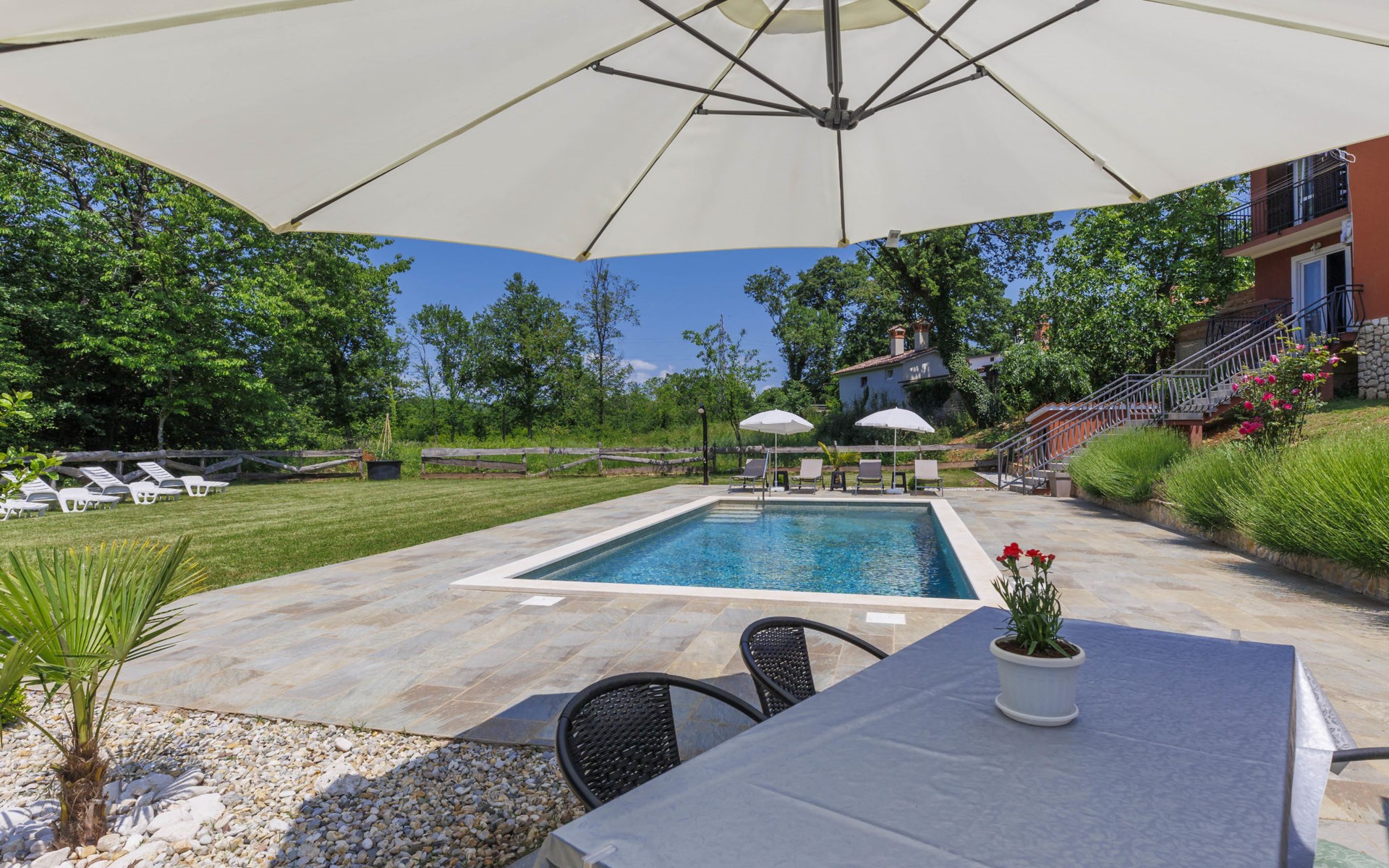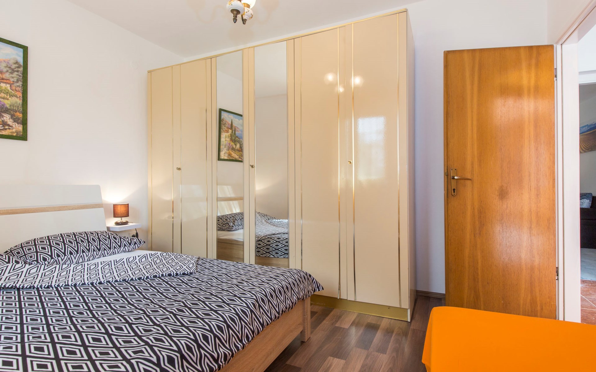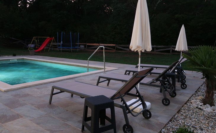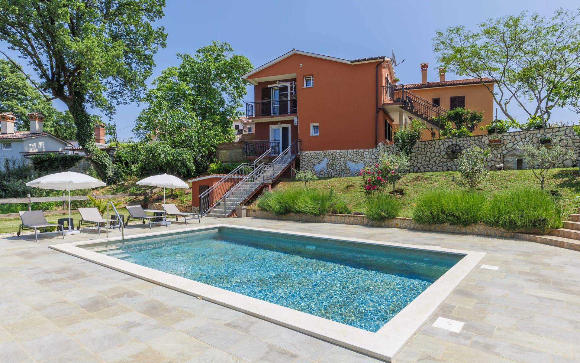 Huis met 3 woningen "Korina". In het gehucht Sveti Bartul, 4 km van het centrum van Labin, 9 km van zee. Voor alleengebruik: terrein 800 m2 met planten en bomen, openluchtzwembad hoekig (4 x 8 m, 135 cm diepte, seizoensgebonden beschikbaarheid: 04.Jun. - 08.Okt.) met trap. Buitendouche, terras, tuinmeubelen, barbecue (glijbaan, schommel), onderhoud zwembad door de eigenaar/tuinman. In het huis: internetaansluiting, trampoline. Parkeerplaats bij het huis op het terrein. Winkel 2.5 km, supermarkt 4 km, restaurant 4 km, bushalte 4 km, kiezelstrand 9 km. Vliegveld 45 km van het huis.
