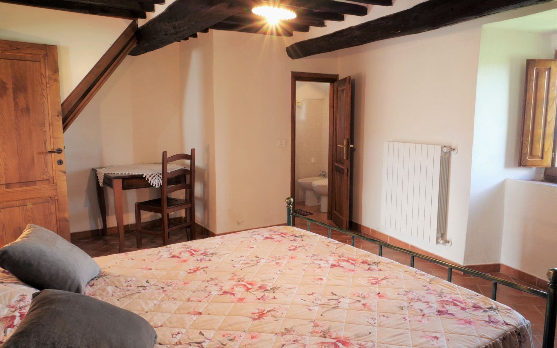 Rustieke, historisch landhuis "Borgo la Civitella", uit de 13e eeuw, omgeven door bomen en velden. 8 appartementen in de woning. 3.3 km van het centrum van Roccastrada, geïsoleerde, zonnige, verhoogde ligging, 40 km van zee. In het huis: wasmachine (voor medegebruik, extra). 600 m lange rommelige toegangsweg. Parkeerplaats op 50 m. Winkel 3.3 km, supermarkt 3.3 km, bushalte 1.5 km, treinstation "Roccastrada" 5 km, veerboot "Piombino" 66 km, meer Accesa 30 km. Jachthaven 44 km, golfterrein (18 holes) 41 km. Attracties in de buurt: Massa Marittima 30 km, Grosseto 35 km, Siena 55 km. Wandelgebied Mountain-bike 2 km. Auto noodzakelijk.