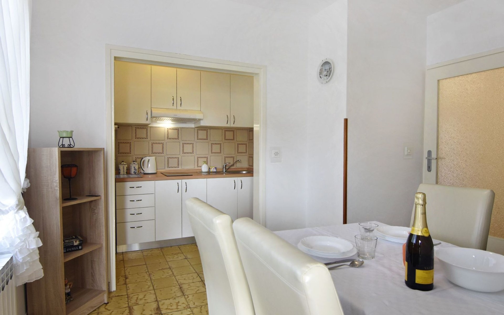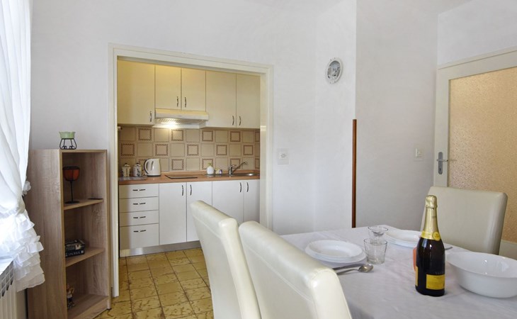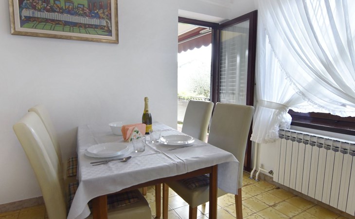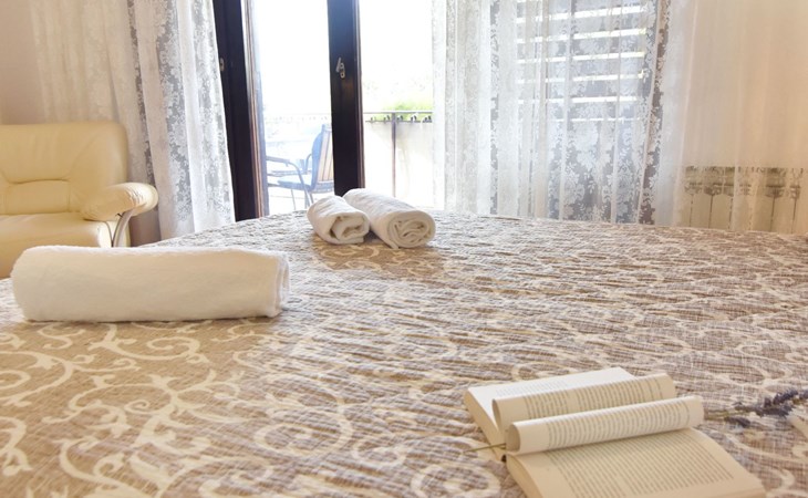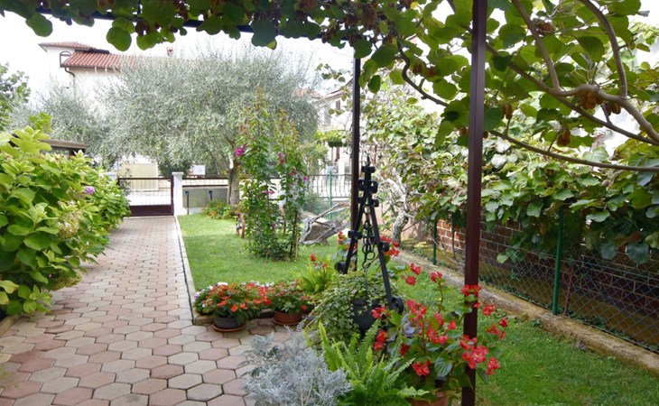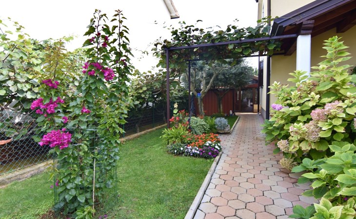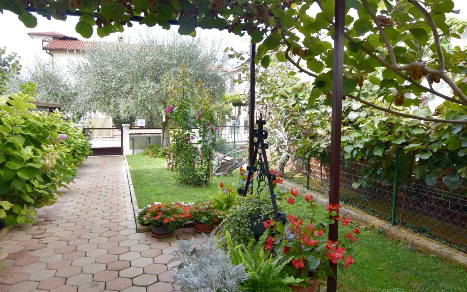 The Elizabeta apartment is on the ground floor of a family house in a quiet and sunny location. The strong point is the proximity to the supermarket (200 m), bar (100 m), restaurant, playground and city center, all within walking distance.The nearest beach is 1600 m away, while the seaside promenade is 800 m away.The fully furnished apartment is ideal for couples looking for comfort, privacy and relaxation.The property is fenced with a well-kept garden and offers two parking spaces in front of the house.The air-conditioned and comfortable apartment has a bedroom, a bathroom, a kitchen with a dining area and a balcony. The large room with double bed (160x200), bedside table with night lamp, sofa, armchair, coffee table, wardrobe, flat screen satellite TV, free WiFi connection, bed linen available (changed weekly), exit to the balcony. The bathroom has a shower, sink with vanity unit and mirror, bidet, hair dryer, two bath towels per person (changed weekly) and toilet. The kitchen is equipped with a refrigerator, two ceramic hobs, microwave, toaster, kettle, coffee machine, mocha, plates, cutlery, glasses and pots, dining table and chairs, exit to the balcony with a garden table with two chairs, awning, overlooking the garden and the street .Komunela-UmagThe neighborhood is quiet and sunny and consists of private houses adorned with well-kept gardens full of flowers and plants and some buildings. The area has a large park with games for children and teenagers, free outdoor fitness equipment and a beautiful lawn. In the area you will find the convenient Ultra supermarket with adjacent bar, other shops, bank, pharmacy, two wine bars, the Paganini Casino, cheap restaurants. This neighborhood is an excellent choice for those who love tranquility and comfort, given its proximity to the center and the coast. To reach the beaches, a car or a bicycle is recommended.The center of Umag can be easily reached on foot in a few minutes.* Pets are not allowed.* Smoking is allowed on the terrace or outside while smoking inside is not allowed.* We ask our guests:- to respect the neighbors and behave quietly and discreetly, especially at night or during the afternoon rest,- to turn off the air conditioning for safety reasons when I am not in the accommodation,- to use the equipment of the accommodation with care,- leave the bins empty and wash the cutlery and kitchen utensils used,- notify the owner of any damage caused, which the owner will request in cash after a precise assessment of the damage before departure,- One day before departure, indicate the expected departure time in order to arrange key collection.* The accommodation must be vacated by 10:00 am on the last day of the stay.* Individual transport is possible (example: airport accommodation, ...)