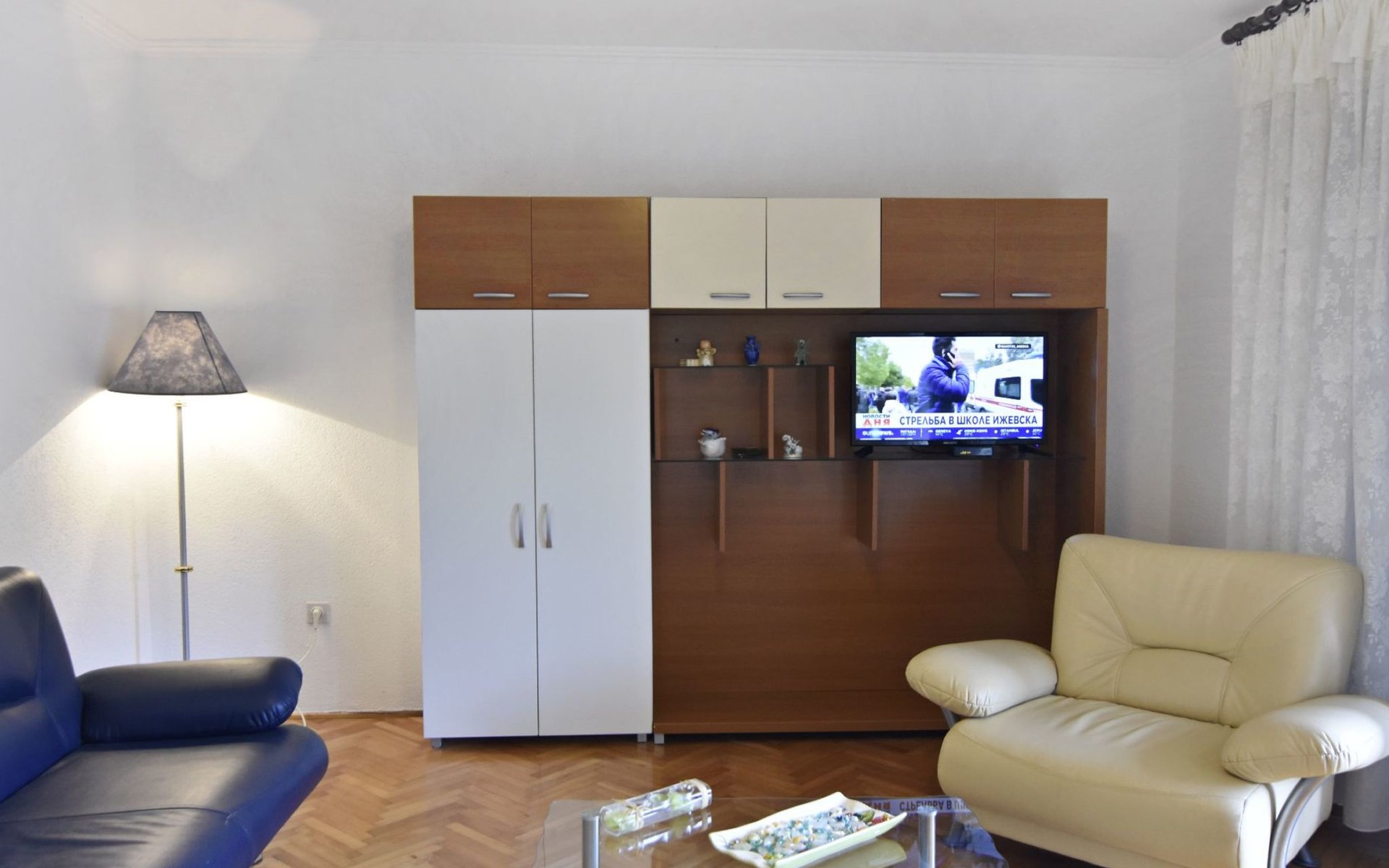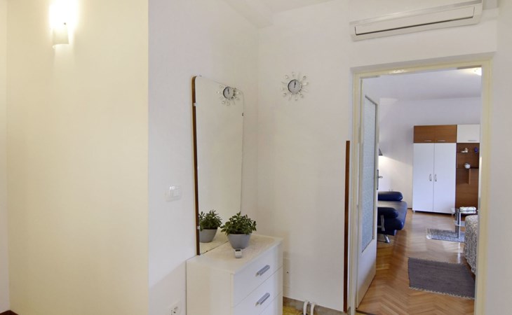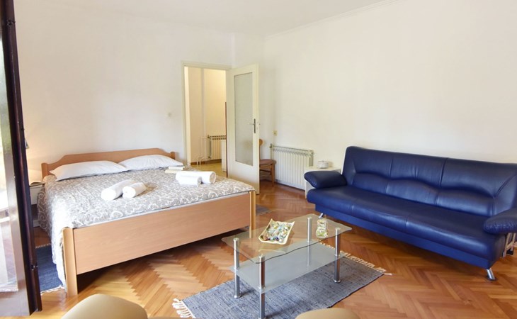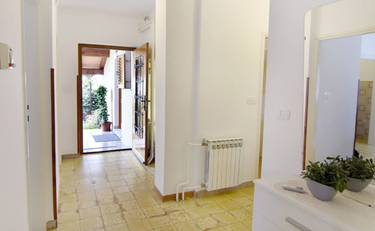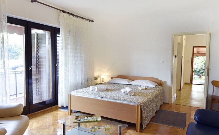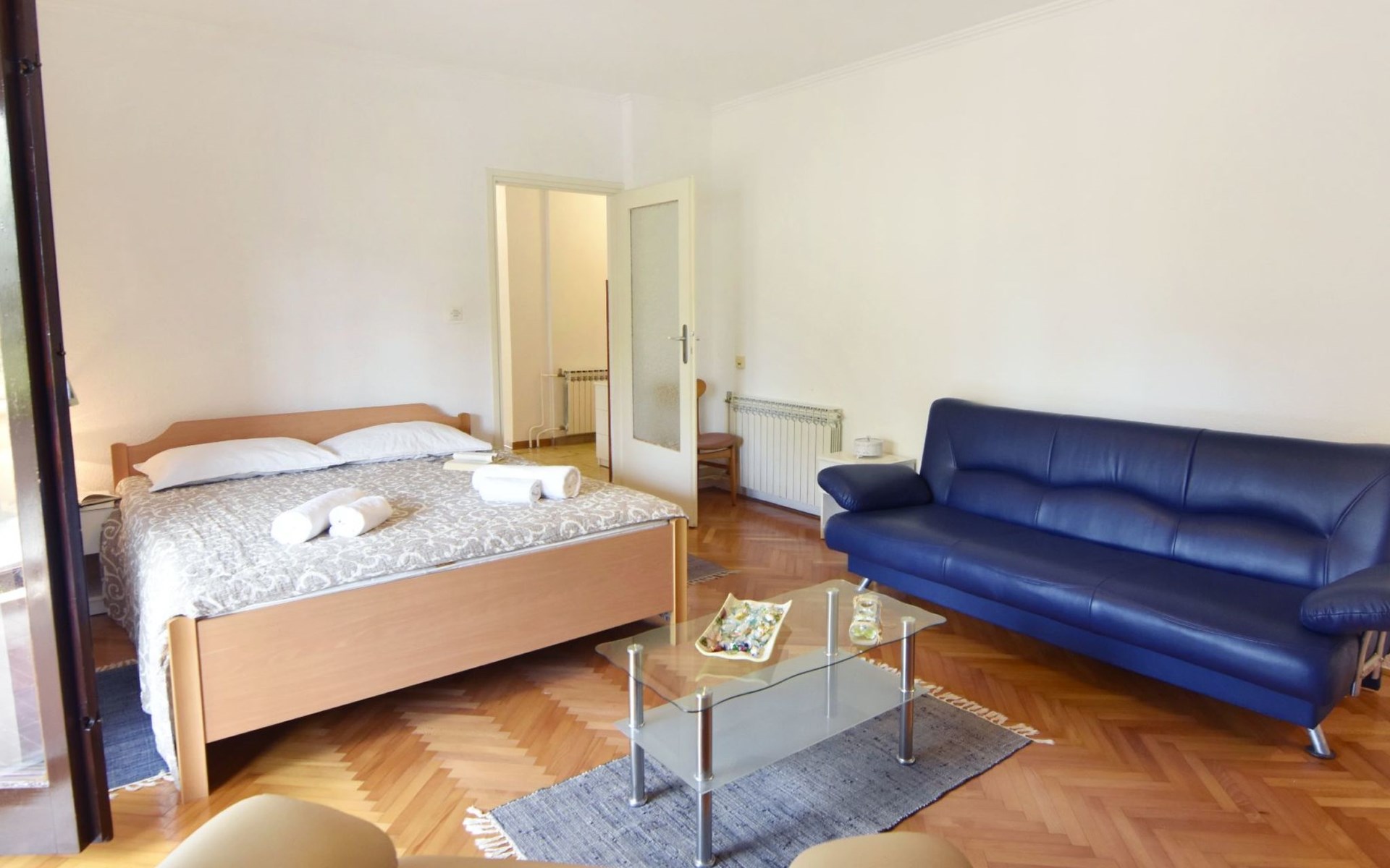 The Elizabeta apartment is on the ground floor of a family house in a quiet and sunny location. The strong point is the proximity to the supermarket (200 m), bar (100 m), restaurant, playground and city center, all within walking distance.The nearest beach is 1600 m away, while the seaside promenade is 800 m away.The fully furnished apartment is ideal for couples looking for comfort, privacy and relaxation.The property is fenced with a well-kept garden and offers two parking spaces in front of the house.The air-conditioned and comfortable apartment has a bedroom, a bathroom, a kitchen with a dining area and a balcony. The large room with double bed (160x200), bedside table with night lamp, sofa, armchair, coffee table, wardrobe, flat screen satellite TV, free WiFi connection, bed linen available (changed weekly), exit to the balcony. The bathroom has a shower, sink with vanity unit and mirror, bidet, hair dryer, two bath towels per person (changed weekly) and toilet. The kitchen is equipped with a refrigerator, two ceramic hobs, microwave, toaster, kettle, coffee machine, mocha, plates, cutlery, glasses and pots, dining table and chairs, exit to the balcony with a garden table with two chairs, awning, overlooking the garden and the street .Komunela-UmagThe neighborhood is quiet and sunny and consists of private houses adorned with well-kept gardens full of flowers and plants and some buildings. The area has a large park with games for children and teenagers, free outdoor fitness equipment and a beautiful lawn. In the area you will find the convenient Ultra supermarket with adjacent bar, other shops, bank, pharmacy, two wine bars, the Paganini Casino, cheap restaurants. This neighborhood is an excellent choice for those who love tranquility and comfort, given its proximity to the center and the coast. To reach the beaches, a car or a bicycle is recommended.The center of Umag can be easily reached on foot in a few minutes.* Pets are not allowed.* Smoking is allowed on the terrace or outside while smoking inside is not allowed.* We ask our guests:- to respect the neighbors and behave quietly and discreetly, especially at night or during the afternoon rest,- to turn off the air conditioning for safety reasons when I am not in the accommodation,- to use the equipment of the accommodation with care,- leave the bins empty and wash the cutlery and kitchen utensils used,- notify the owner of any damage caused, which the owner will request in cash after a precise assessment of the damage before departure,- One day before departure, indicate the expected departure time in order to arrange key collection.* The accommodation must be vacated by 10:00 am on the last day of the stay.* Individual transport is possible (example: airport accommodation, ...)