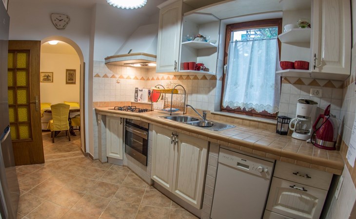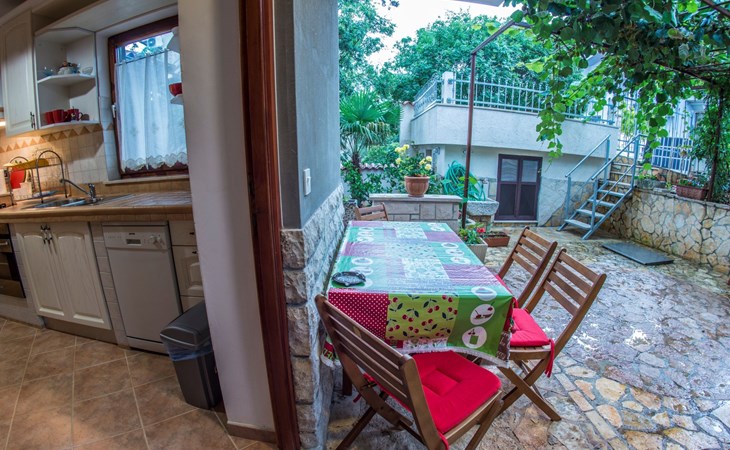 Within the apartment is prepared all for your great holidays in our villa. This includes all kinds of detergents for hygiene. Apartment is been cleaned with steam cleaner for better hygiene. In the price of apartment is included ventilation, wireless internet, bed linen (changed every 7 days), towels (3 pieces/person, changed every third day), tablecloths, dishtowels. In the apartment is a ironing board with iron and hair dryer. Laundry in agreement with the owner in separate part of the villa, that is equipped with a washing machine.