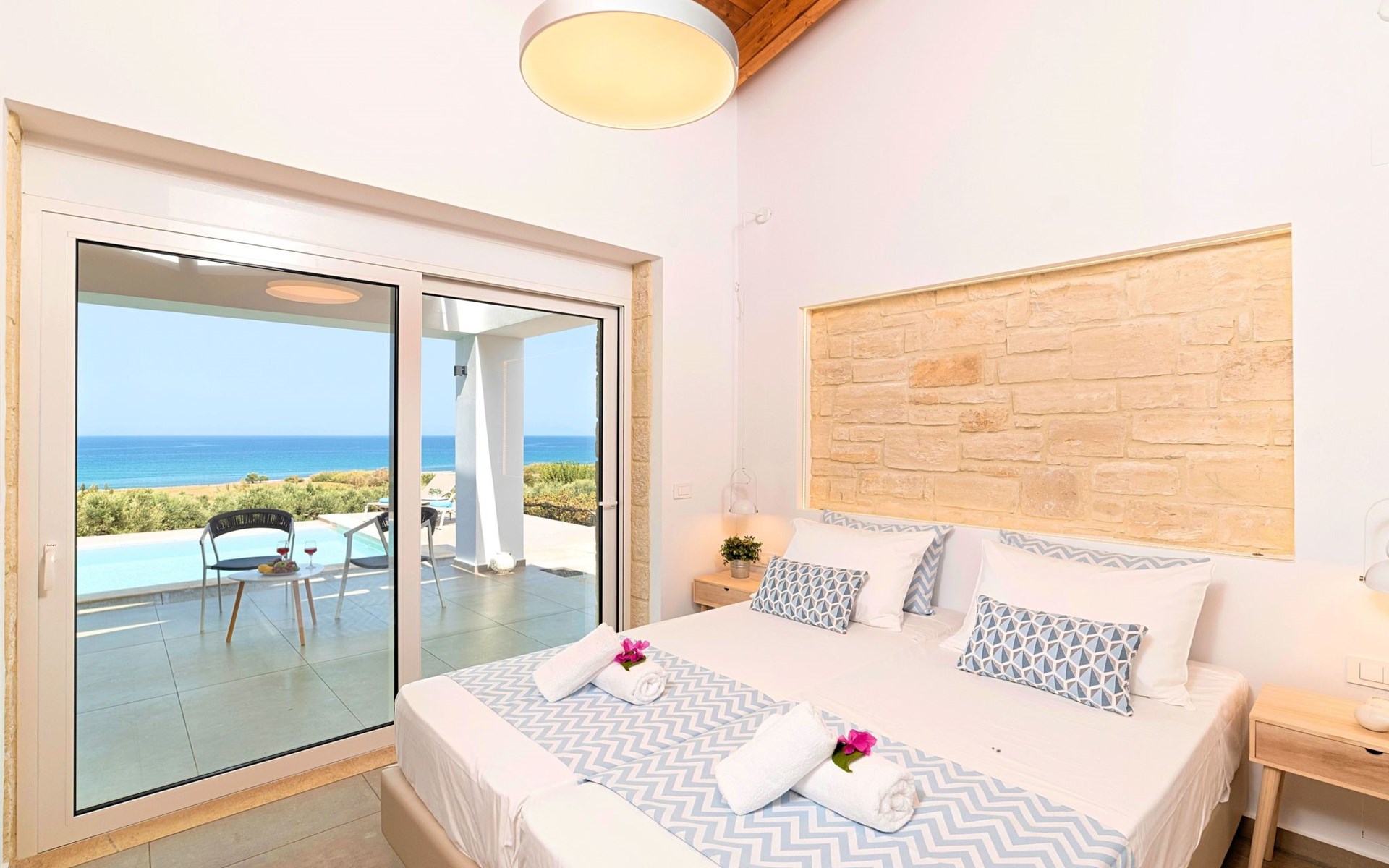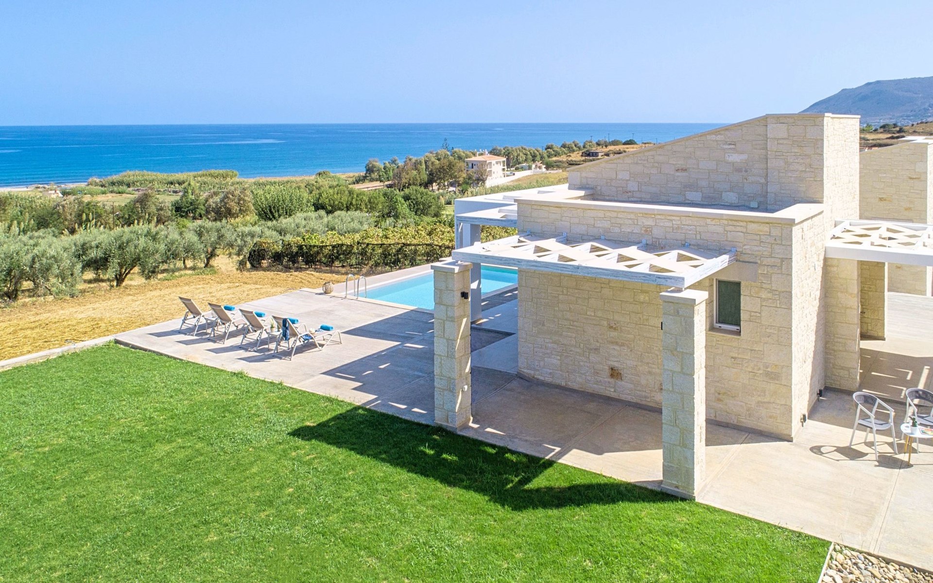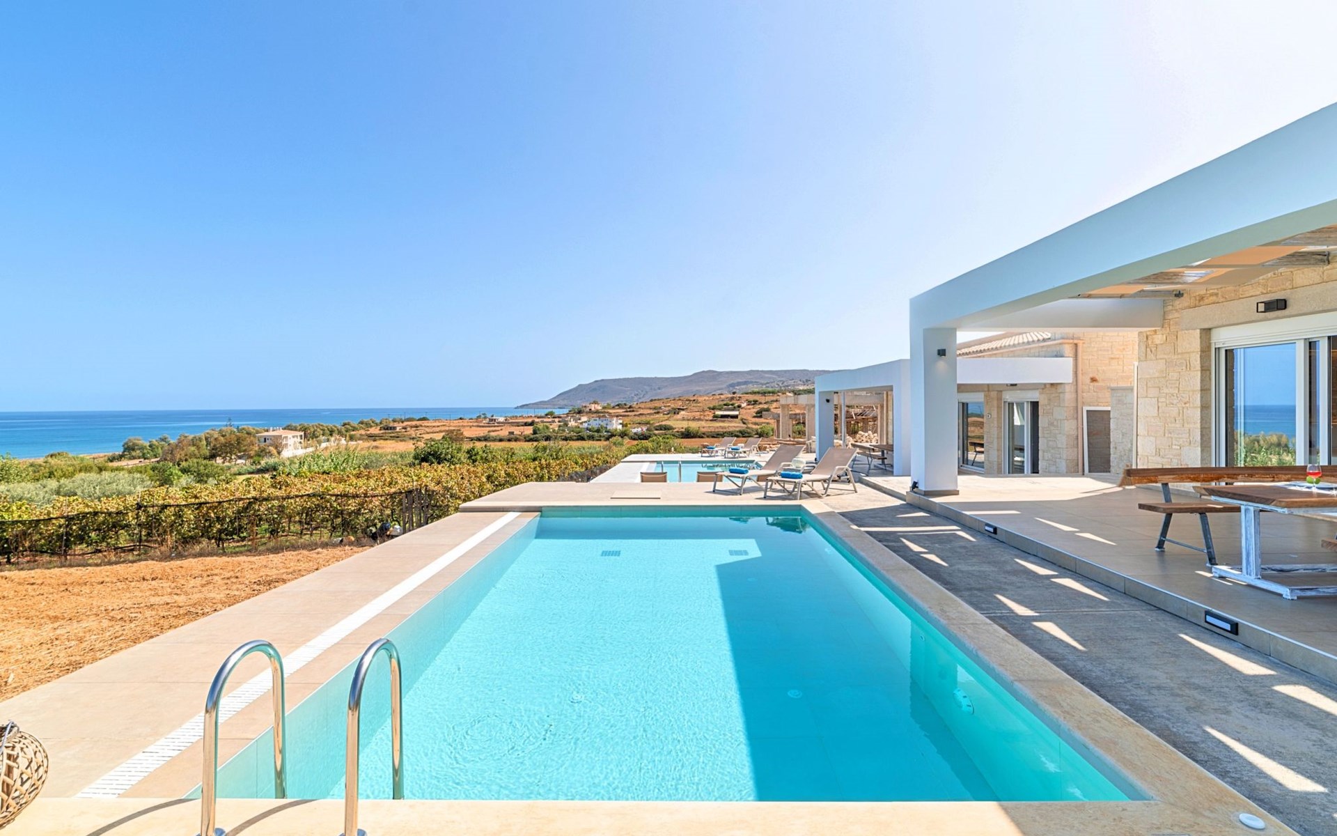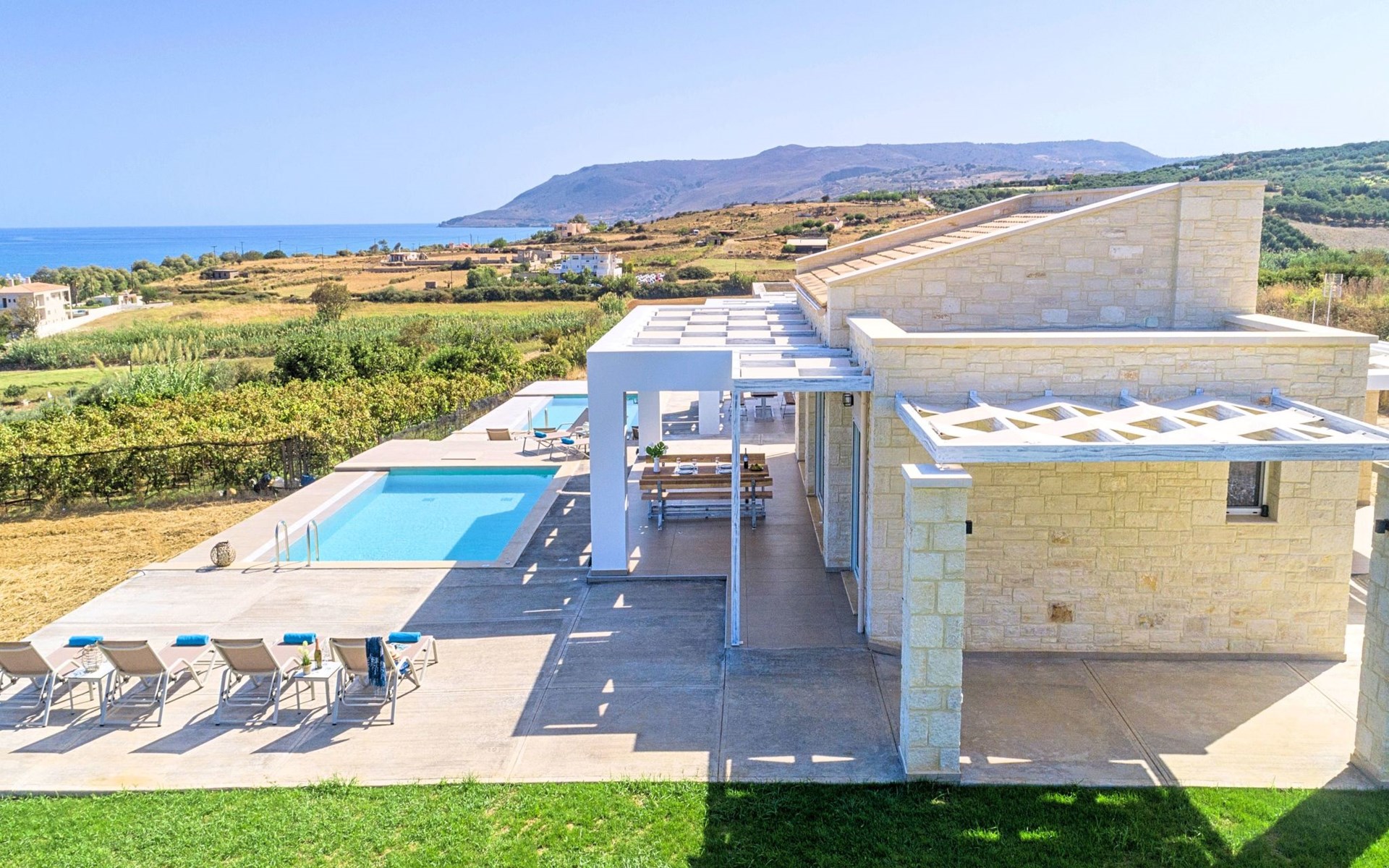 Built at the slopes of a hill, Vista Mare Villas offer the perfect summer getaway, all with infinity pools and breathtaking sea views. A delightful landscape of natural beauty, tranquil atmosphere, away from the crowds. Expect the impossible, a dreamy holiday in a secluded faraway location on Crete island, a pure summer bliss! Our Villas offers supreme comfort combined with style and unique Cretan hospitality. Complete with comfortable furniture, modern kitchen facilities, fully air-conditioned, with sea view oriented towards the Aegean Sea and Cretan renowned sunset. The brand-new Vista Mare Villas complex, consists of 4 elegant designed stone buildings, with private pool each, extended in a typical area of Crete’s mild landscape. Providing a unique Seaside location for our guests, surrounded by olive groves, combines the perfect blend of the natural environment, the traditional architecture with modern construction. Vista Mare Villas are ideal for families, a group of families or a group of friends. Enjoy your vacations with your parents or with the rest of your family members while at the same time preserving your privacy just like at your own home.● Private parking area. ● Direct access to the swimming pool area. ● Private Heated Swimming pool (The outdoor pool is heated and can reach 6 to 8 degrees more that the 24 h average air temperature with maximum value of 29°C). ● Swimming Pool cleaning twice per week ● Sun lounge area with sun beds. ● Portable BBQFacilities of each Villa ● A living-dining room with sofa (can accommodate two guests) with direct access to the pool area. ● Kitchen with an oven, a fridge, dishwasher, a coffee maker, tea facilities, a juicer, a toaster, and a dish set. ● A bedroom with a queen-size double bed, smart TV Set and private bathroom with shower. ● A second bedroom with two twin push together single beds ● A large bathroom with shower ● Smart large TV at the living room. ● Air-conditioning in all areas. ● Hair dryer. ● Linen and towels. ● Toiletries. ● Swimming pool towels. ● Baby cot. ● High chair for children. ● Housekeeping, towels and bed linen changed and cleaned every 3 or 4 days.Dramia is 30 km far from Chania and 10 km from Rethimnon. Distannce from The airport of Chania 40 km and Heraklion 100 km. Nearby Dramia you have one of the most beautiful sandy beaches of Crete, from Kavros to Georgiopoulis .In the season (April till October) Kavros (1 km) and Georgiopoulis (4 km) are nice places with a lot of tourists, mostly families and not interesting for club-lovers. In wintertime it is very quiet (usual shopping can be done), but Chania and Rethimnon are the places who are still alive. Also nearby is the famous lake of Kournas (the only sweet water lake of Crete), the mountain village Episkopi and Argiropolis, are also popular. In Dramia you will find the quietness and silence you are looking for and nice amusement you find close by. In Dramia you can leave the rat-race and enjoy an unique sunset.● Free WiFi internet access. ● Outdoor dining set (table with benches). ● Washing/dryer machine ● Iron and ironing board. ● Safe deposit box. 1247730