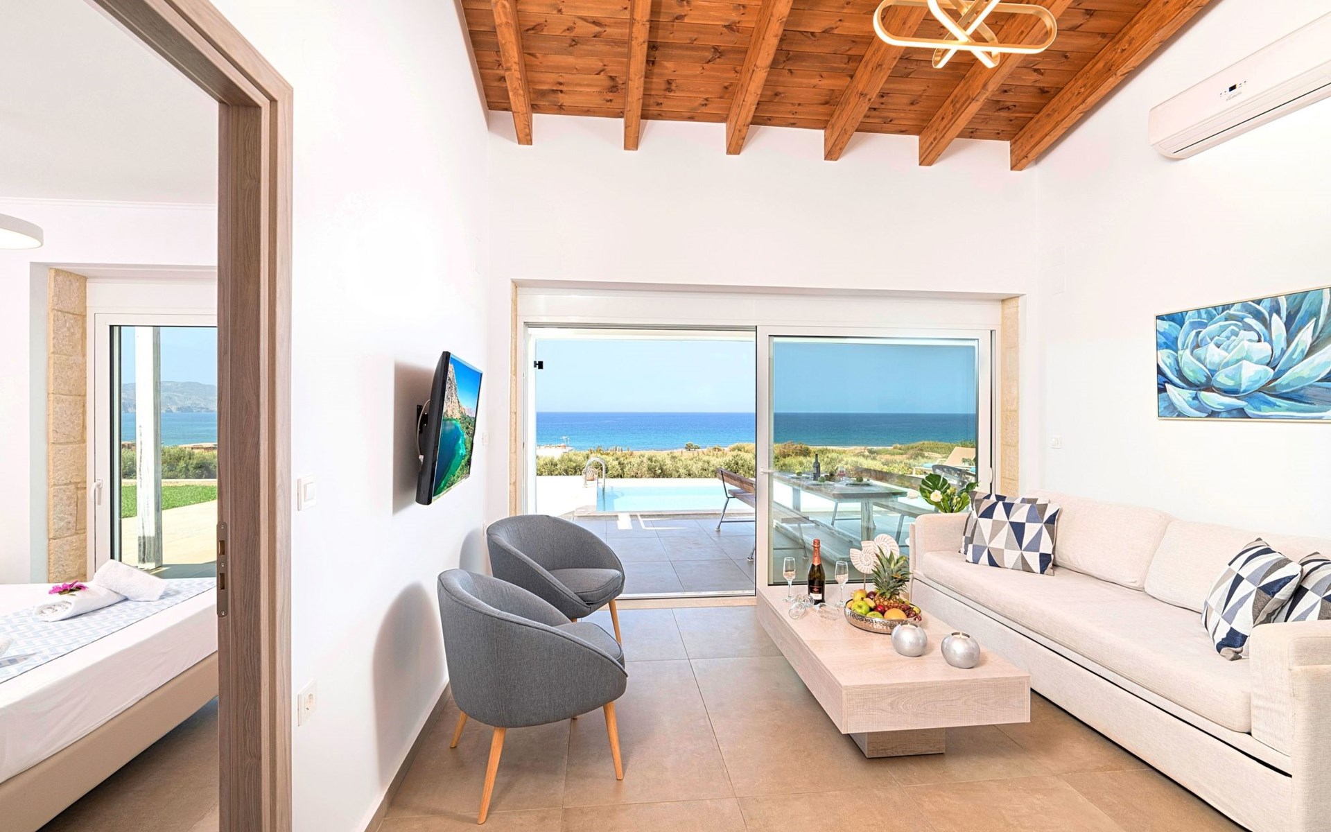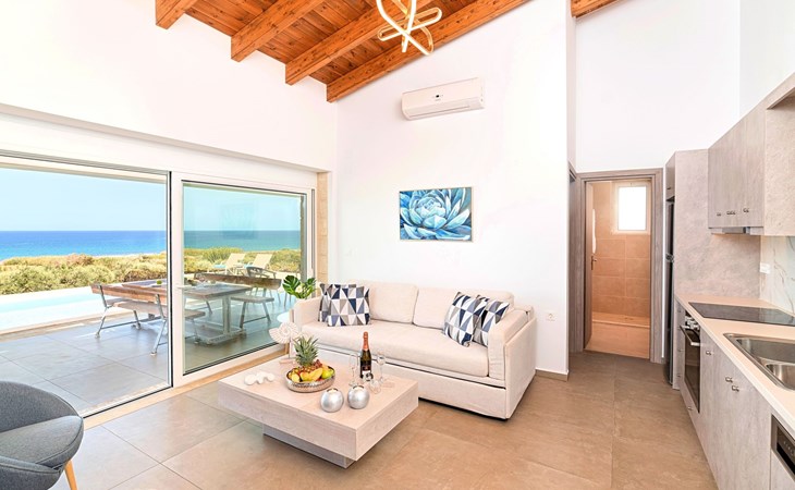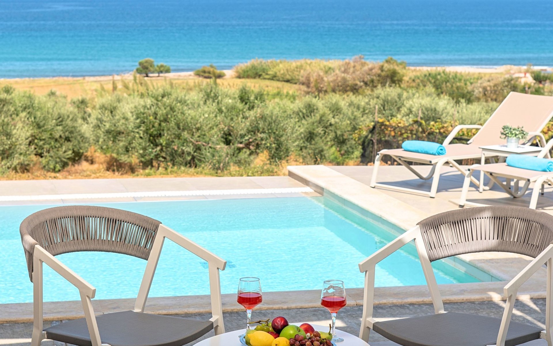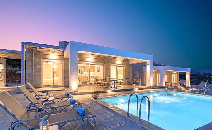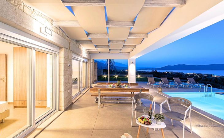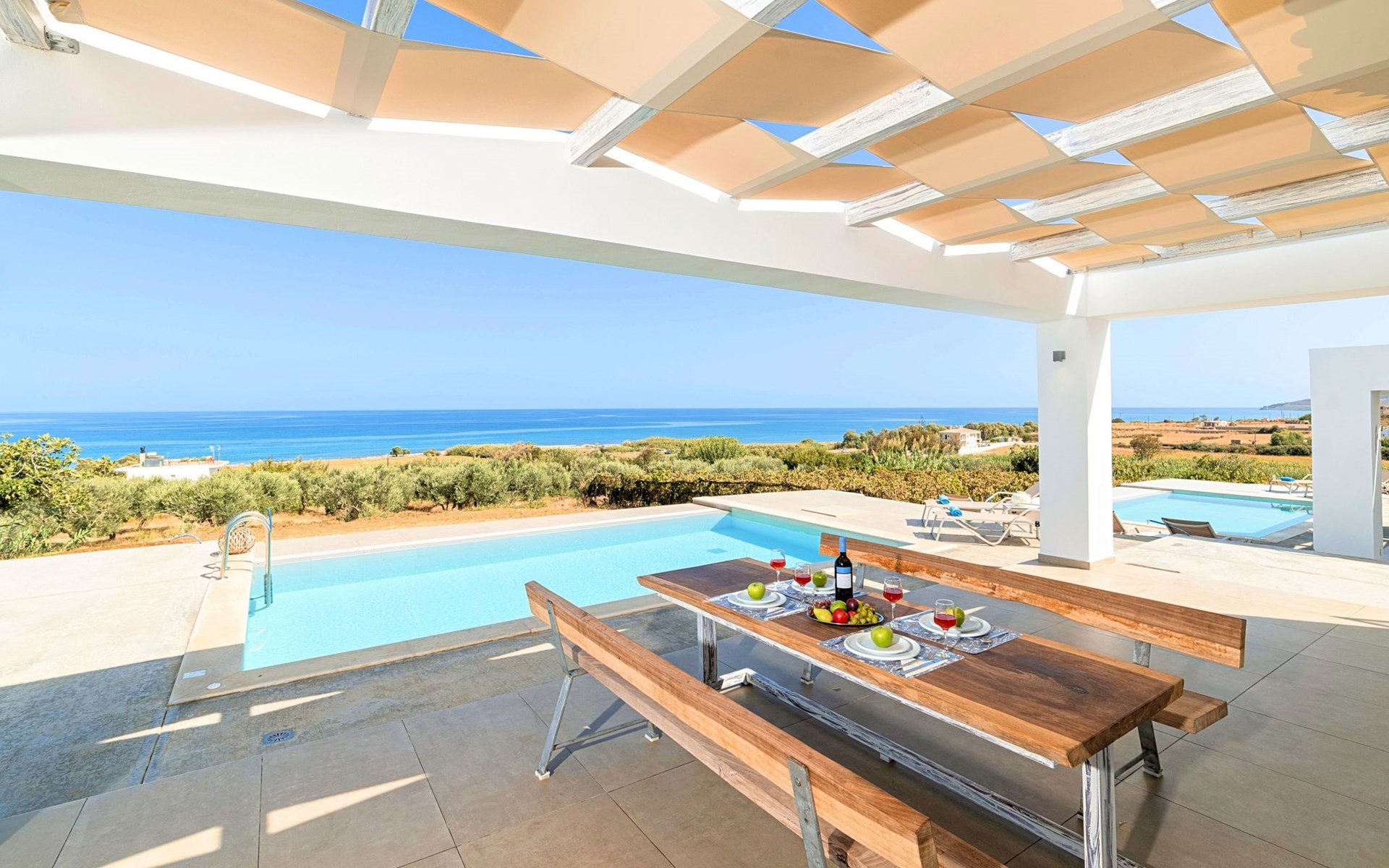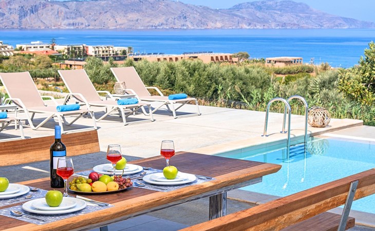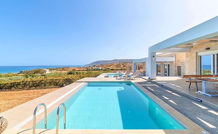 Built at the slopes of a hill, Vista Mare Villas offer the perfect summer getaway, all with infinity pools and breathtaking sea views. A delightful landscape of natural beauty, tranquil atmosphere, away from the crowds. Expect the impossible, a dreamy holiday in a secluded faraway location on Crete island, a pure summer bliss! Our Villas offers supreme comfort combined with style and unique Cretan hospitality. Complete with comfortable furniture, modern kitchen facilities, fully air-conditioned, with sea view oriented towards the Aegean Sea and Cretan renowned sunset. The brand-new Vista Mare Villas complex, consists of 4 elegant designed stone buildings, with private pool each, extended in a typical area of Crete’s mild landscape. Providing a unique Seaside location for our guests, surrounded by olive groves, combines the perfect blend of the natural environment, the traditional architecture with modern construction. Vista Mare Villas are ideal for families, a group of families or a group of friends. Enjoy your vacations with your parents or with the rest of your family members while at the same time preserving your privacy just like at your own home.● Private parking area. ● Direct access to the swimming pool area. ● Private Heated Swimming pool (The outdoor pool is heated and can reach 6 to 8 degrees more that the 24 h average air temperature with maximum value of 29°C). ● Swimming Pool cleaning twice per week ● Sun lounge area with sun beds. ● Portable BBQFacilities of each Villa ● A living-dining room with sofa (can accommodate two guests) with direct access to the pool area. ● Kitchen with an oven, a fridge, dishwasher, a coffee maker, tea facilities, a juicer, a toaster, and a dish set. ● A bedroom with a queen-size double bed, smart TV Set and private bathroom with shower. ● A second bedroom with two twin push together single beds ● A large bathroom with shower ● Smart large TV at the living room. ● Air-conditioning in all areas. ● Hair dryer. ● Linen and towels. ● Toiletries. ● Swimming pool towels. ● Baby cot. ● High chair for children. ● Housekeeping, towels and bed linen changed and cleaned every 3 or 4 days.Dramia is 30 km far from Chania and 10 km from Rethimnon. Distannce from The airport of Chania 40 km and Heraklion 100 km. Nearby Dramia you have one of the most beautiful sandy beaches of Crete, from Kavros to Georgiopoulis .In the season (April till October) Kavros (1 km) and Georgiopoulis (4 km) are nice places with a lot of tourists, mostly families and not interesting for club-lovers. In wintertime it is very quiet (usual shopping can be done), but Chania and Rethimnon are the places who are still alive. Also nearby is the famous lake of Kournas (the only sweet water lake of Crete), the mountain village Episkopi and Argiropolis, are also popular. In Dramia you will find the quietness and silence you are looking for and nice amusement you find close by. In Dramia you can leave the rat-race and enjoy an unique sunset.● Free WiFi internet access. ● Outdoor dining set (table with benches). ● Washing/dryer machine ● Iron and ironing board. ● Safe deposit box. 1247730