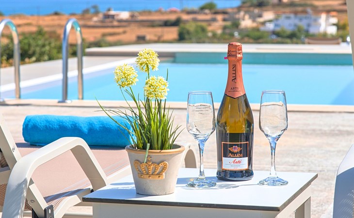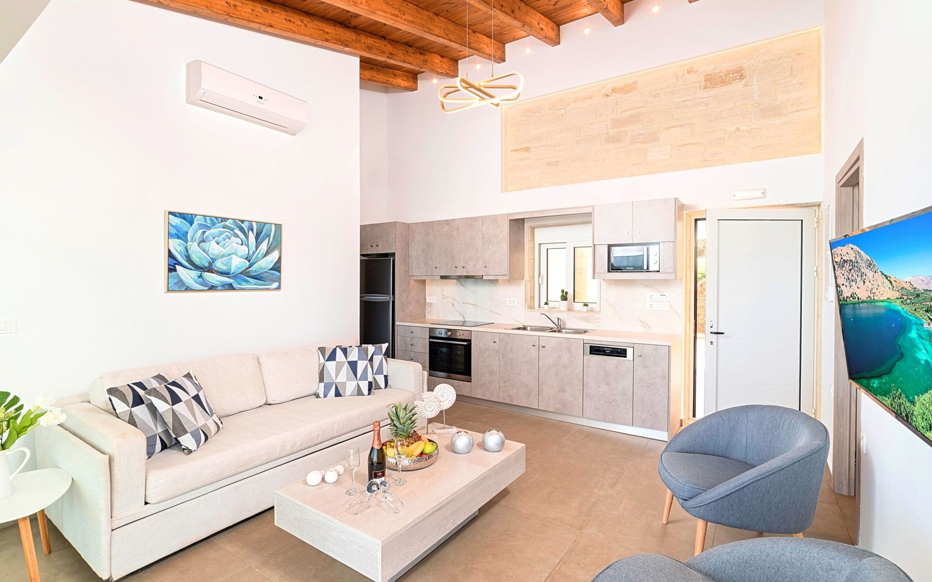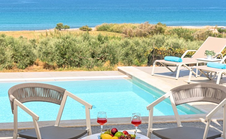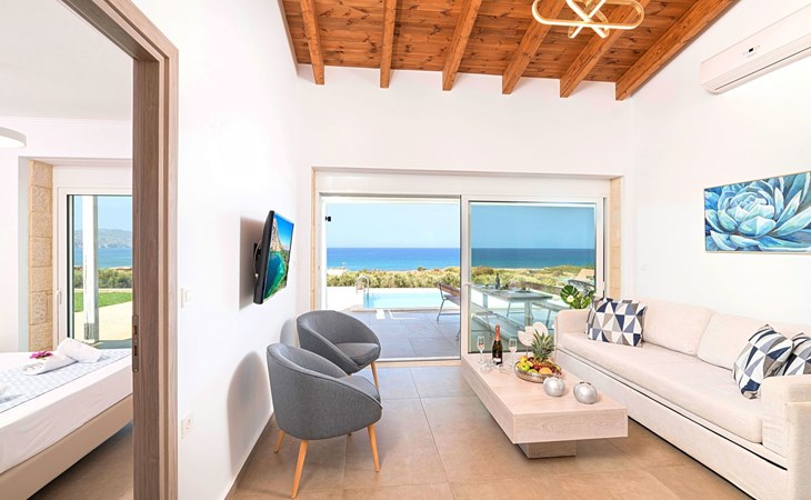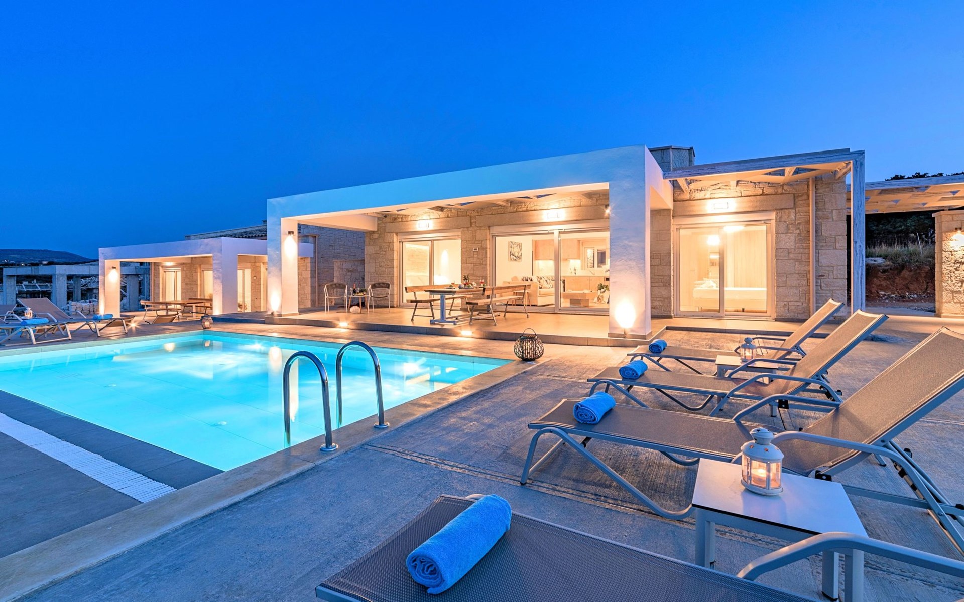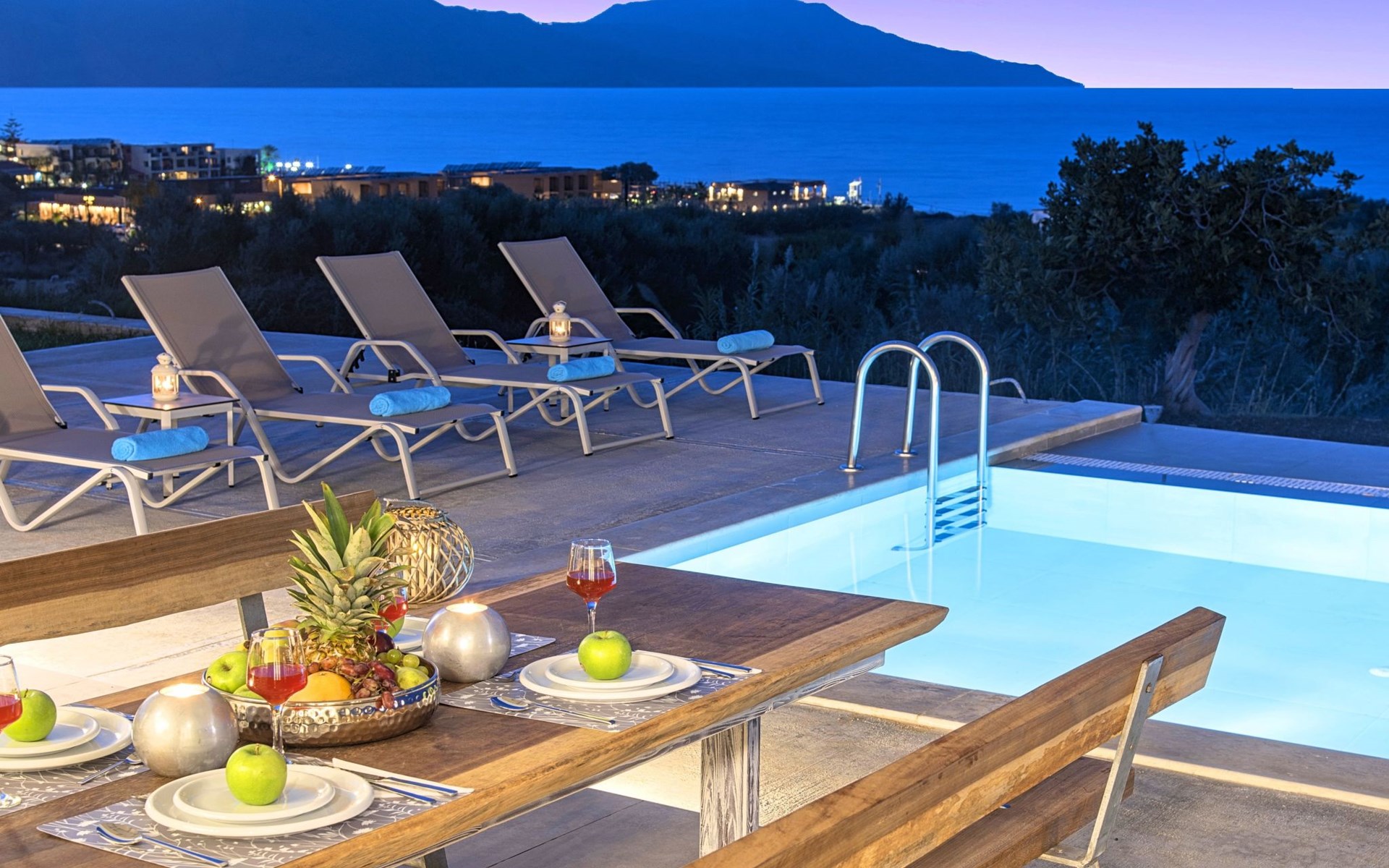Built at the slopes of a hill, Vista Mare Villas offer the perfect summer getaway, all with infinity pools and breathtaking sea views. A delightful landscape of natural beauty, tranquil atmosphere, away from the crowds. Expect the impossible, a dreamy holiday in a secluded faraway location on Crete island, a pure summer bliss! Our Villas offers supreme comfort combined with style and unique Cretan hospitality. Complete with comfortable furniture, modern kitchen facilities, fully air-conditioned, with sea view oriented towards the Aegean Sea and Cretan renowned sunset. The brand-new Vista Mare Villas complex, consists of 4 elegant designed stone buildings, with private pool each, extended in a typical area of Crete’s mild landscape. Providing a unique Seaside location for our guests, surrounded by olive groves, combines the perfect blend of the natural environment, the traditional architecture with modern construction. Vista Mare Villas are ideal for families, a group of families or a group of friends. Enjoy your vacations with your parents or with the rest of your family members while at the same time preserving your privacy just like at your own home.● Private parking area. ● Direct access to the swimming pool area. ● Private Heated Swimming pool (The outdoor pool is heated and can reach 6 to 8 degrees more that the 24 h average air temperature with maximum value of 29°C). ● Swimming Pool cleaning twice per week ● Sun lounge area with sun beds. ● Portable BBQFacilities of each Villa ● A living-dining room with sofa (can accommodate two guests) with direct access to the pool area. ● Kitchen with an oven, a fridge, dishwasher, a coffee maker, tea facilities, a juicer, a toaster, and a dish set. ● A bedroom with a queen-size double bed, smart TV Set and private bathroom with shower. ● A second bedroom with two twin push together single beds ● A large bathroom with shower ● Smart large TV at the living room. ● Air-conditioning in all areas. ● Hair dryer. ● Linen and towels. ● Toiletries. ● Swimming pool towels. ● Baby cot. ● High chair for children. ● Housekeeping, towels and bed linen changed and cleaned every 3 or 4 days.Dramia is 30 km far from Chania and 10 km from Rethimnon. Distannce from The airport of Chania 40 km and Heraklion 100 km. Nearby Dramia you have one of the most beautiful sandy beaches of Crete, from Kavros to Georgiopoulis .In the season (April till October) Kavros (1 km) and Georgiopoulis (4 km) are nice places with a lot of tourists, mostly families and not interesting for club-lovers. In wintertime it is very quiet (usual shopping can be done), but Chania and Rethimnon are the places who are still alive. Also nearby is the famous lake of Kournas (the only sweet water lake of Crete), the mountain village Episkopi and Argiropolis, are also popular. In Dramia you will find the quietness and silence you are looking for and nice amusement you find close by. In Dramia you can leave the rat-race and enjoy an unique sunset.● Free WiFi internet access. ● Outdoor dining set (table with benches). ● Washing/dryer machine ● Iron and ironing board. ● Safe deposit box. 1247730