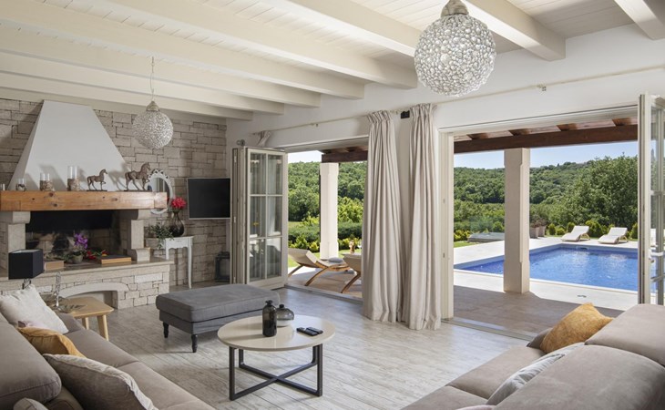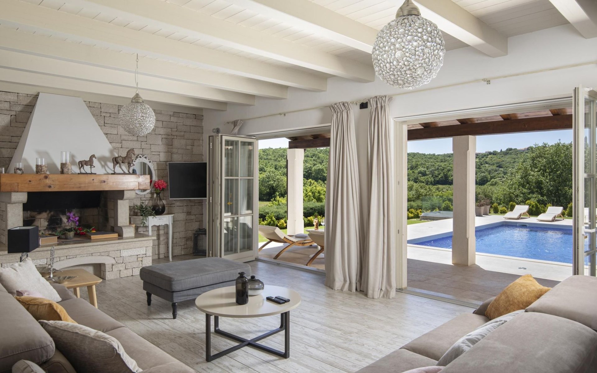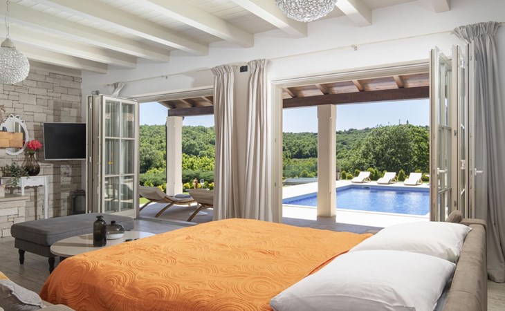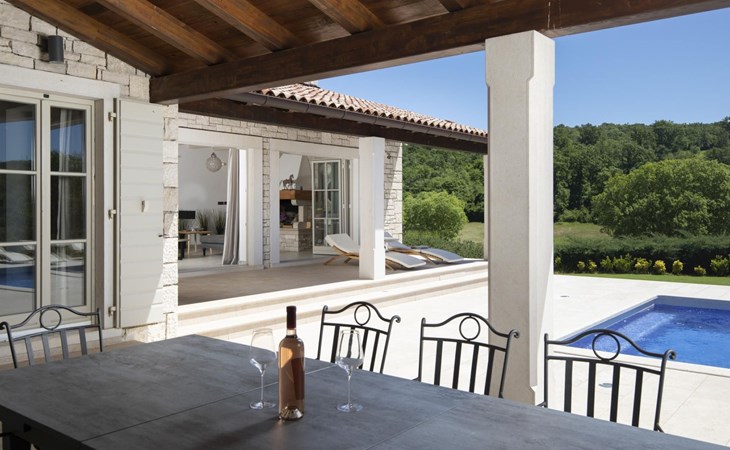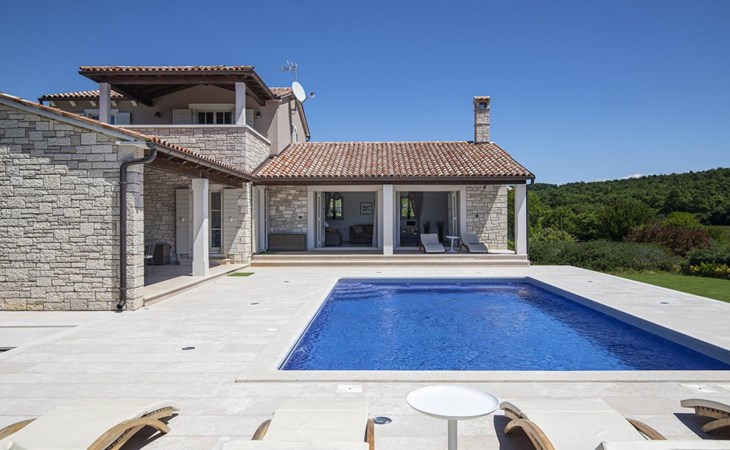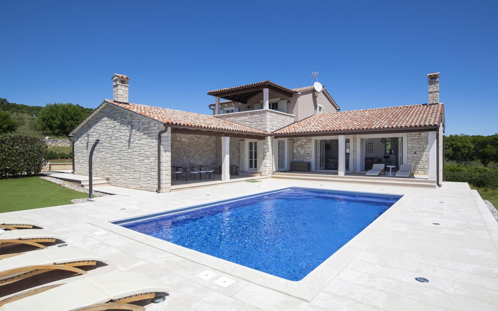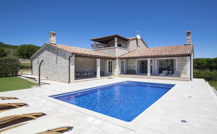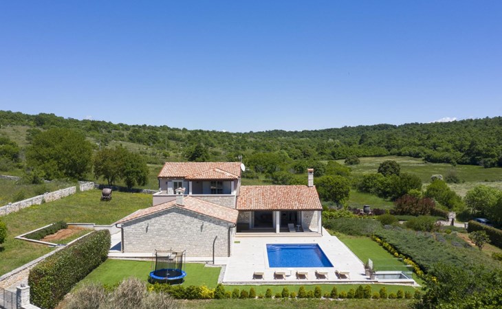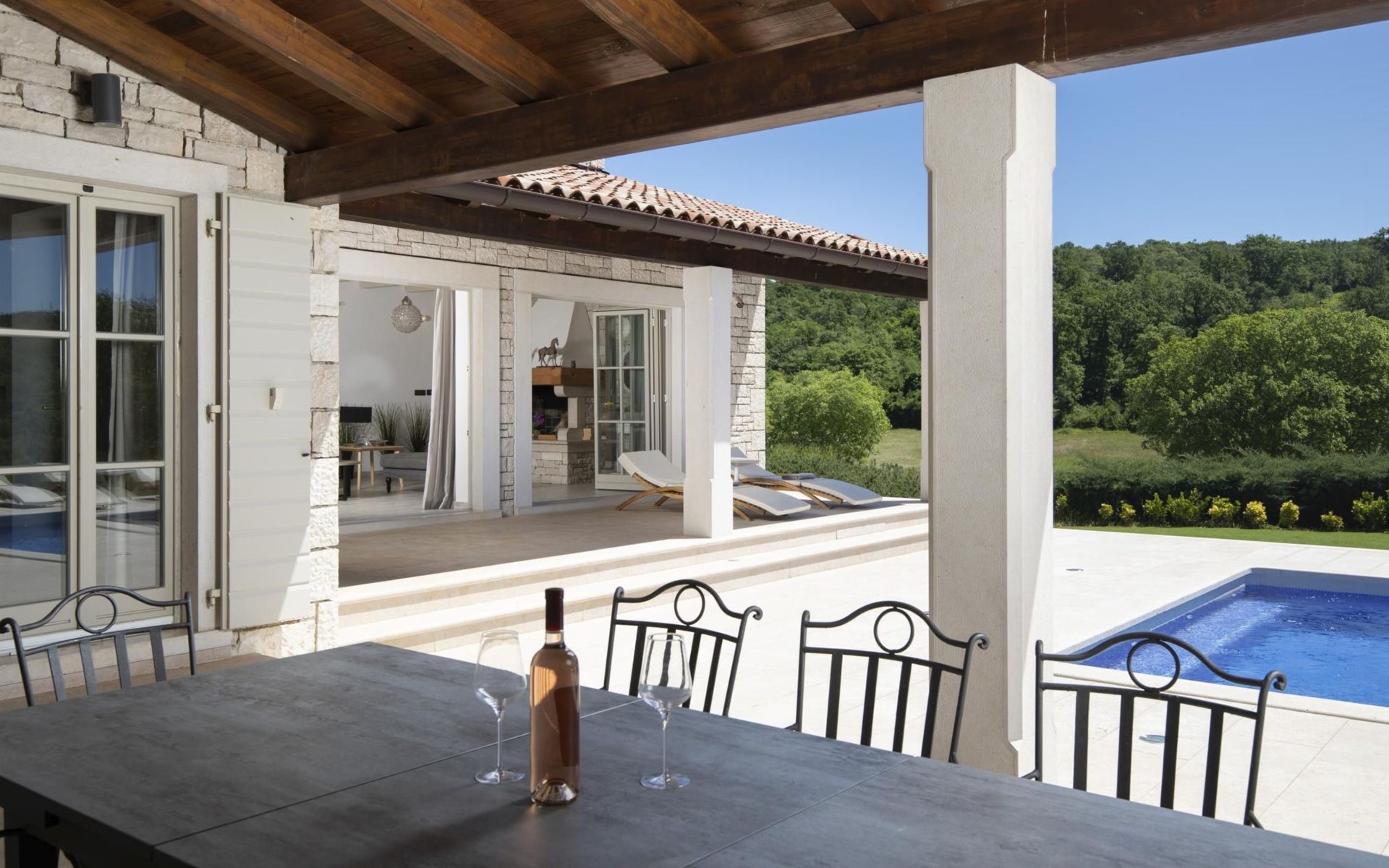 Heritage Villa Lilly is located in the quiet rural surroundings of Krnica, a luxury villa that offers unparalleled privacy and peace. The villa is surrounded by spacious landscapes with no neighboring houses, ensuring complete privacy for guests looking for a peaceful vacation.Heritage Villa Lilly covers an impressive 450 m2 and offers three bedrooms, each equipped with its own bathroom for maximum comfort and convenience.Inside the villa, there is a sophisticated atmosphere with a well-equipped living room overlooking the pool, a fully equipped kitchen, and an elegant dining room, where guests can gather and spend quality time together. Expansive windows throughout the villa allow natural light to flood the space, offering picturesque views of the surrounding countryside.A private balcony extends from the bedrooms and offers stunning views of the lush greenery and distant horizon, while five convenient parking spaces ensure carefree arrival and departure for guests traveling by car.Enjoy relaxation and wellness in the villa's outstanding facilities, including a revitalizing sauna and indoor jacuzzi, perfect for unwinding after a day of exploring. For those who want to maintain their fitness routine, a fully equipped indoor gym awaits them.Step outside and discover the epitome of leisure with the immaculate outdoor pool inviting guests to soak up the sun or cool off in the crystal clear waters. Next to the swimming pool, a spacious terrace with comfortable deckchairs provides an ideal place for outdoor relaxation and barbecue dining.Surrounded by a yard of 80,000 m2, Heritage Villa Lilly invites guests to explore and immerse themselves in the natural beauty of the Istrian countryside. Whether relaxing by the pool, enjoying wellness activities, or simply enjoying the peace, this exclusive vacation promises an unforgettable escape for guests seeking luxury, comfort, and privacy.It's worth noting that the villa is situated in a private location, which means that guests will need to drive to reach nearby beaches, supermarkets, and restaurants. There are several great dining options a short drive away from the villa.Restaurant Kumparička is just a short 3 km drive away, while Restaurant Konoba da Rocco is located 5 km away. For grocery shopping, the nearest supermarket is Konzum in Marčana, which is 6 km from the villa.Dobric Beach and Uvala Ribarica are just 6 km away.The villa's location is convenient for exploring Istria, with cities such as Pula and Rovinj a short 20-30 minute drive away.