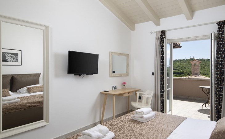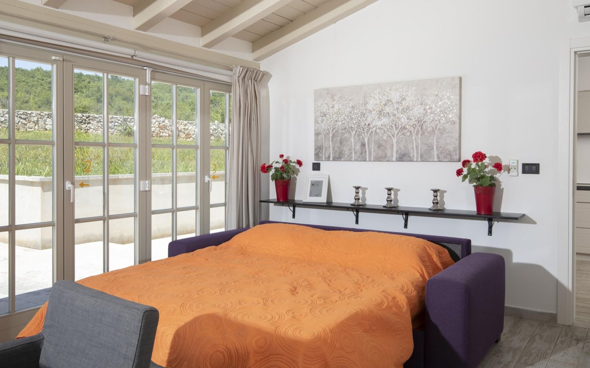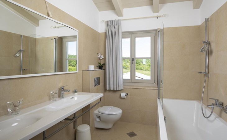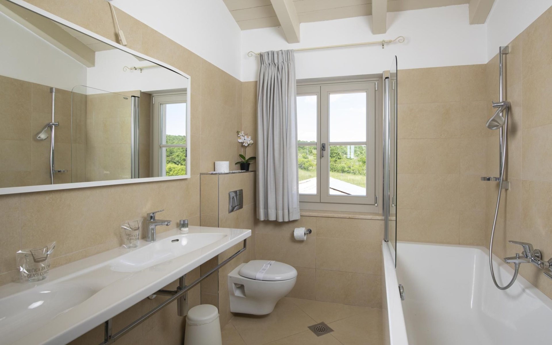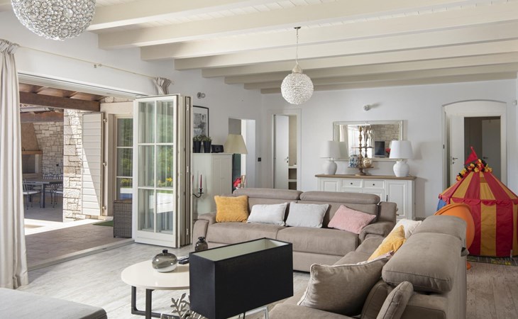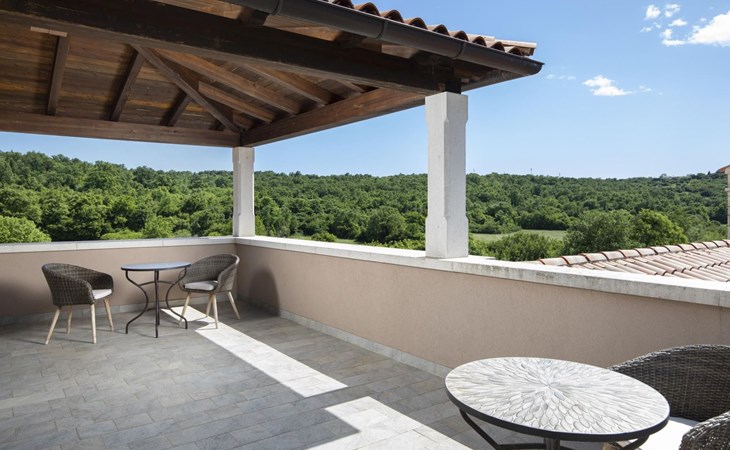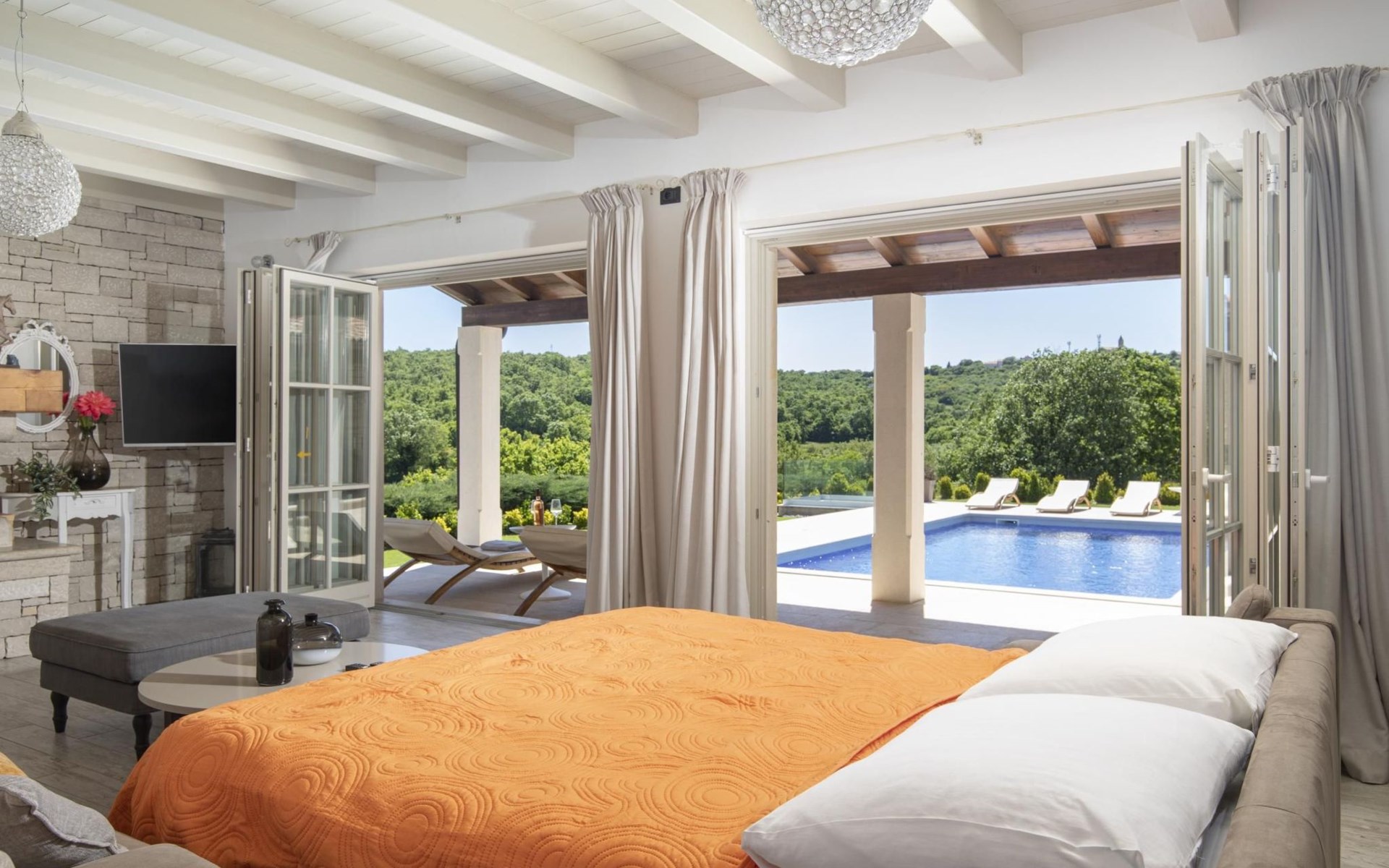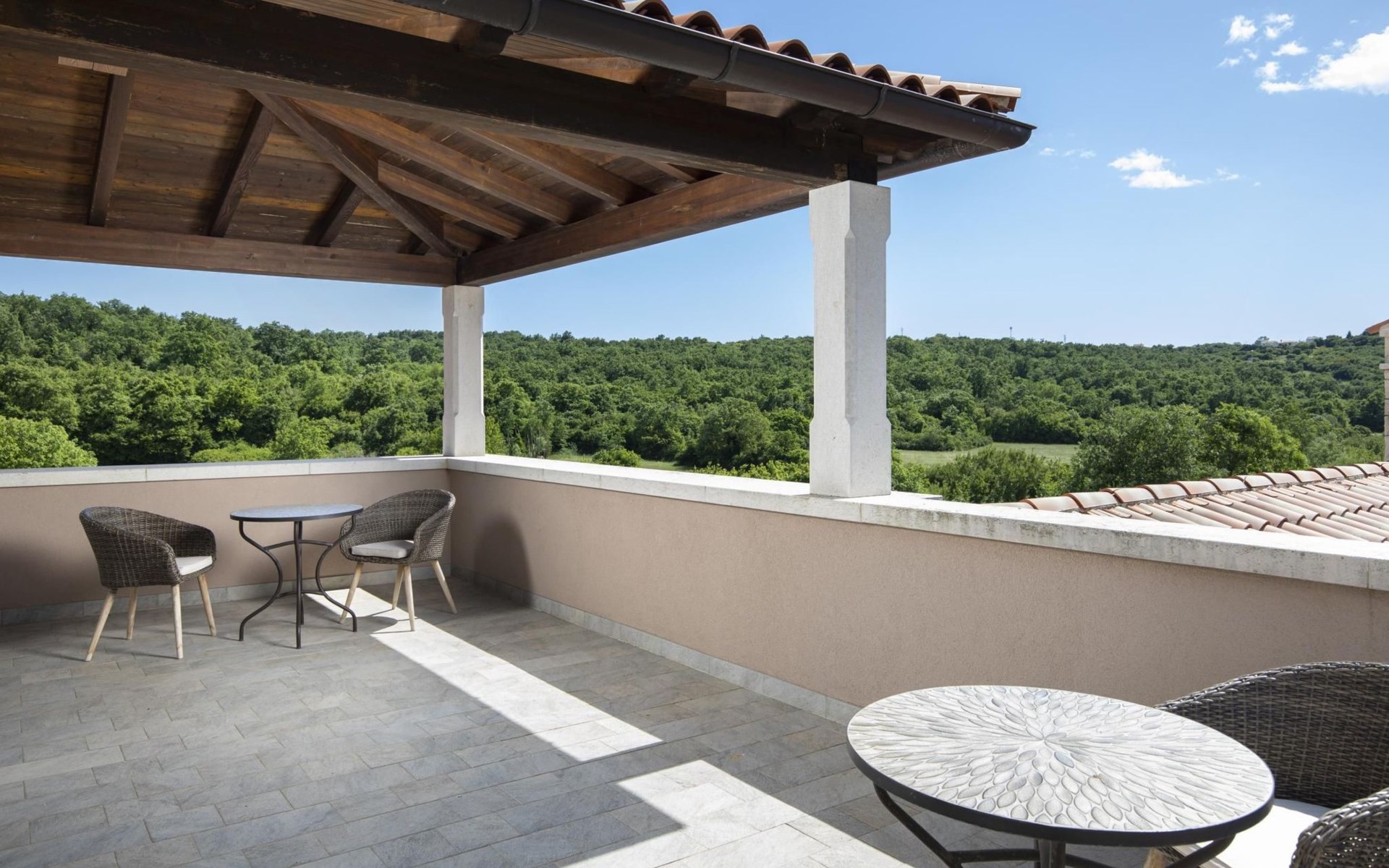 Heritage Villa Lilly is located in the quiet rural surroundings of Krnica, a luxury villa that offers unparalleled privacy and peace. The villa is surrounded by spacious landscapes with no neighboring houses, ensuring complete privacy for guests looking for a peaceful vacation.Heritage Villa Lilly covers an impressive 450 m2 and offers three bedrooms, each equipped with its own bathroom for maximum comfort and convenience.Inside the villa, there is a sophisticated atmosphere with a well-equipped living room overlooking the pool, a fully equipped kitchen, and an elegant dining room, where guests can gather and spend quality time together. Expansive windows throughout the villa allow natural light to flood the space, offering picturesque views of the surrounding countryside.A private balcony extends from the bedrooms and offers stunning views of the lush greenery and distant horizon, while five convenient parking spaces ensure carefree arrival and departure for guests traveling by car.Enjoy relaxation and wellness in the villa's outstanding facilities, including a revitalizing sauna and indoor jacuzzi, perfect for unwinding after a day of exploring. For those who want to maintain their fitness routine, a fully equipped indoor gym awaits them.Step outside and discover the epitome of leisure with the immaculate outdoor pool inviting guests to soak up the sun or cool off in the crystal clear waters. Next to the swimming pool, a spacious terrace with comfortable deckchairs provides an ideal place for outdoor relaxation and barbecue dining.Surrounded by a yard of 80,000 m2, Heritage Villa Lilly invites guests to explore and immerse themselves in the natural beauty of the Istrian countryside. Whether relaxing by the pool, enjoying wellness activities, or simply enjoying the peace, this exclusive vacation promises an unforgettable escape for guests seeking luxury, comfort, and privacy.It's worth noting that the villa is situated in a private location, which means that guests will need to drive to reach nearby beaches, supermarkets, and restaurants. There are several great dining options a short drive away from the villa.Restaurant Kumparička is just a short 3 km drive away, while Restaurant Konoba da Rocco is located 5 km away. For grocery shopping, the nearest supermarket is Konzum in Marčana, which is 6 km from the villa.Dobric Beach and Uvala Ribarica are just 6 km away.The villa's location is convenient for exploring Istria, with cities such as Pula and Rovinj a short 20-30 minute drive away.