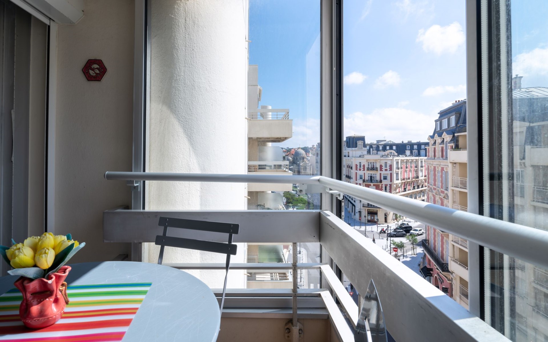 Residentie "Victoria Surf". In het centrum van Biarritz, centrale, drukke ligging, 50 m van zee, 50 m van het strand, de straat oversteken. Voor medegebruik: openluchtzwembad (15 x 17 m, 150 - 400 cm diepte, seizoensgebonden beschikbaarheid: 01.Jun. - 30.Sep. openingstijden zwembad: 09:00-20:00). Kinderzwembad. In het complex: solarium, lift, centrale verwarming. Winkel 20 m, restaurant 100 m, bushalte 50 m, station "Gare de Biarritz" 3.4 km, zandstrand "La Grande Plage" 50 m. Golfterrein (18 holes) 1.9 km, surfschool 50 m. Attracties in de buurt: Casino 150 m, Marché des Halles 800 m, Aquarium 1 km, Phare de Biarritz 1 km, Bayonne 7.5 km, St-Jean-de-Luz 15 km. Wandelgebied La Rhune 26 km. De sleuteloverdracht vindt plaats bij het agentschap Interhome.