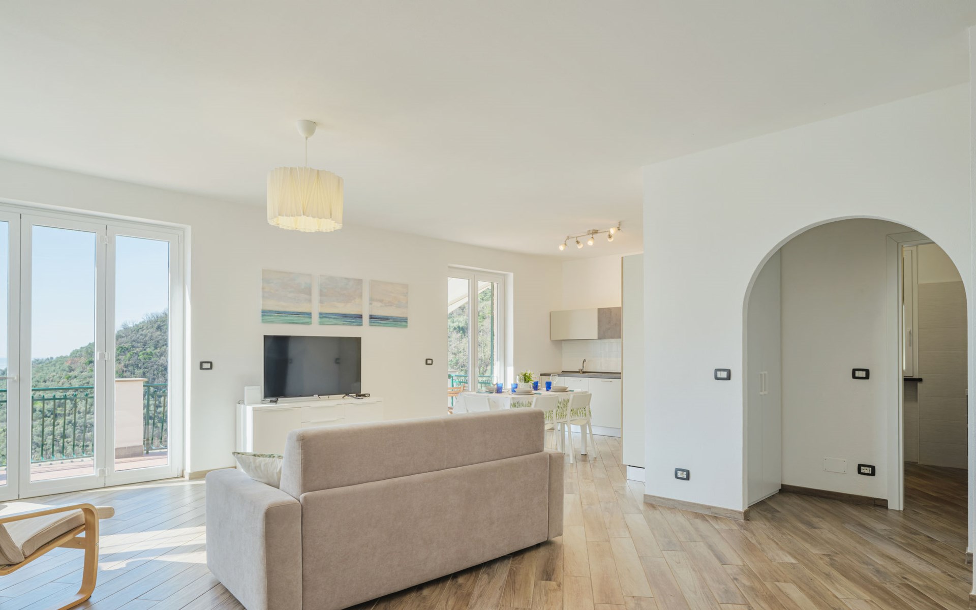 Eengezinswoning "Sorvegallo", vrijstaand, gerenoveerd in 2021. In de wijk San Lorenzo, 2 km van het centrum van Moneglia, geïsoleerde, rustige, verhoogde ligging tegen een helling, 2 km van zee, te midden van groen. Voor medegebruik: terrein 2 ha. Voor alleengebruik: tuin met bomen. Trappenweg (42 treden) naar het huis. Parkeerplaats (voor 2 auto's) op het terrein. Supermarkt 2 km, restaurant 2 km, bar 2 km, bakkerij 2 km, café 2 km, bushalte 400 m, treinstation "Moneglia" 1.5 km, zandstrand 2 km. Attracties in de buurt: Cinque Terre, Sestri Levante, Chiavari. Auto noodzakelijk.