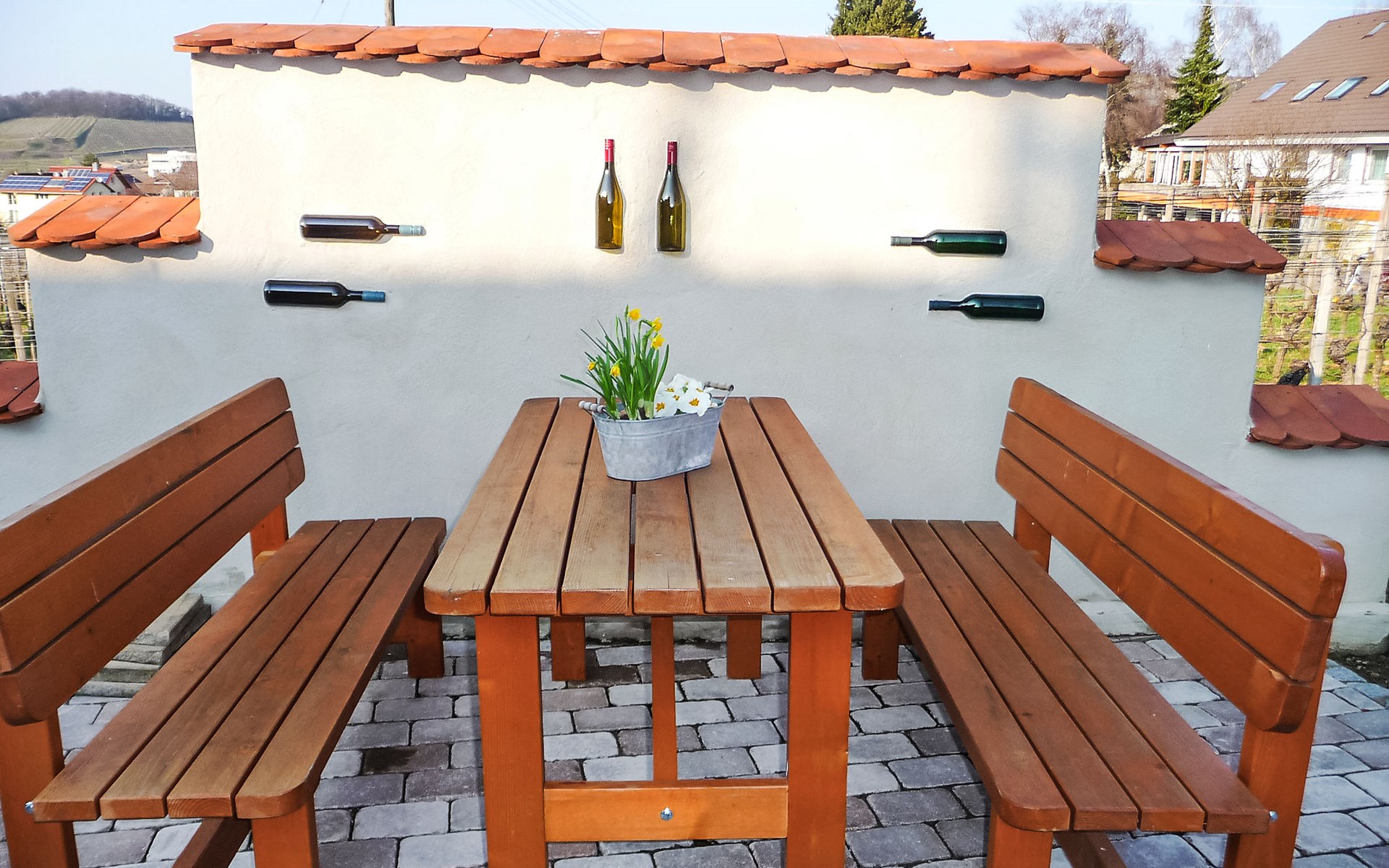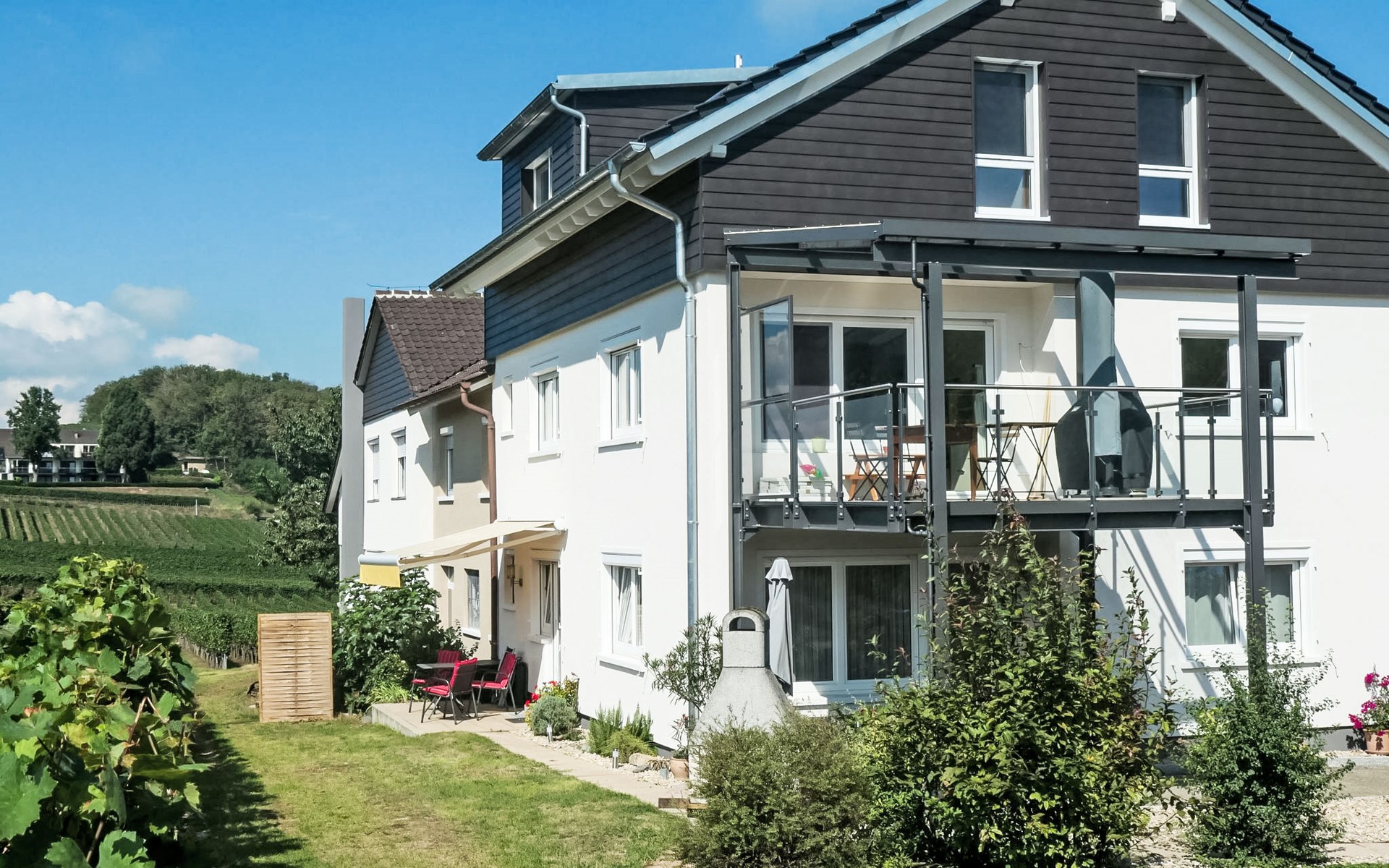 Gezellig landhuis "Haus Sacherer", omgeven door wijngaarden. In de wijk Bischoffingen, 2 km van het centrum van Oberrottweil, rustige, zonnige, verhoogde ligging, 5 km van het meer, 3 km van de rivier. Voor medegebruik: tuin met ligweide. Tuinmeubelen, barbecue. In het huis: centrale verwarming. Parkeerplaats bij het huis. Levensmiddelenwinkel 100 m, supermarkt 2 km, restaurant 200 m, bakkerij 2 km, bushalte "Bischoffingen Amthofplatz" 250 m, treinstation "Vogtsburg" 2 km, openluchtzwembad 2 km, meer (zwemmen) "Burkheim" 5 km. Golfterrein (18 holes) 20 km, tennis, kinderspeelplaats 200 m. Attracties in de buurt: Historische Altstadt Breisach 10 km, Elsass 12 km, Altstadt Freiburg 20 km, Europapark Rust 30 km. Bekende skigebieden kunnen gemakkelijk worden bereikt: Feldberg 60 km. Wandelgebied Kaiserstuhl. Auto noodzakelijk. De vakantiewoning wordt omgeven door wijnranken en ligt op 3 km van de Rijn.