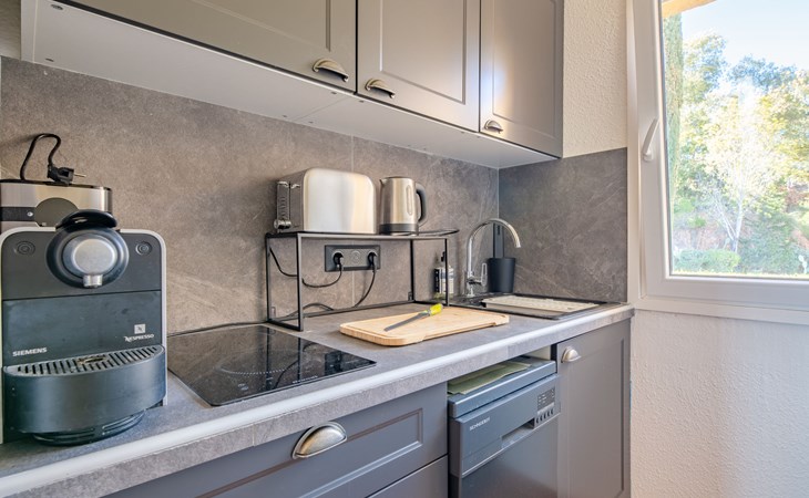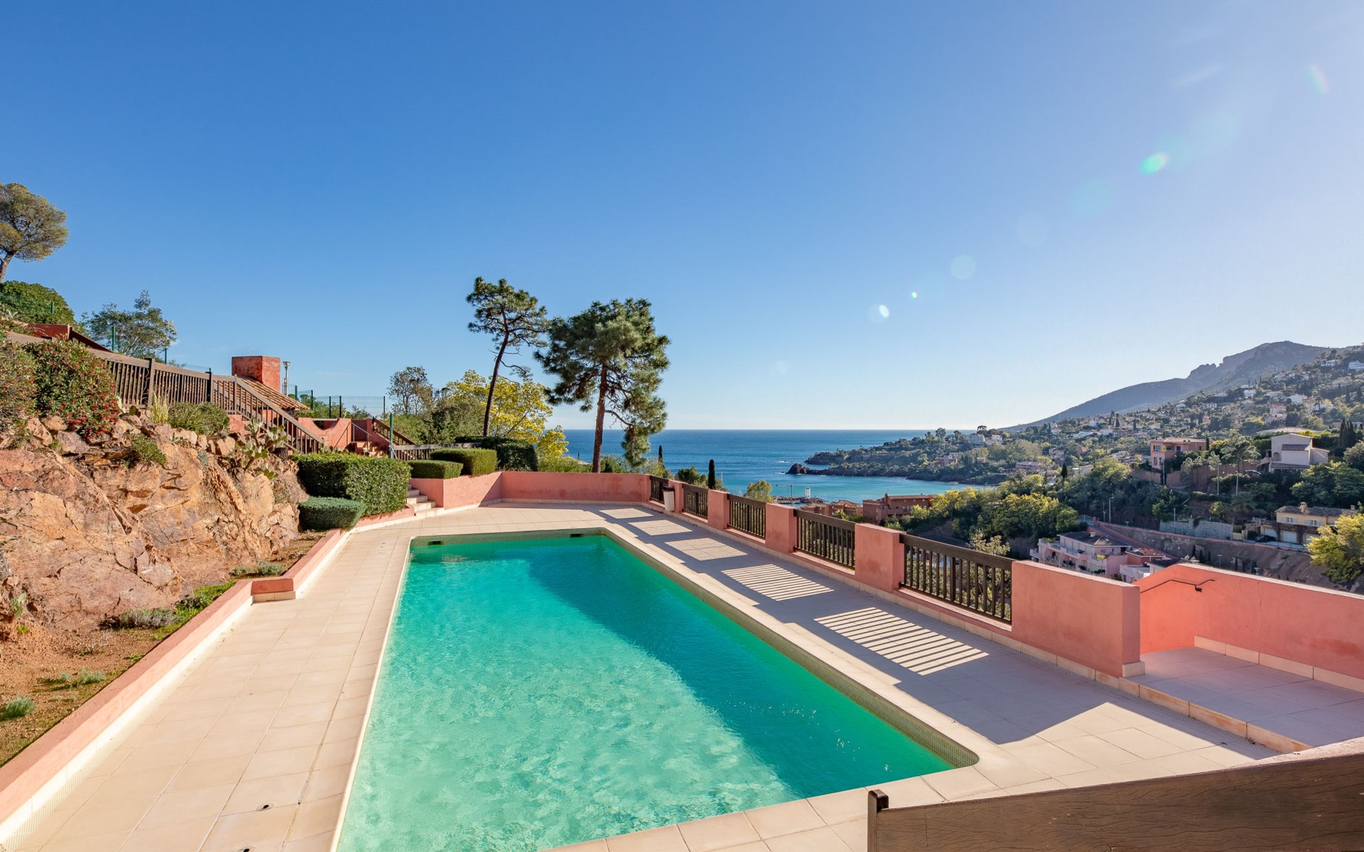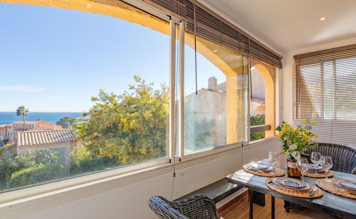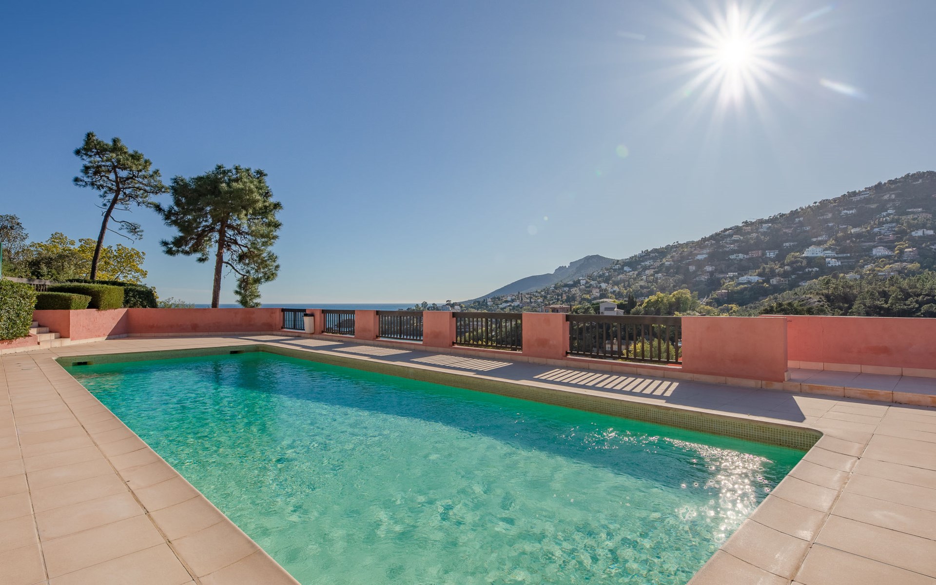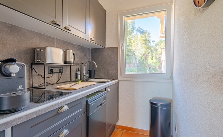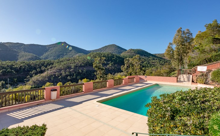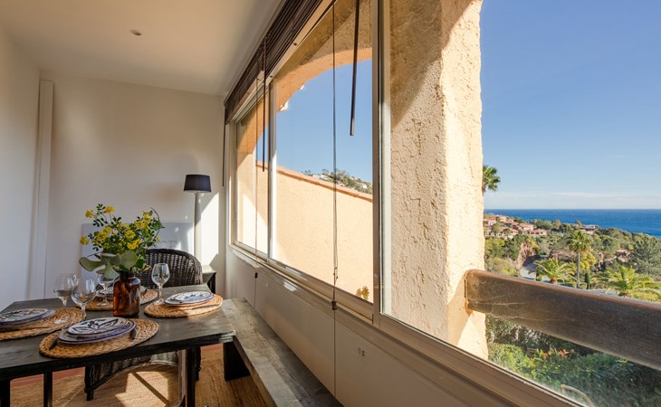 Mooi flatgebouw "Les Mas de la Mer". Op een heuvel, villa wijk. Voor medegebruik: openluchtzwembad (14 x 7 m, seizoensgebonden beschikbaarheid: 15.Apr. - 15.Okt.). Parkeerplaats bij het huis. Winkel 7 km, bushalte 1.2 km, zandstrand "La Figueirette" 1 km. Jachthaven 800 m, golfterrein (18 holes) 11 km. Attracties in de buurt: Cannes 16 km, Nice 45 km, Ste. Maxime 50 km. Wandelgebied Esterel 100 m.