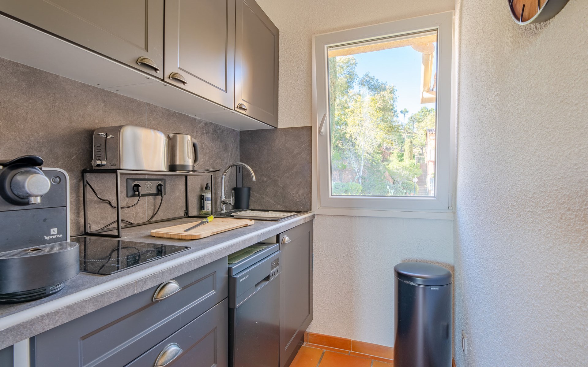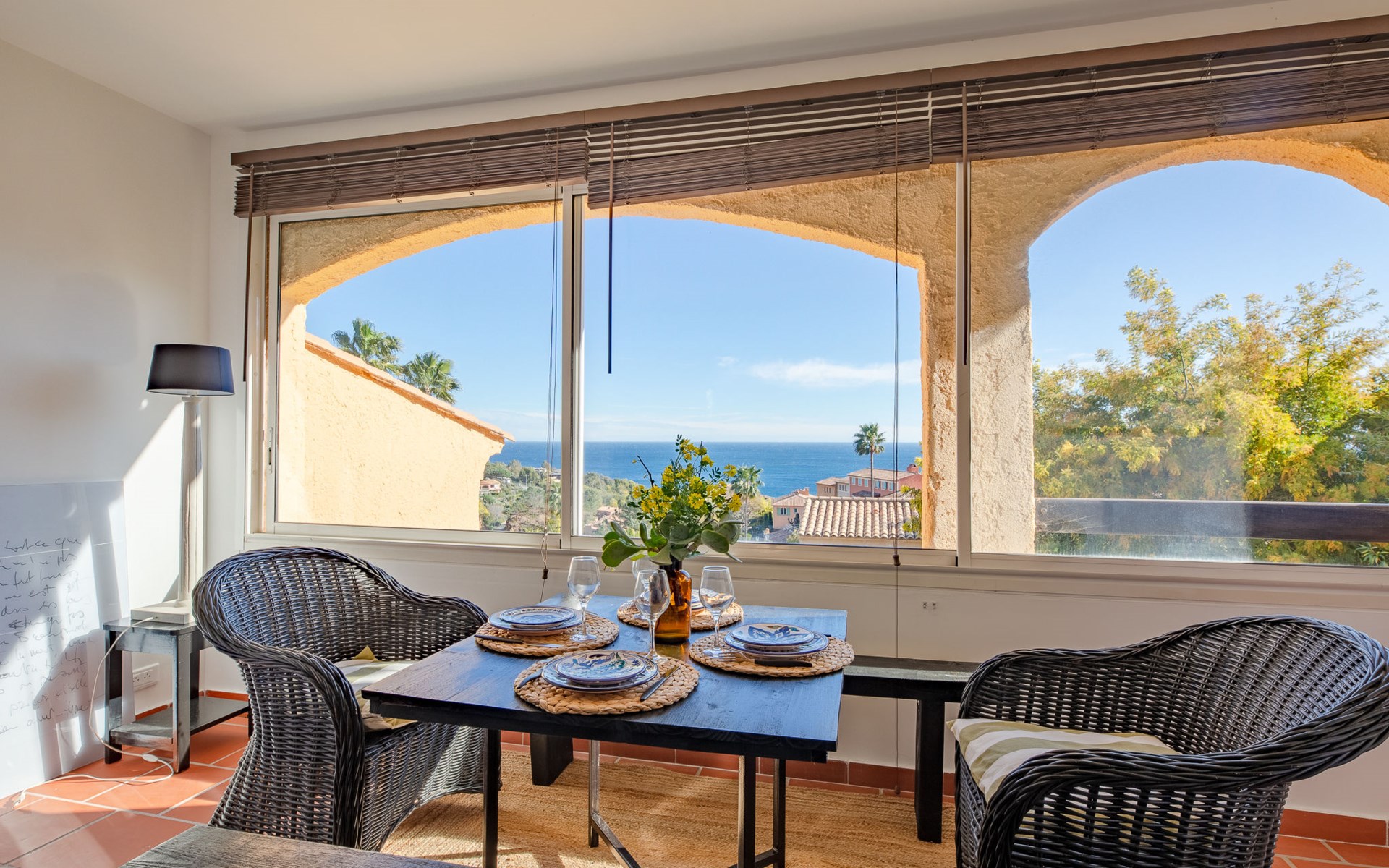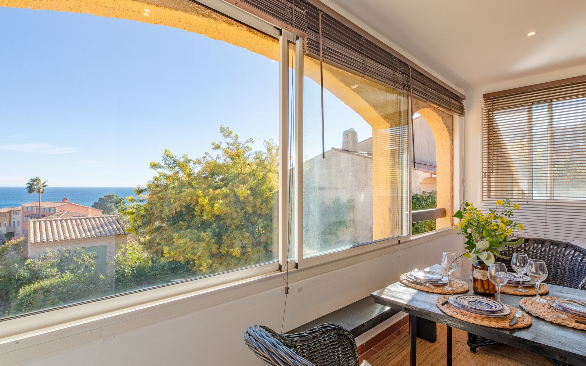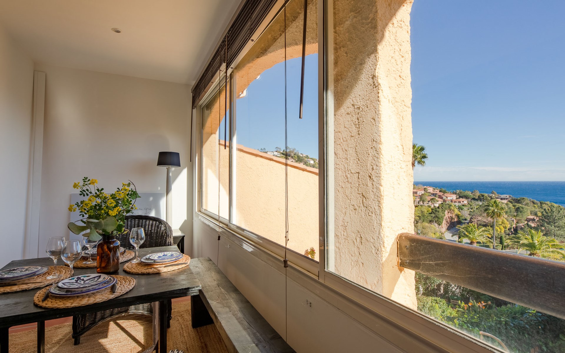 Mooi flatgebouw "Les Mas de la Mer". Op een heuvel, villa wijk. Voor medegebruik: openluchtzwembad (14 x 7 m, seizoensgebonden beschikbaarheid: 15.Apr. - 15.Okt.). Parkeerplaats bij het huis. Winkel 7 km, bushalte 1.2 km, zandstrand "La Figueirette" 1 km. Jachthaven 800 m, golfterrein (18 holes) 11 km. Attracties in de buurt: Cannes 16 km, Nice 45 km, Ste. Maxime 50 km. Wandelgebied Esterel 100 m.