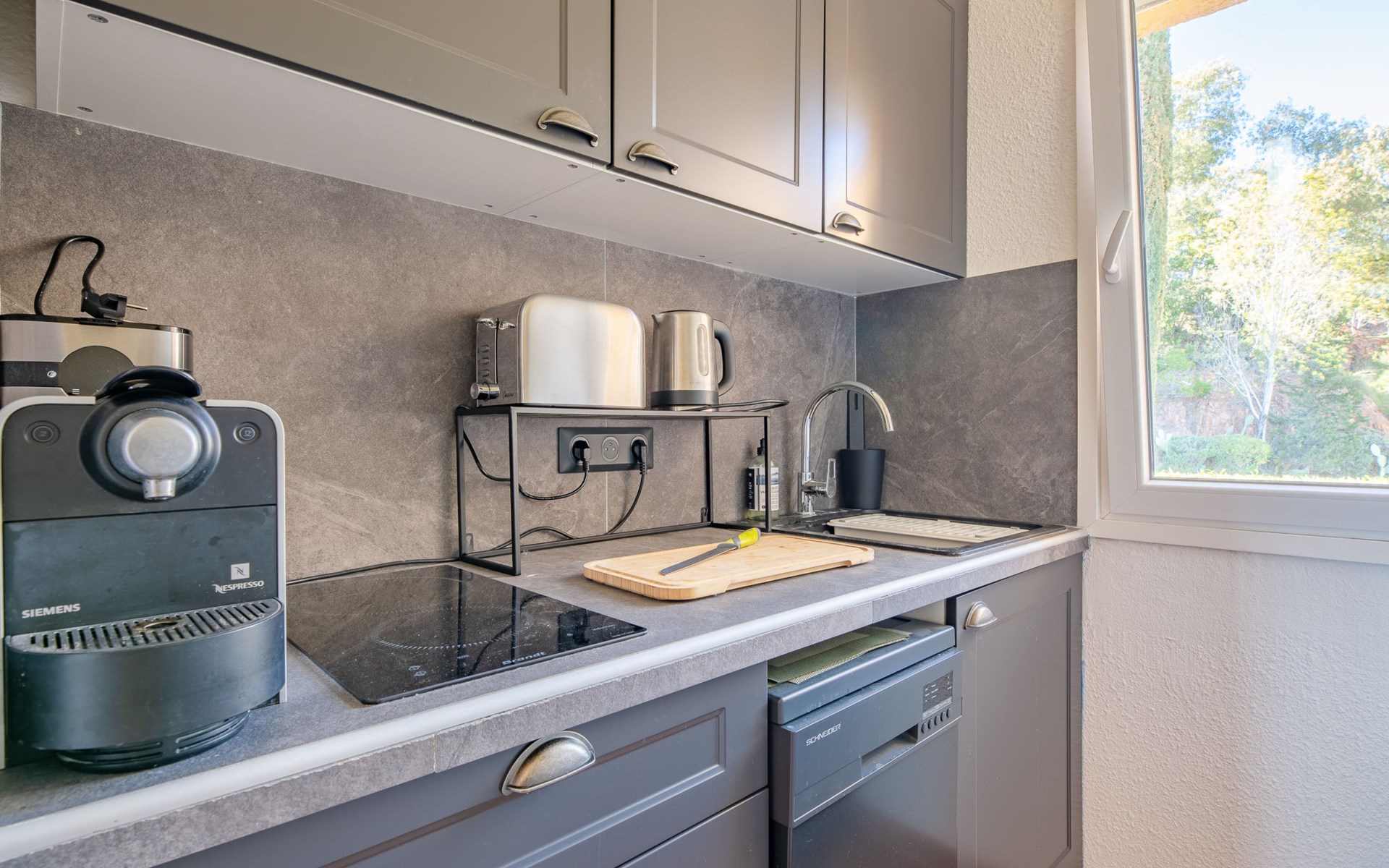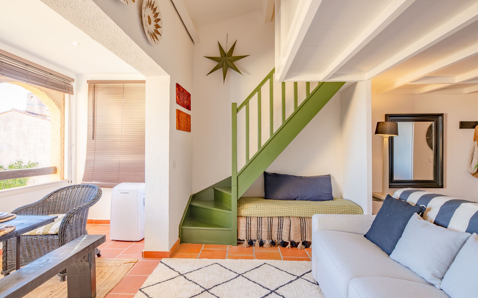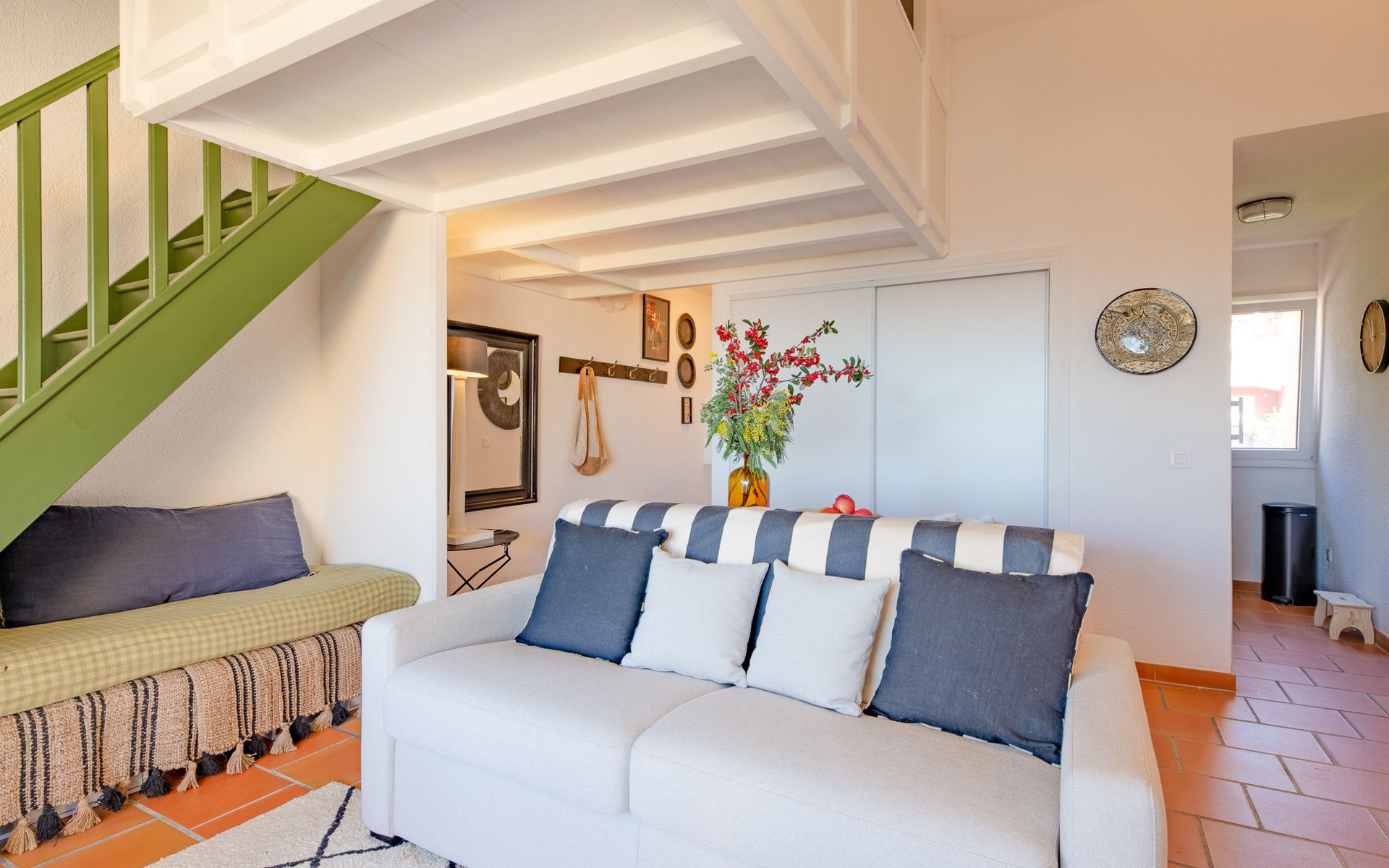Mooi flatgebouw "Les Mas de la Mer". Op een heuvel, villa wijk. Voor medegebruik: openluchtzwembad (14 x 7 m, seizoensgebonden beschikbaarheid: 15.Apr. - 15.Okt.). Parkeerplaats bij het huis. Winkel 7 km, bushalte 1.2 km, zandstrand "La Figueirette" 1 km. Jachthaven 800 m, golfterrein (18 holes) 11 km. Attracties in de buurt: Cannes 16 km, Nice 45 km, Ste. Maxime 50 km. Wandelgebied Esterel 100 m.