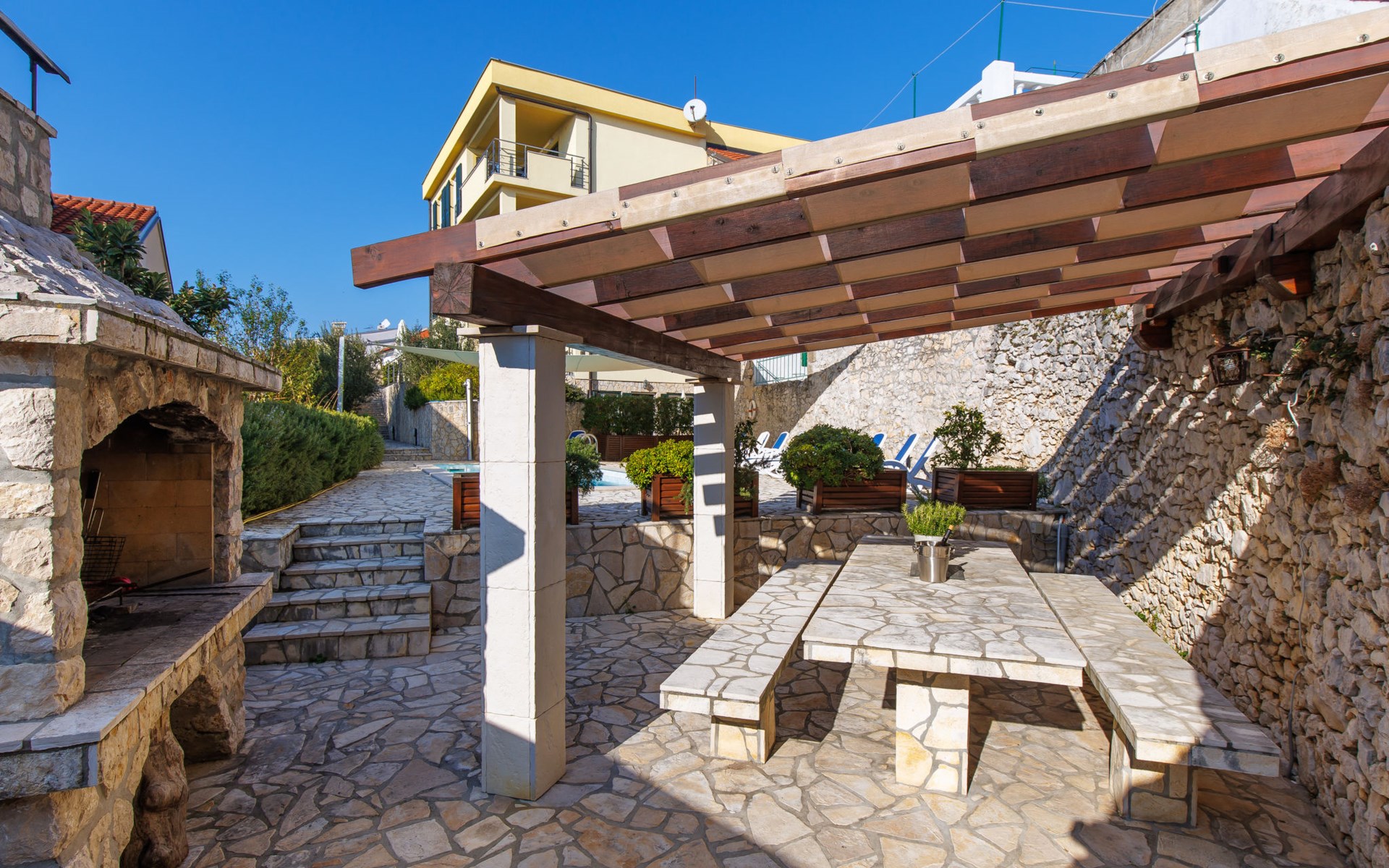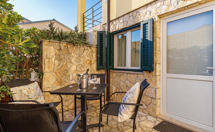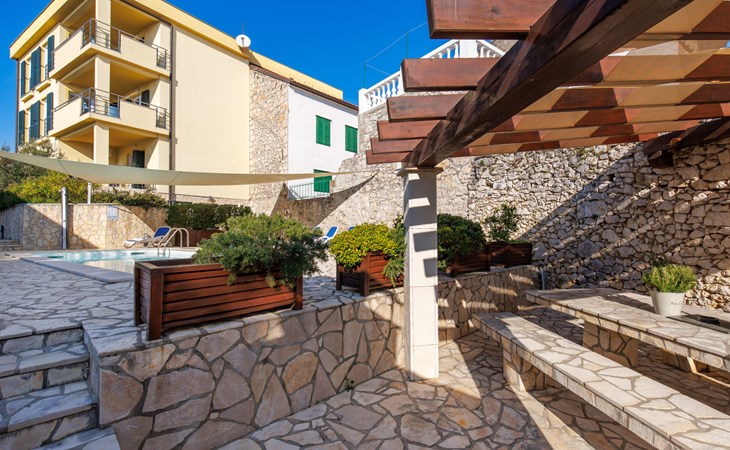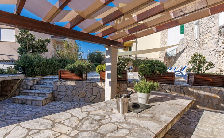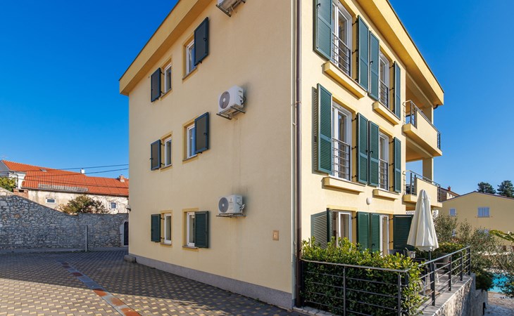 Appartementencomplex "Leko". 130 m van het centrum van Novi Vinodolski, zonnige ligging, perfecte locatie: in het centrum en toch rustig gelegen, 450 m van zee, 450 m van het strand. Voor medegebruik: openluchtzwembad hoekig (8 x 3 m, 150 cm diepte, seizoensgebonden beschikbaarheid: 01.Mei. - 15.Okt.). Buitendouche, tuinmeubelen, barbecue. In het huis: internetaansluiting, tafeltennis, tafelvoetbal, wasmachine (voor medegebruik, extra). Luchthaventransfer (extra). Smalle toegangsweg tot aan het huis. Parkeerplaats bij het huis op het terrein. Winkel, supermarkt 130 m, bushalte 700 m, zandstrand, stenenstrand 650 m, betonnen strand 450 m. Op aanvraag kan een transfer vanaf de luchthaven naar de vakantiewoning geregeld worden. Privé aanlegsteiger voor een boot (extra) op aanvraag. Parkeerplaats op 200 m (omheind).