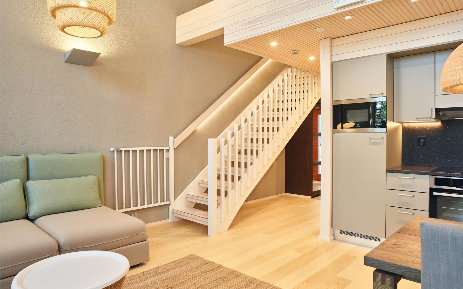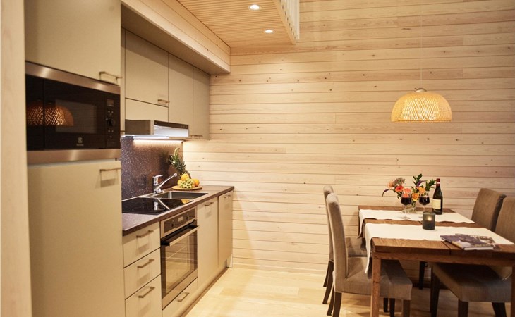 Apartment in the semi-detached house, built in 2017. Apartment in the semi-detached house, built in 2017. On the ground floor, living room/kitchen with sofa-bed, terrace, sauna and washroom. On the upper floor, two beds (width 90 cm) in the loft. Two beds in the loft can be attached into a double bed upon request.