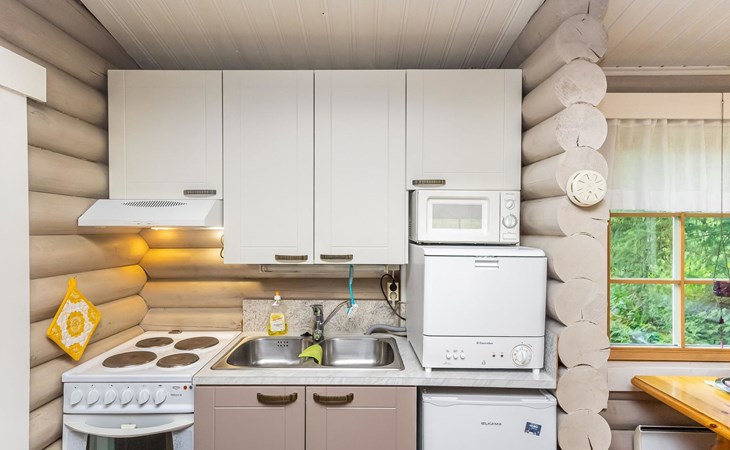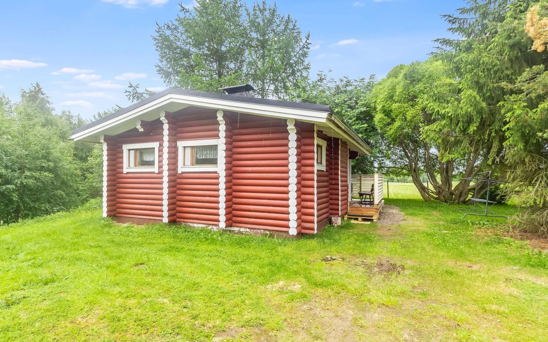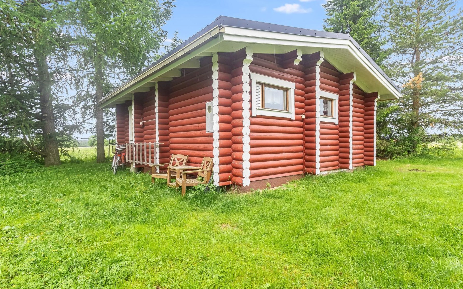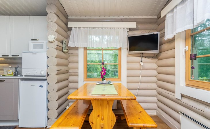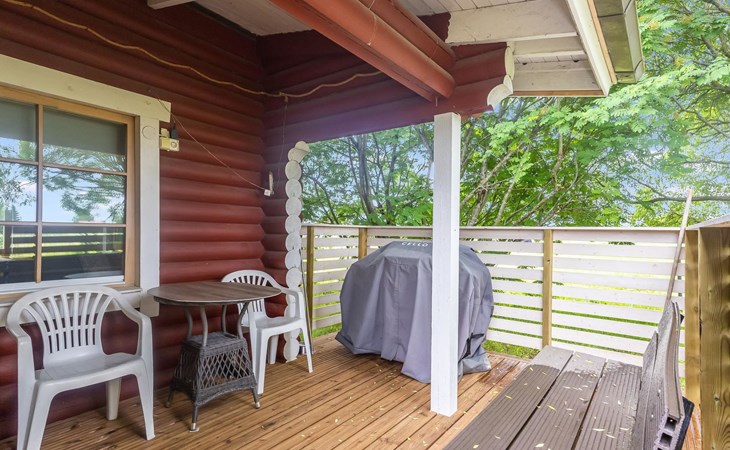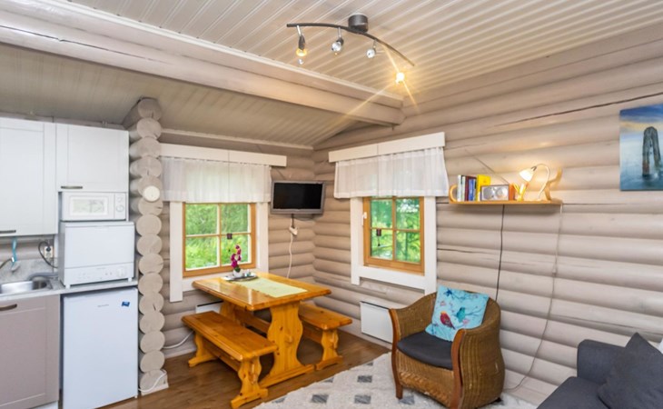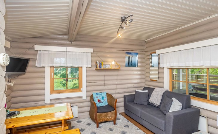 Log cottage 1988, renovated 2014, living room/ kitchen 2 extra beds, alcove double bed, washroom, sauna, open porch.