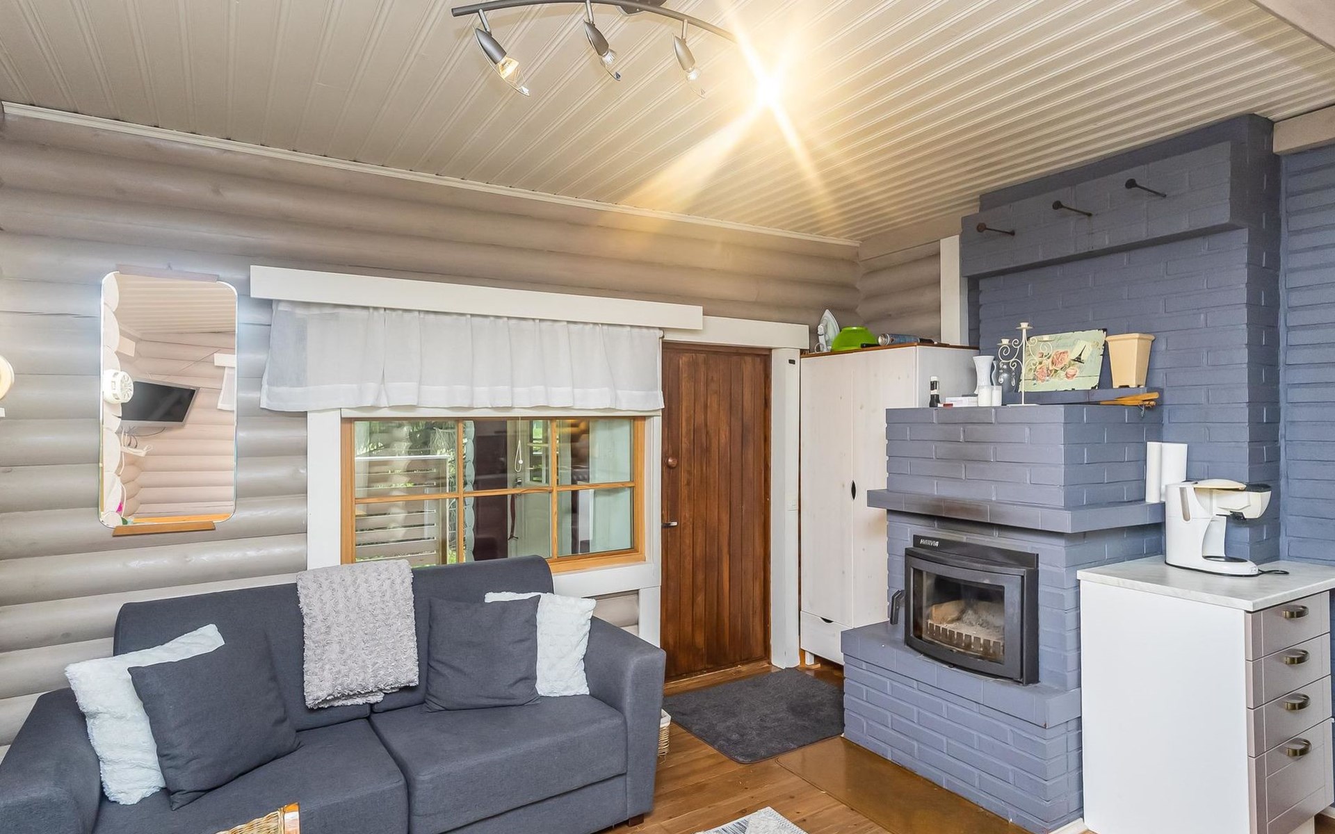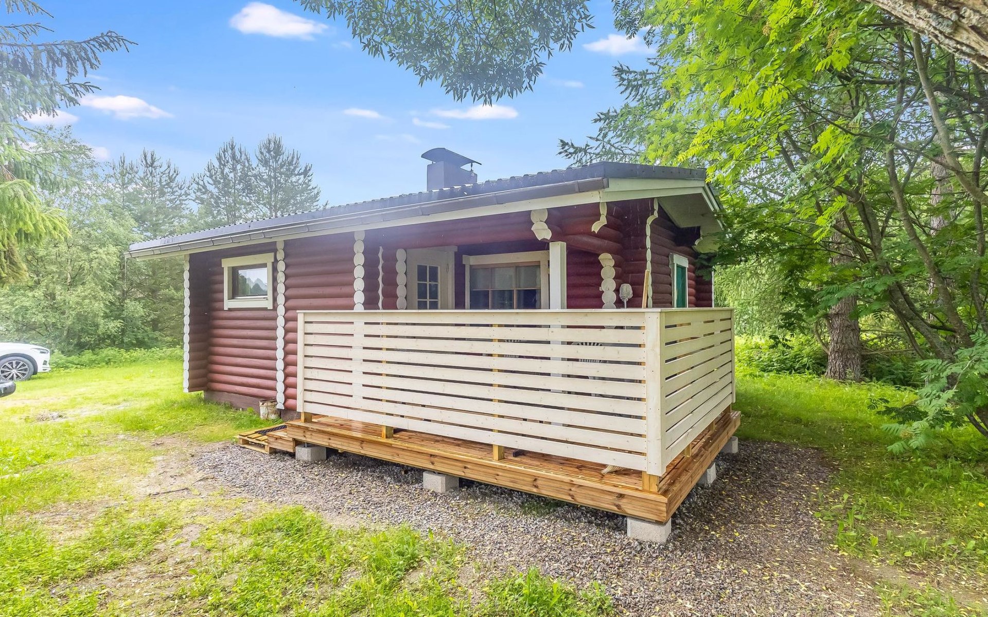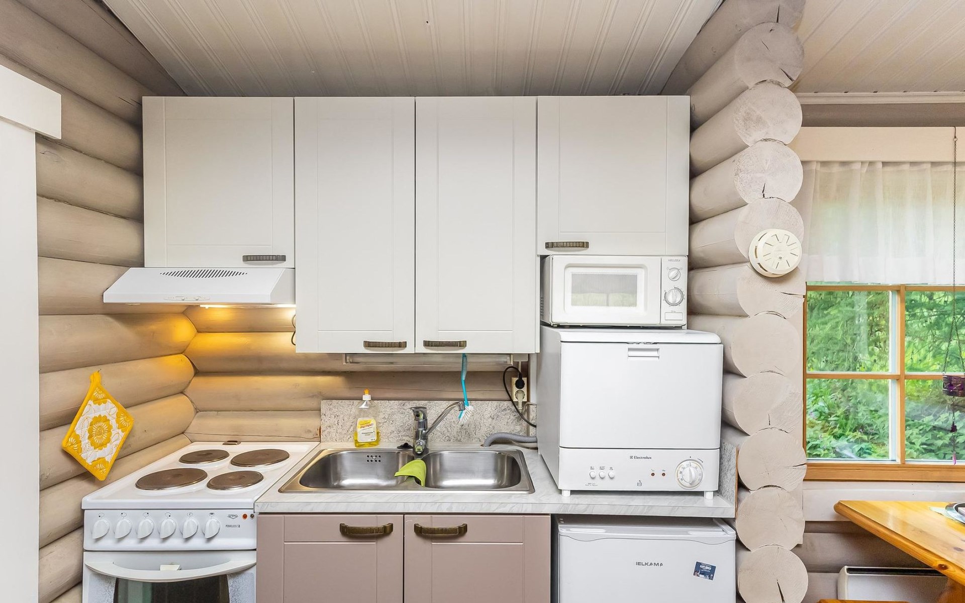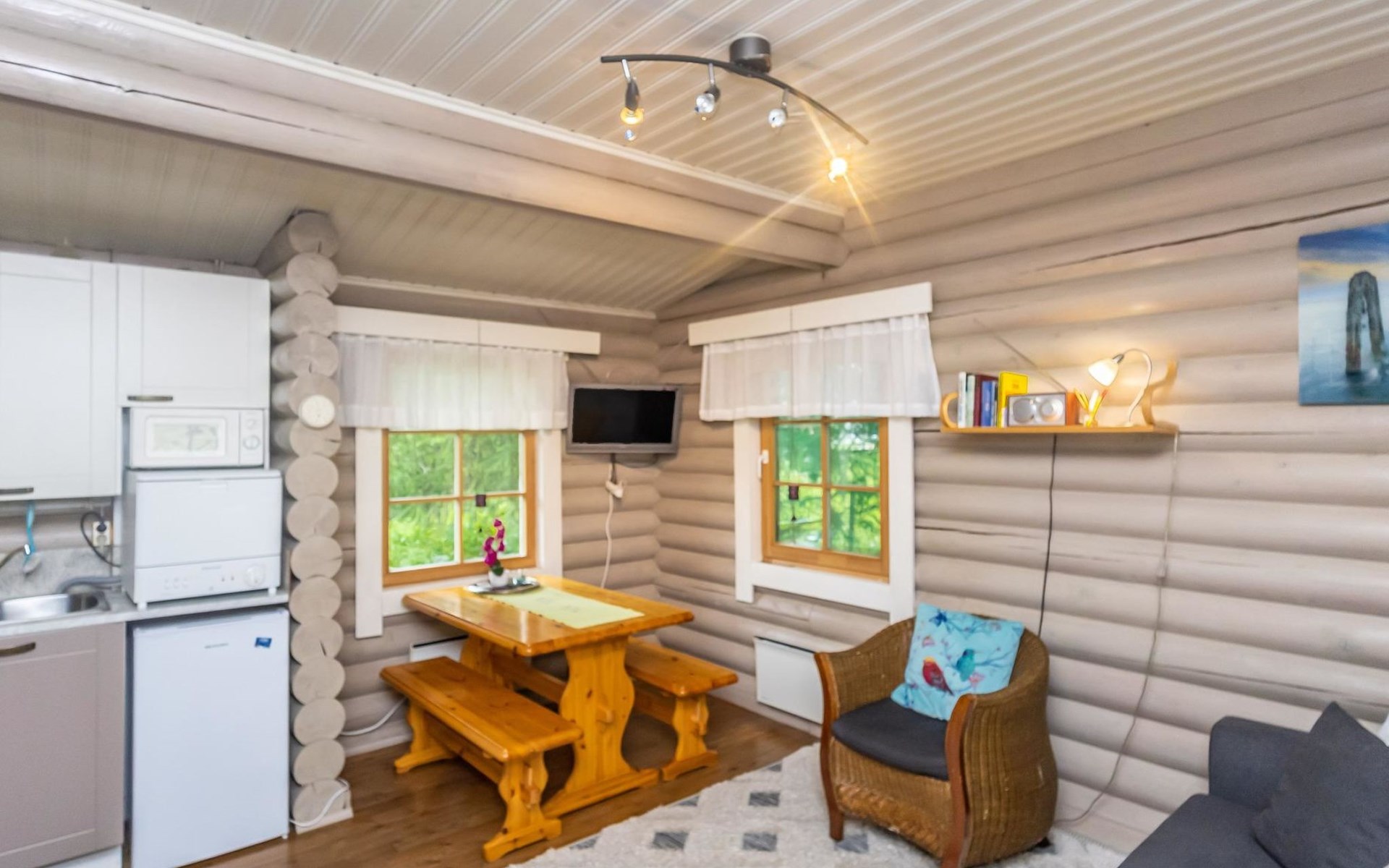 Log cottage 1988, renovated 2014, living room/ kitchen 2 extra beds, alcove double bed, washroom, sauna, open porch.