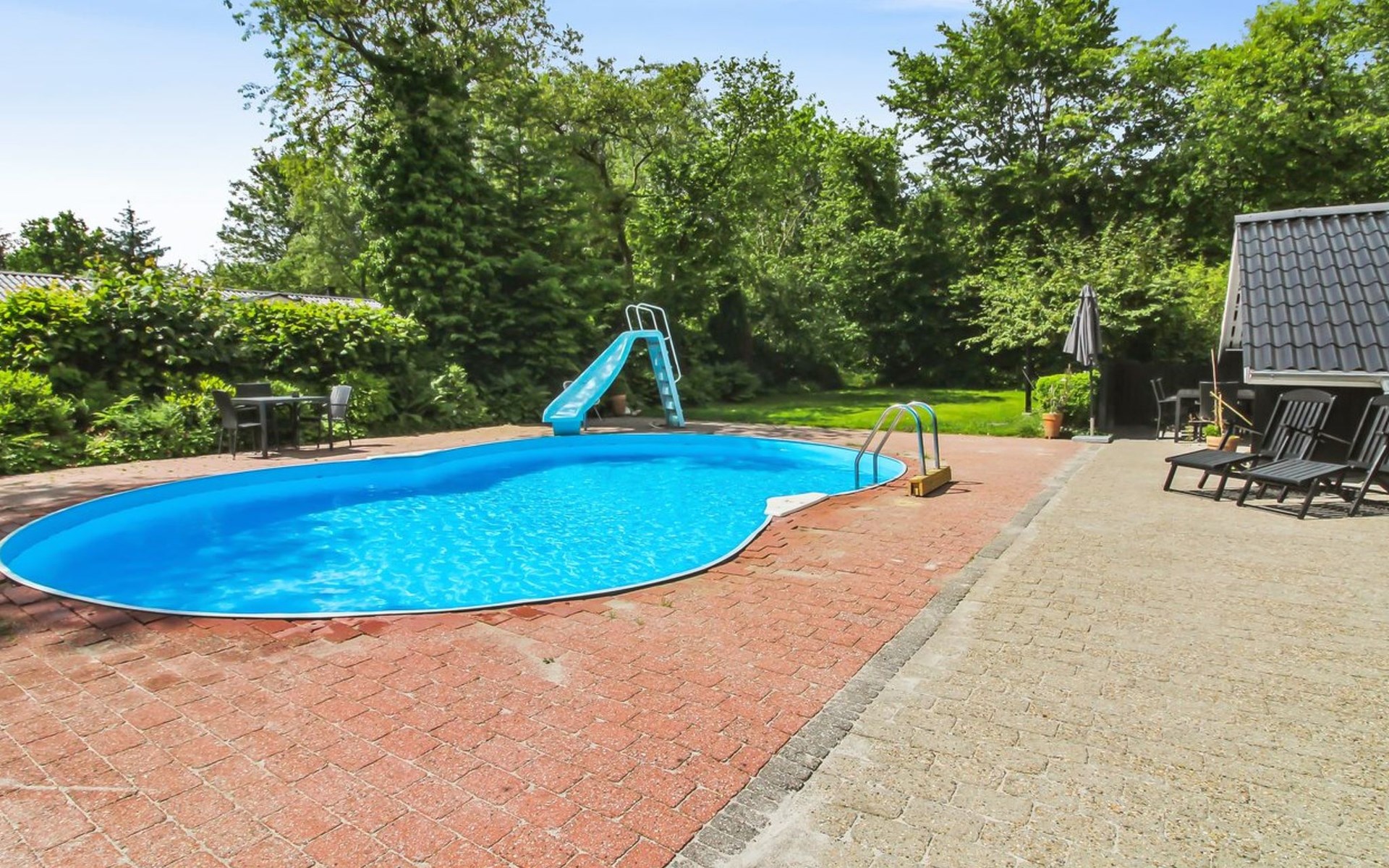 Eengezinswoning, bouwjaar 1976. 30 km van zee. Voor alleengebruik: wild terrein 876 m2, openluchtzwembad (6 x 8 m, 48 m2, 135 - 135 cm diepte, seizoensgebonden beschikbaarheid: 01.Mei. - 30.Sep.). Buitendouche, barbecue. In het huis: wasmachine. Parkeerplaats bij het huis. Oplaadstation. Levensmiddelenwinkel 700 m. De eigenaar accepteert geen jeugdgroepen.