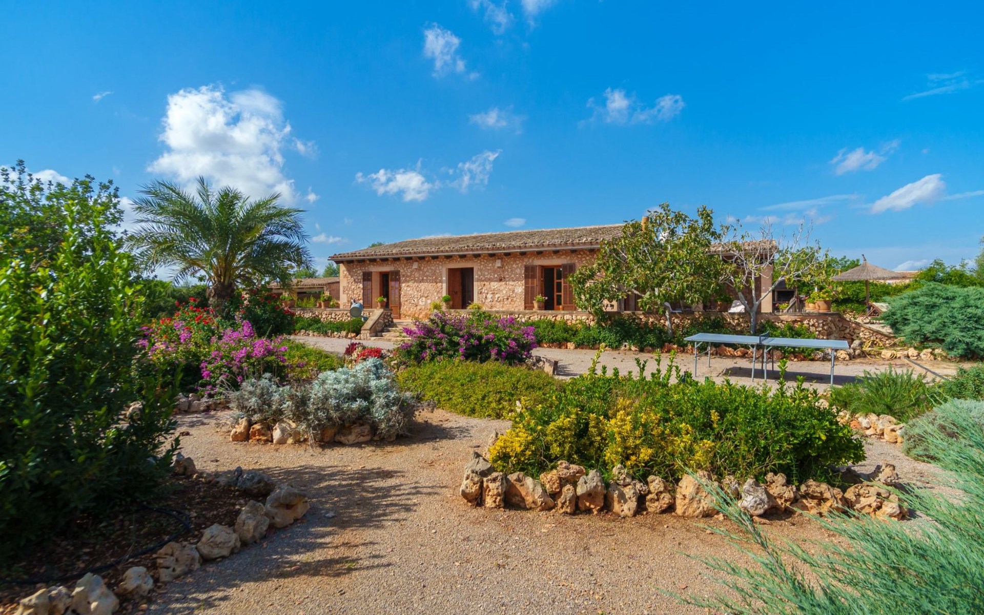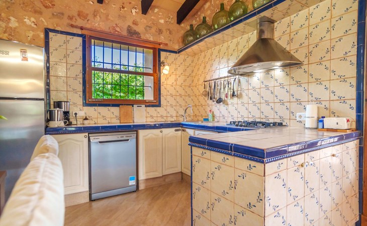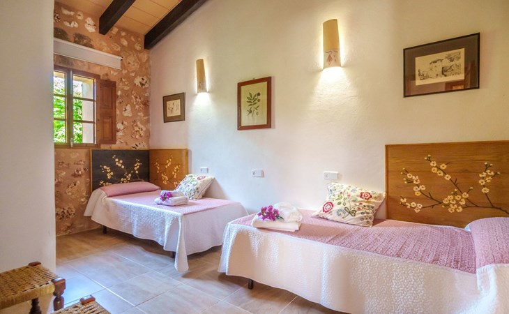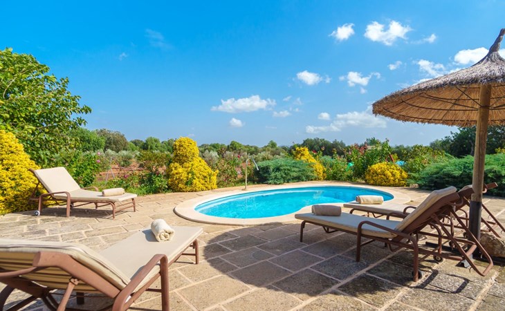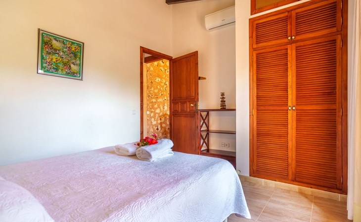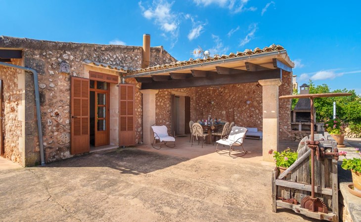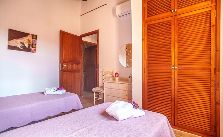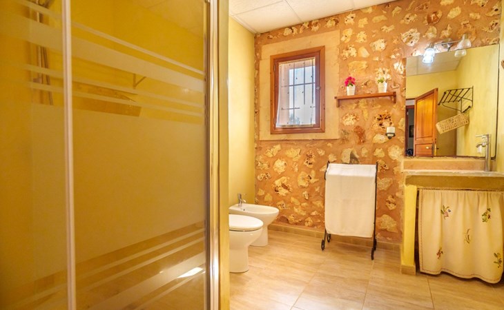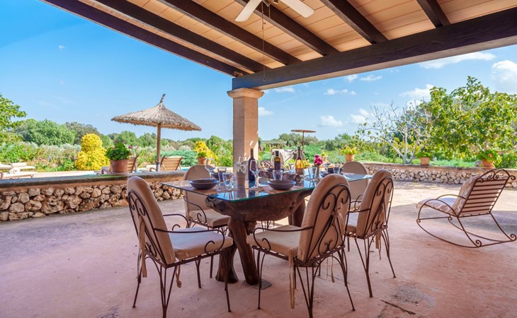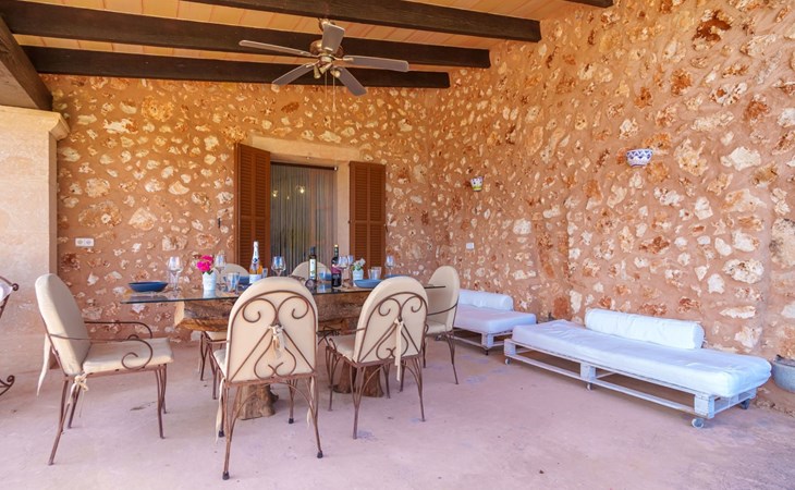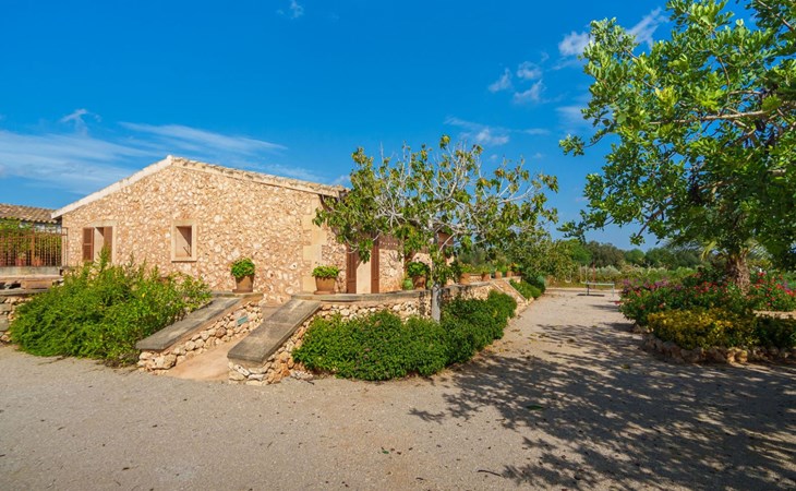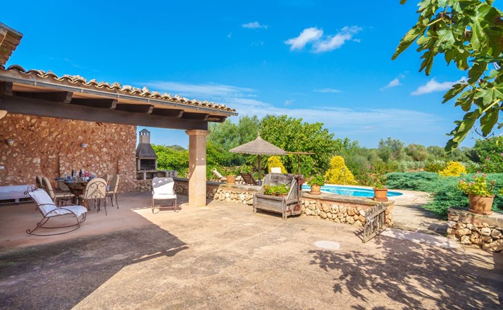 Porreres: Gezellig, rustieke landgoed "Los Geranios", omgeven door bomen, weiden en velden. Buiten de plaats, 6 km van het centrum van Porreres, rustige ligging, gebied met weinig verkeer, aan een doodlopende weg. Voor alleengebruik: wild terrein, mooie, verzorgde tuin, boomgaard, ligweide, openluchtzwembad niervormig (6 x 3 m, 60 - 150 cm diepte, seizoensgebonden beschikbaarheid: 01.Mrt. - 31.Okt.). Buitendouche, prieel, prieel, terras, tuinmeubelen, barbecue. In het huis: internetaansluiting, Internet (WiFi), air-conditioning, wasmachine. Parkeerplaats op het terrein. Bushalte "Porreras" 7 km. Auto noodzakelijk. Geschikt voor families, geschikt voor senioren baby uitrusting op aanvraag (incl.). Het objekt is geschikt voor 6 volwassenen. De eigenaar accepteert geen jeugdgroepen. Laden en lossen van de baggage is mogelijk bij het huis. Vliegveld 40 km van het huis.