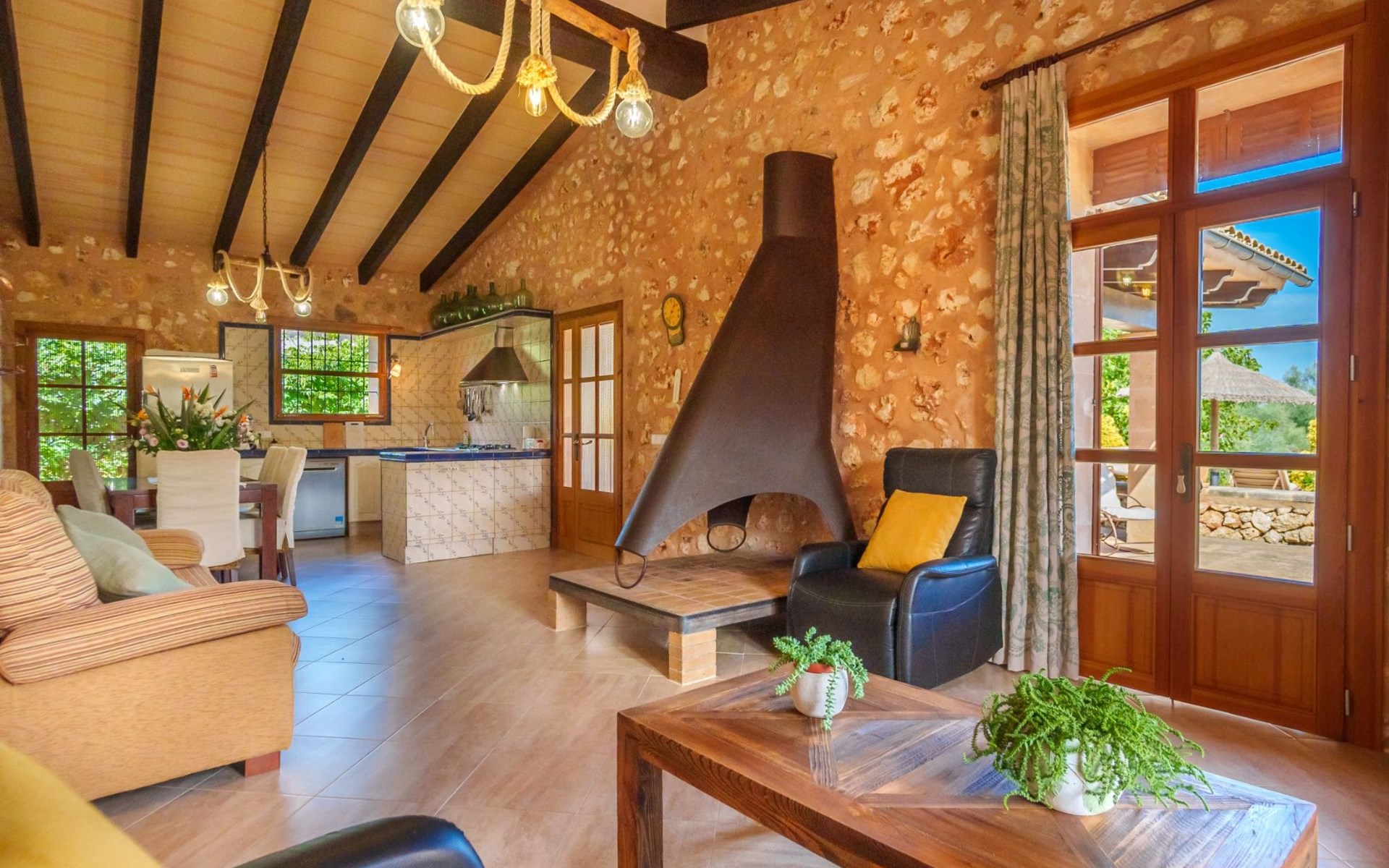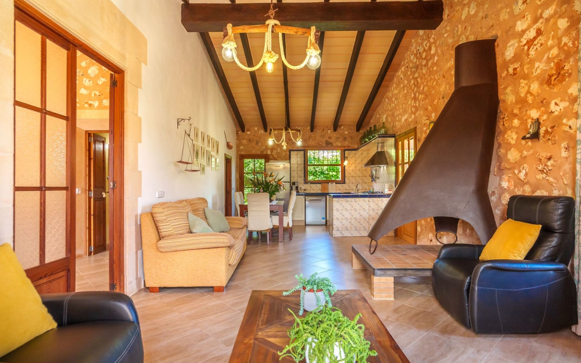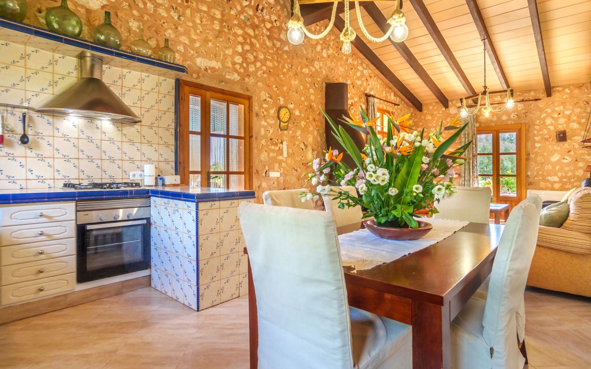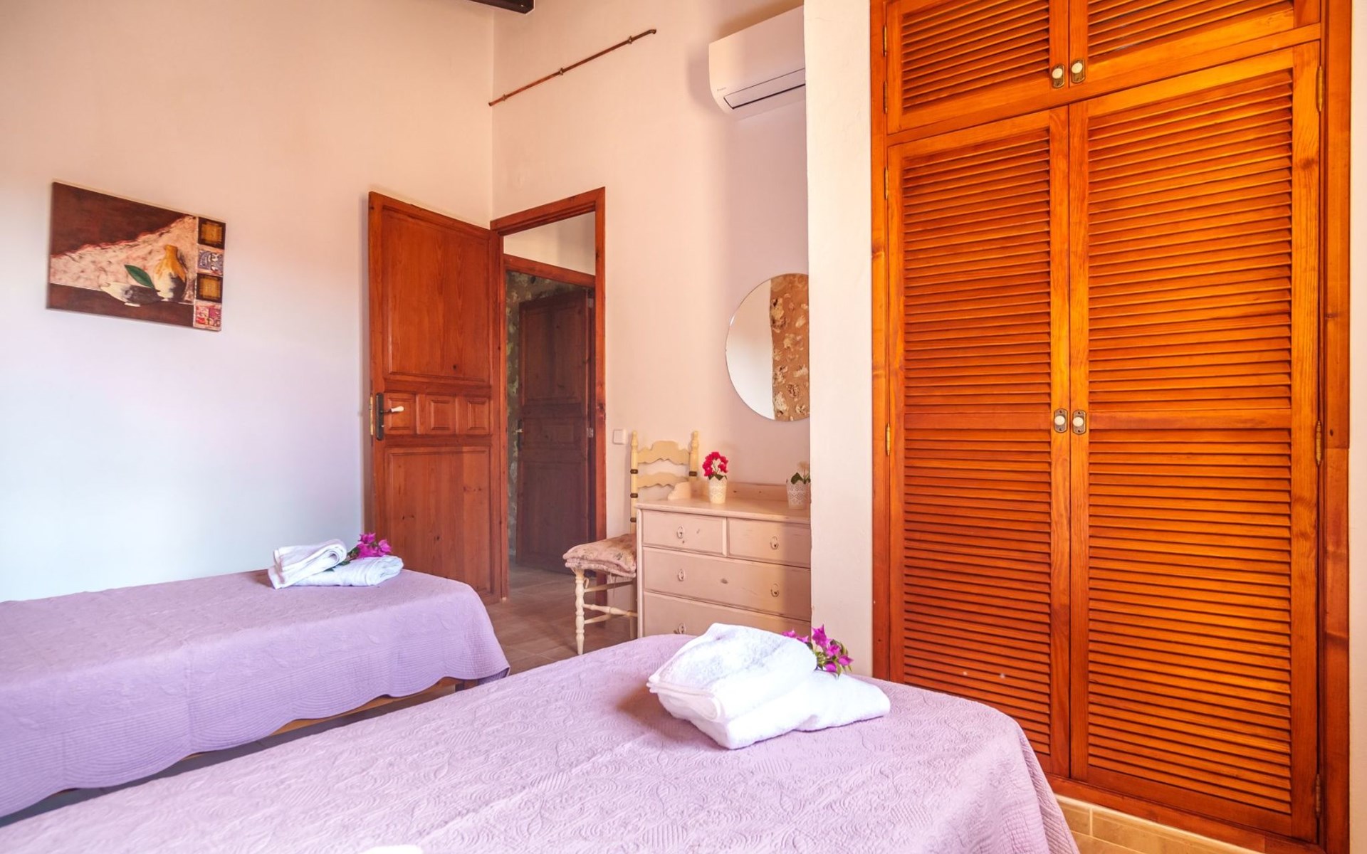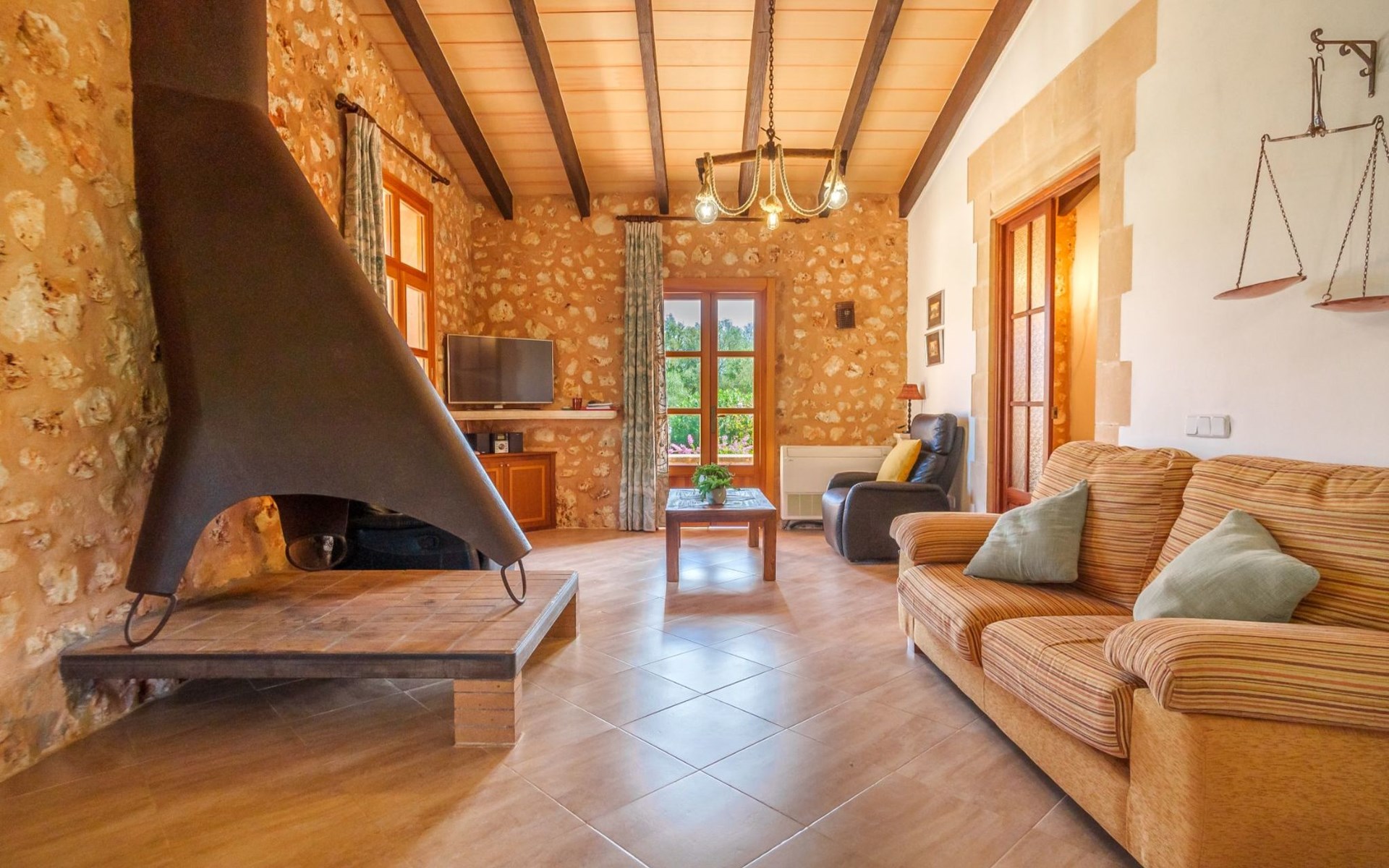 Porreres: Gezellig, rustieke landgoed "Los Geranios", omgeven door bomen, weiden en velden. Buiten de plaats, 6 km van het centrum van Porreres, rustige ligging, gebied met weinig verkeer, aan een doodlopende weg. Voor alleengebruik: wild terrein, mooie, verzorgde tuin, boomgaard, ligweide, openluchtzwembad niervormig (6 x 3 m, 60 - 150 cm diepte, seizoensgebonden beschikbaarheid: 01.Mrt. - 31.Okt.). Buitendouche, prieel, prieel, terras, tuinmeubelen, barbecue. In het huis: internetaansluiting, Internet (WiFi), air-conditioning, wasmachine. Parkeerplaats op het terrein. Bushalte "Porreras" 7 km. Auto noodzakelijk. Geschikt voor families, geschikt voor senioren baby uitrusting op aanvraag (incl.). Het objekt is geschikt voor 6 volwassenen. De eigenaar accepteert geen jeugdgroepen. Laden en lossen van de baggage is mogelijk bij het huis. Vliegveld 40 km van het huis.