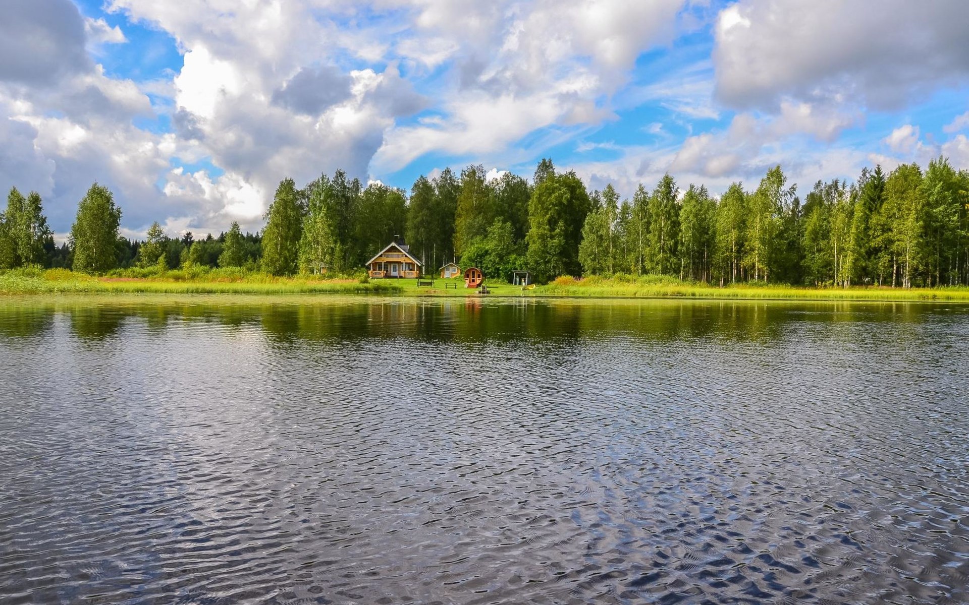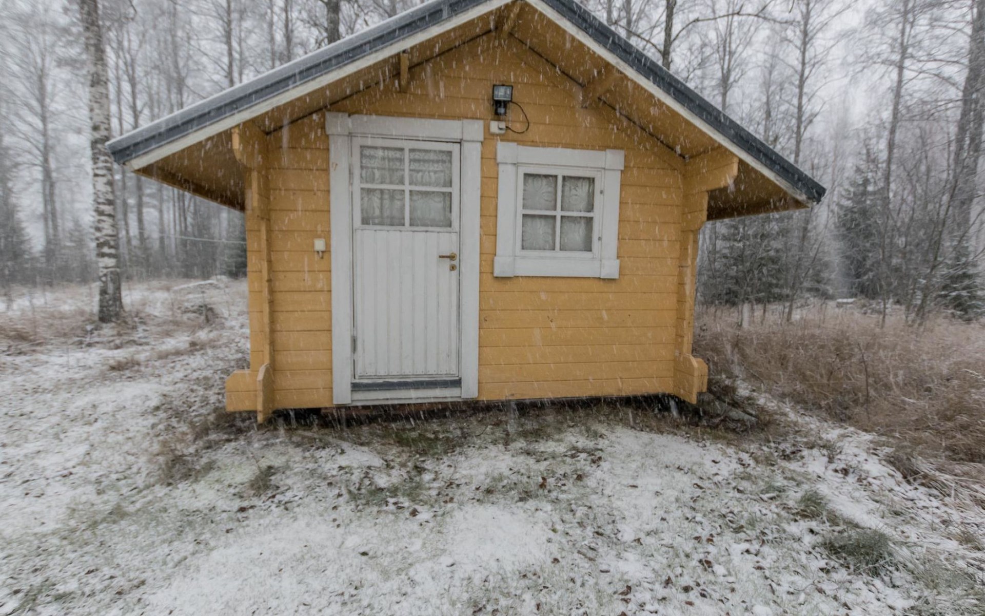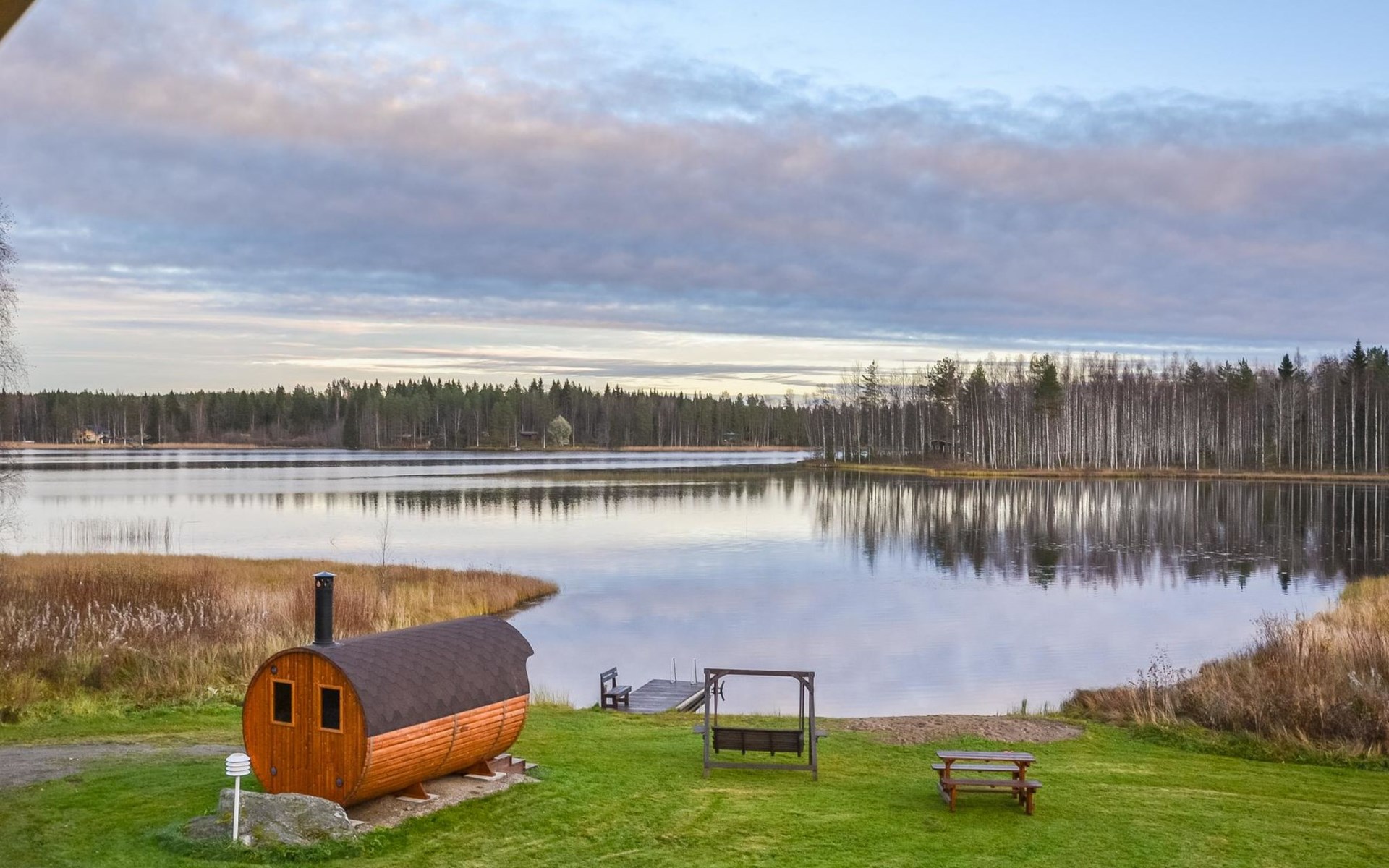 There is also an outbuilding, summerhouse and barrel sauna with wood burning sauna stove in the yard. Air source heat pump in the cabin.