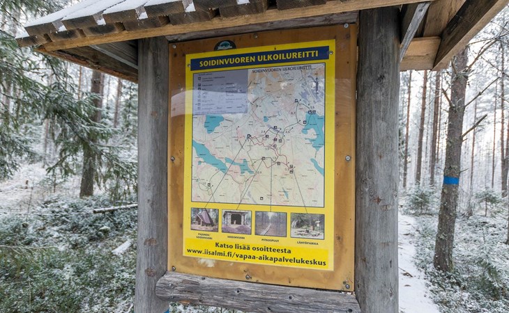 Nature trail of Soidinvuori, dist. 1.7 km. The starting point of the route is on the road Palosenlammintie. The hiking trail is about 7 km long and the terrain varies. Views are beautiful. There are several campfire sites and resting places along the route.