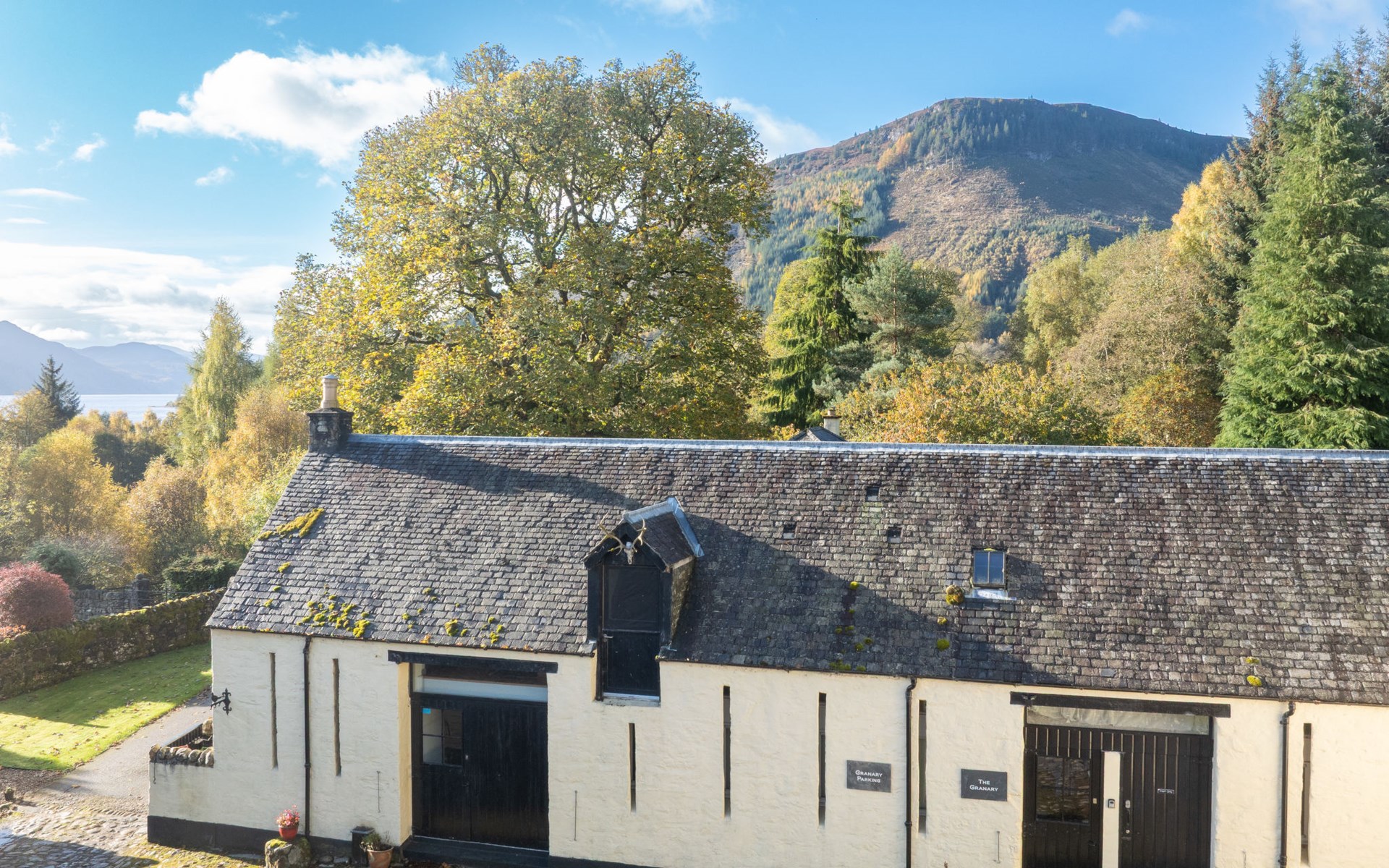 Invermoriston 20 km van Drumnadrochit: Mooi, historische cottage "Loch Ness Granary", vrijstaand, bouwjaar 1700, gerenoveerd in 2023. Aan de rand van de plaats, 1 km van het centrum van Invermoriston, geïsoleerde, zonnige ligging, 20 m van het meer. Voor medegebruik: weide, ligweide, mooie tuin ter ontspanning, binnenplaats. Roeiboot (ter plaatse overeen te komen). Boodschappenpakket mogelijk bij aankomst. Luchthaventransfer (extra). 's winters 4x4 aanbevolen. Parkeerplaats bij het huis. Winkel 1 km, levensmiddelenwinkel 1 km, supermarkt 40 km, restaurant 2 km, café 2 km, bushalte "Invermoriston" 1 km, treinstation "Inverness" 40 km. Golfterrein (18 holes) 18 km, manege 20 km. Attracties in de buurt: Urquhart Castle 20 km, Loch Ness Monster exhibition 20 km, Glen Affric 40 km, Invermoriston Waterfalls 1 km. Bekende meren kunnen gemakkelijk worden bereikt: Loch Ness 20 m. Auto noodzakelijk. In dit complex zijn verder 2 huizen te huur.