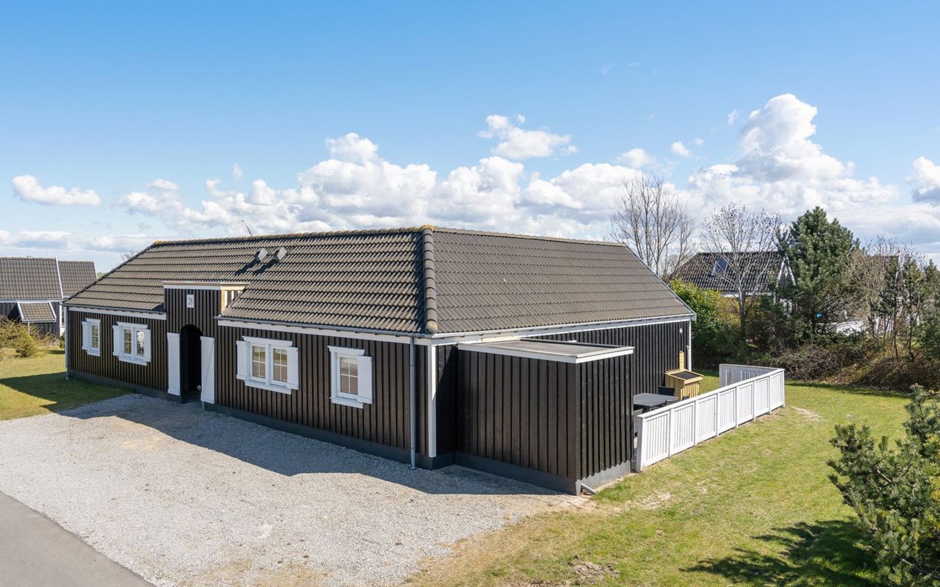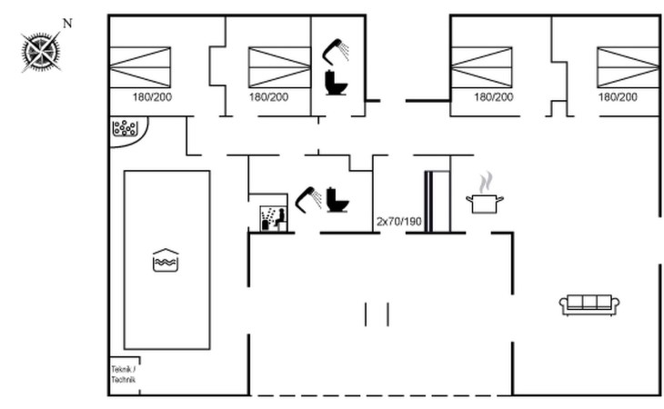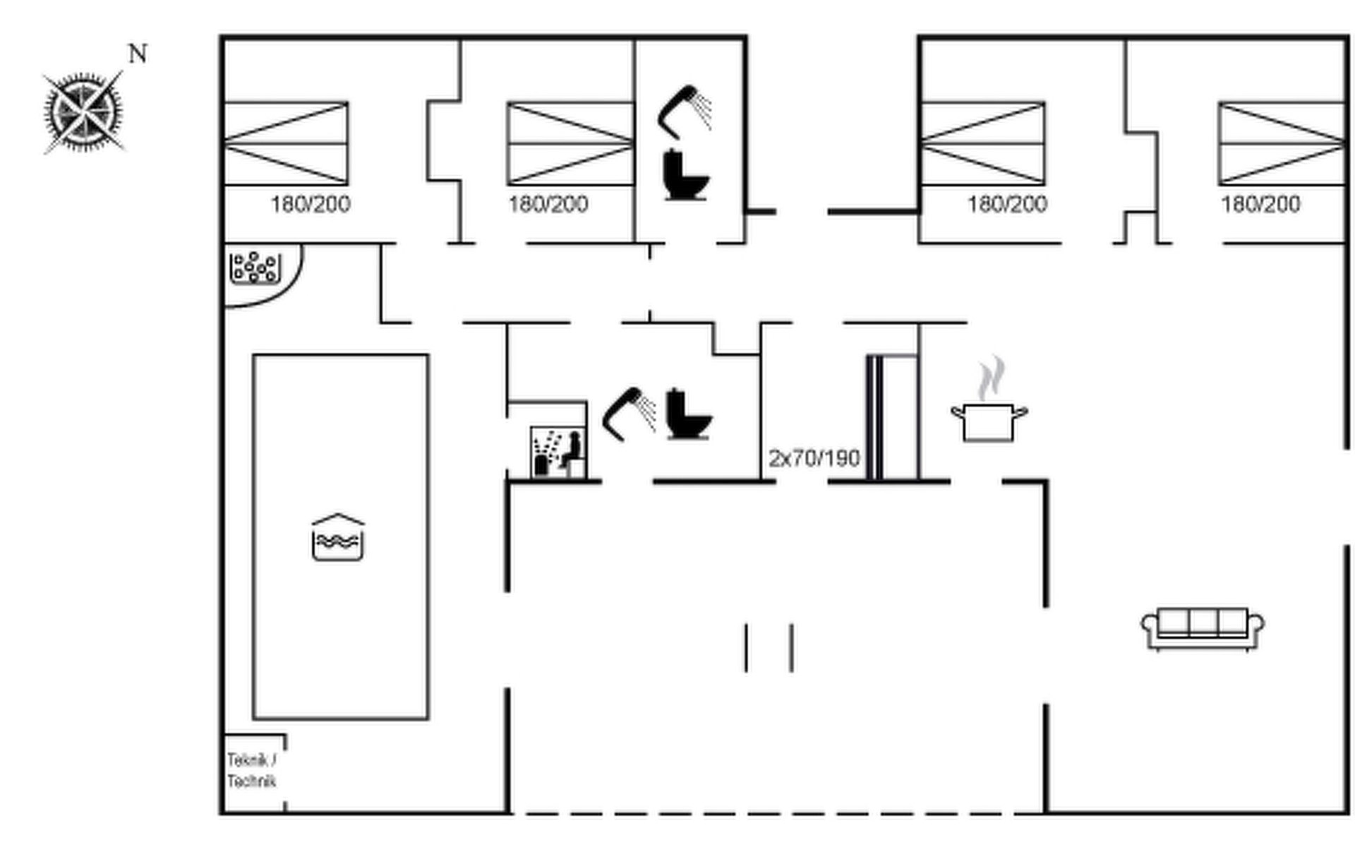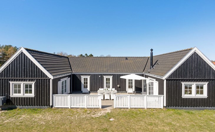 Eengezinswoning, bouwjaar 2005. 920 m van zee. Voor alleengebruik: terrein 1.140 m2, verzorgde tuin, overdekt zwembad (3 x 5 m, 1.9.3 m2, 140 - 140 cm diepte). Terras (50 m2), barbecue. In het huis: sauna, wasmachine, droger. Parkeerplaats bij het huis. Levensmiddelenwinkel 1.5 km. Golfterrein 10.3 km. De eigenaar accepteert geen jeugdgroepen.