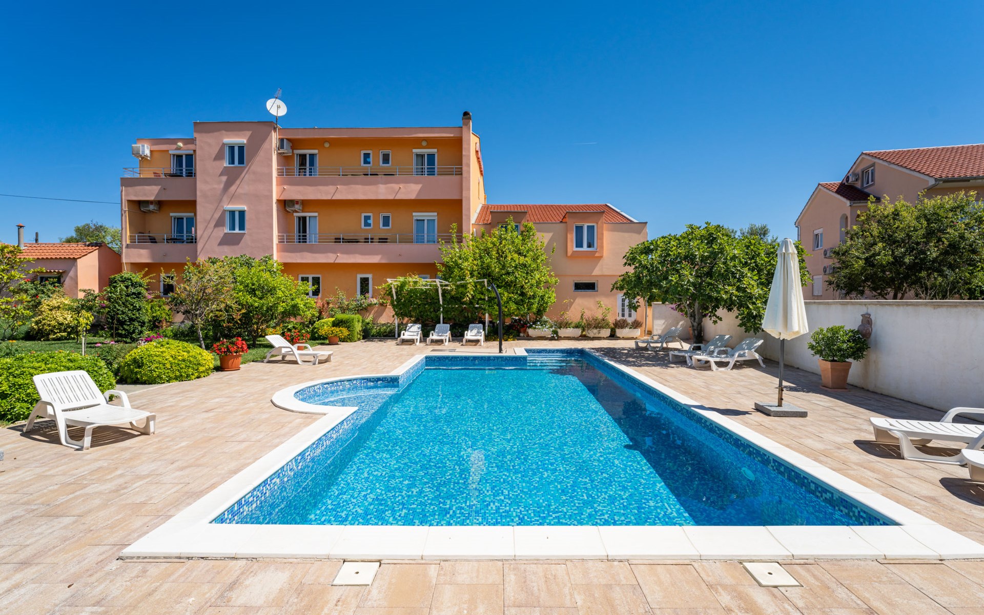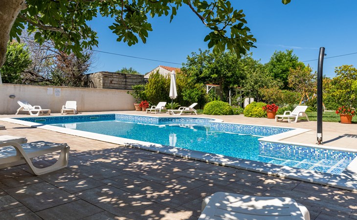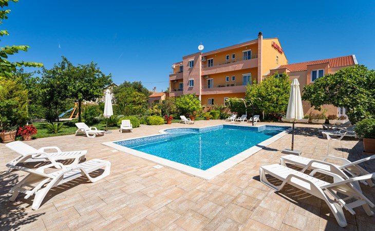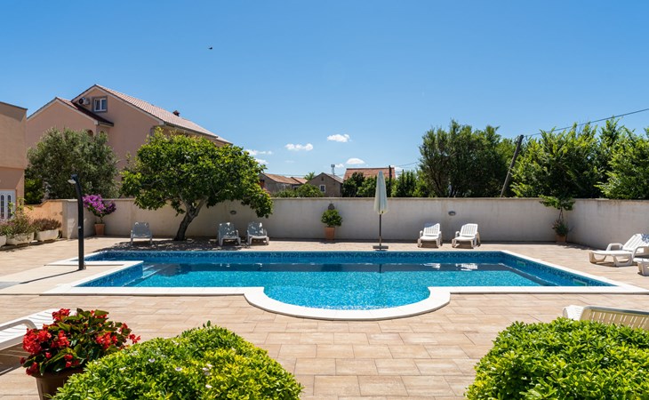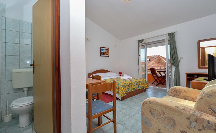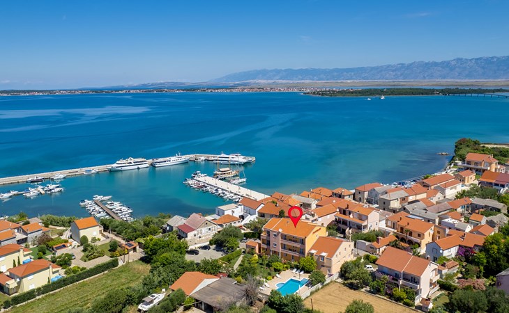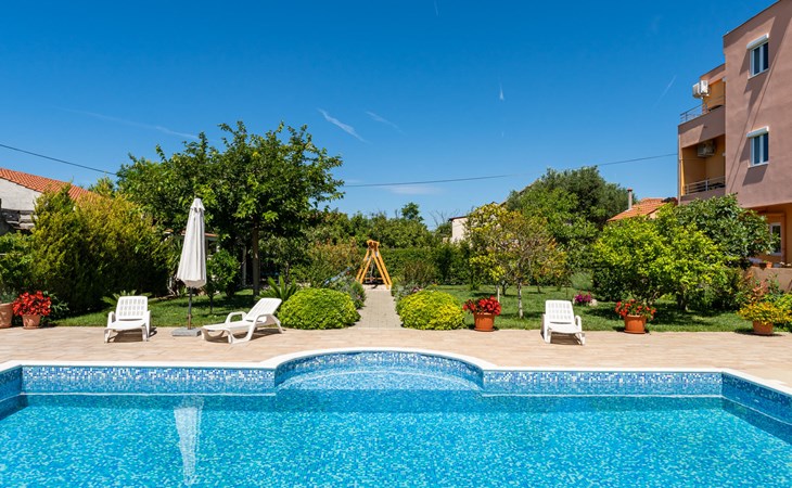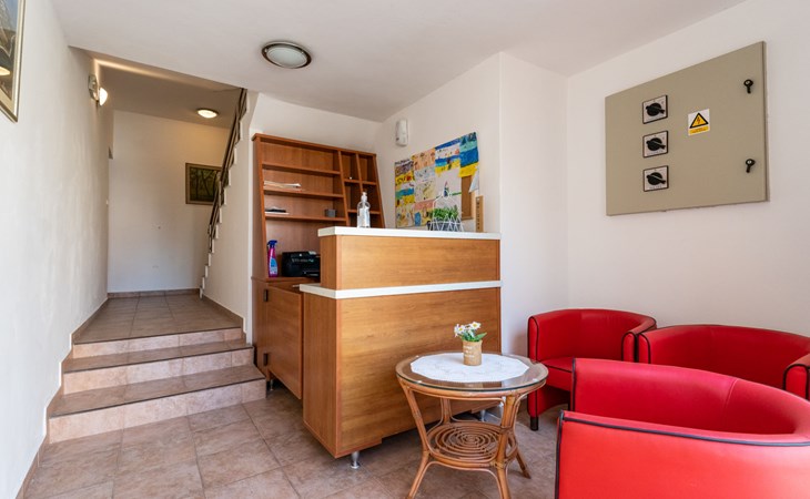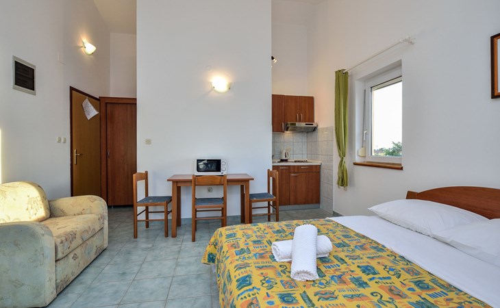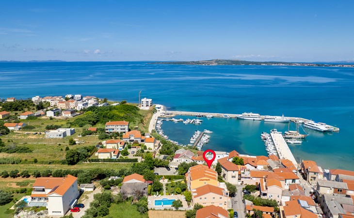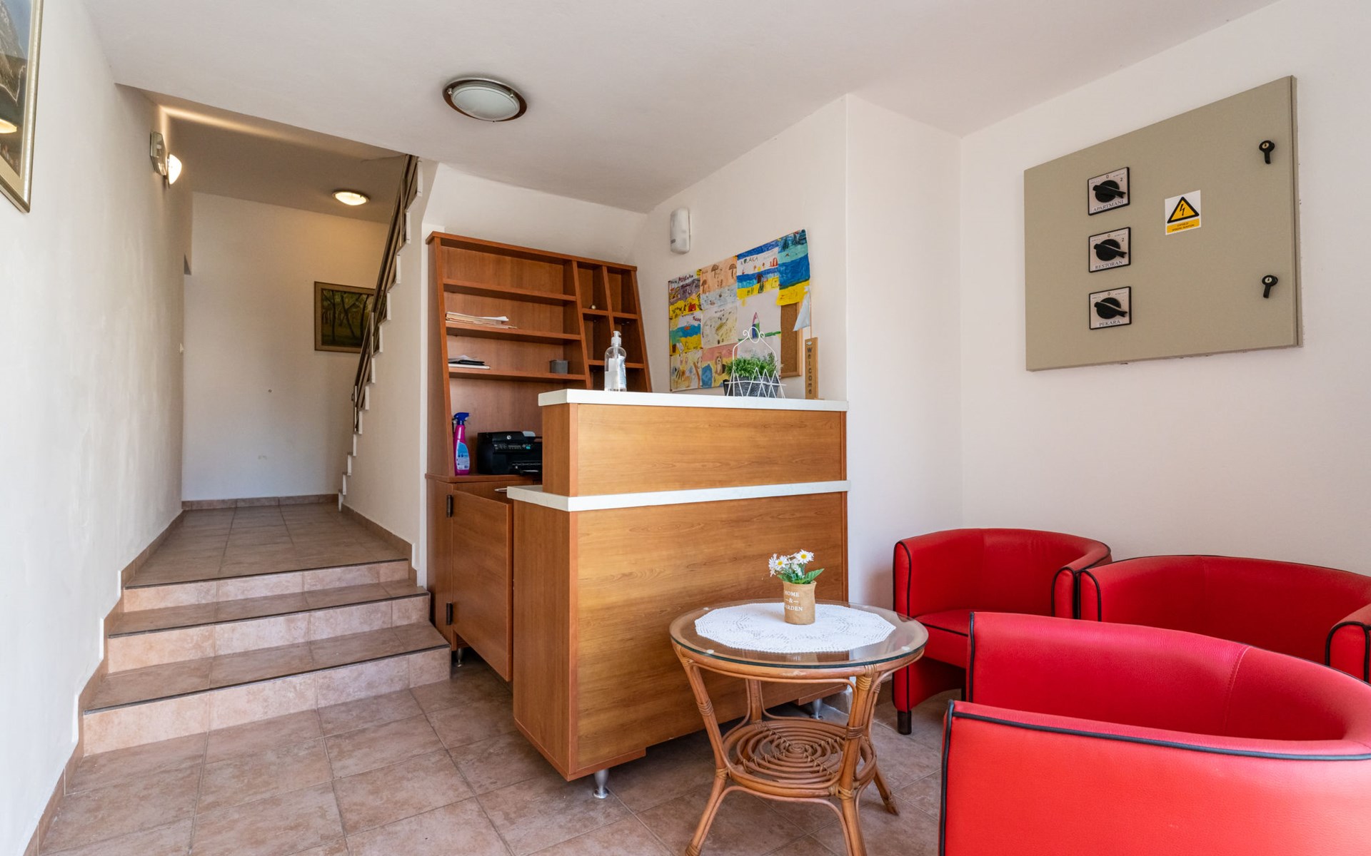 Flatgebouw "Bonex". In de plaats, zonnige ligging, 85 m van zee, 85 m van het strand. Voor medegebruik: terrein 1.000 m2 (omheind) met gazon en planten, openluchtzwembad (10 x 5 m, 150 cm diepte, seizoensgebonden beschikbaarheid: 01.Apr. - 28.Okt.) met trap. Buitendouche, prieel, tuinmeubelen, barbecue (glijbaan, schommel). In het huis: receptie, internetaansluiting, trampoline. Parkeerplaats bij het huis op het terrein. Winkel 50 m, restaurant 600 m, bushalte 4.2 km, zandstrand, kiezelstrand 85 m. Tennis 10 km. Vergelijkbare accommodaties kunnen worden geboekt.